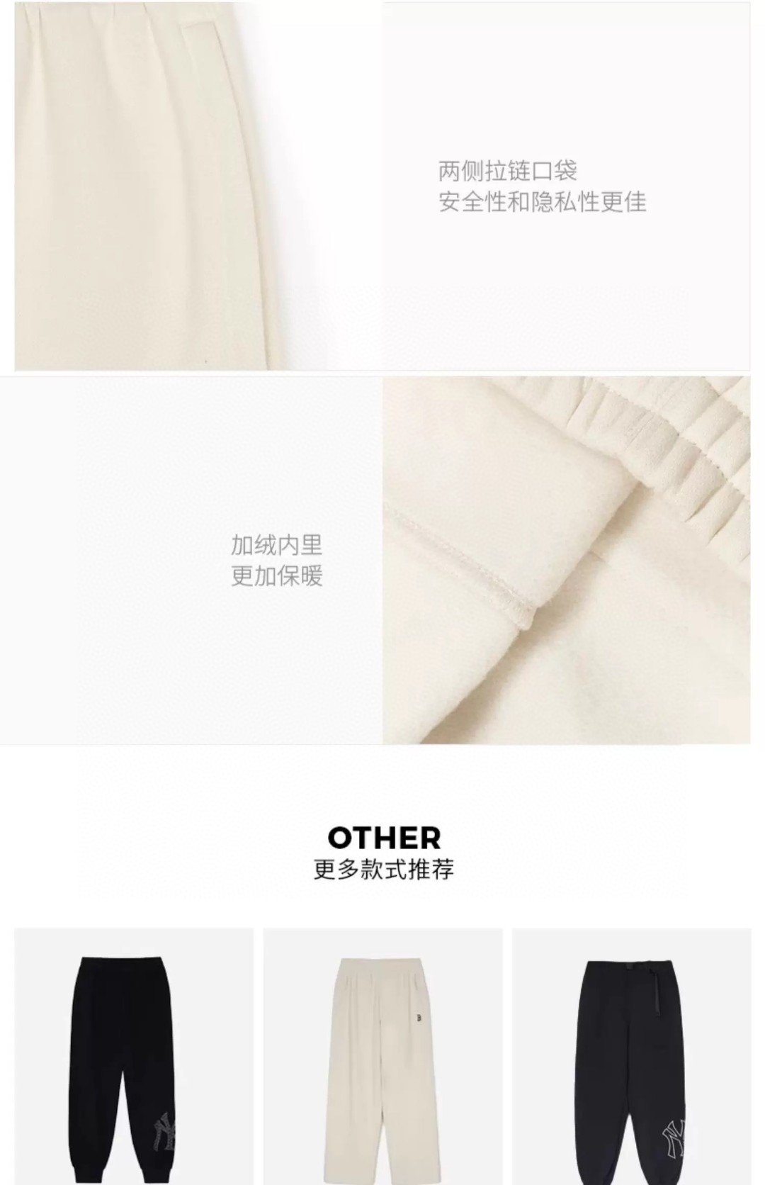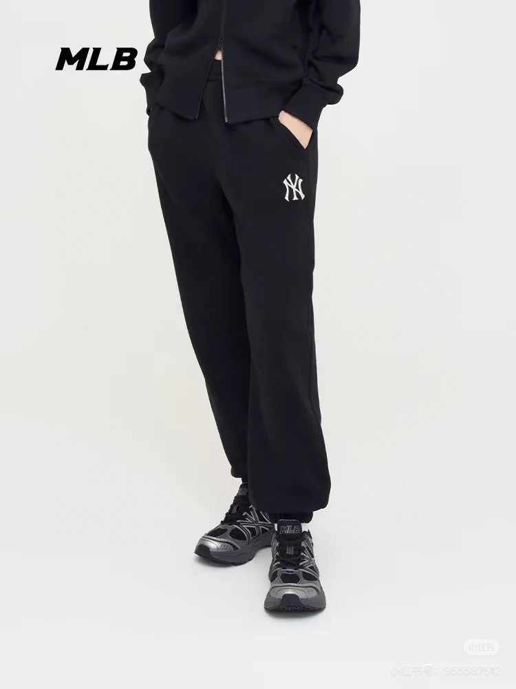 MLB 2024秋冬新款男女情侣纯色 简约 舒适 休闲加绒束脚裤