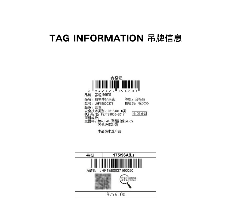 gxg.jeans男装 春季热卖翻领牛仔夹克JHF1E800371