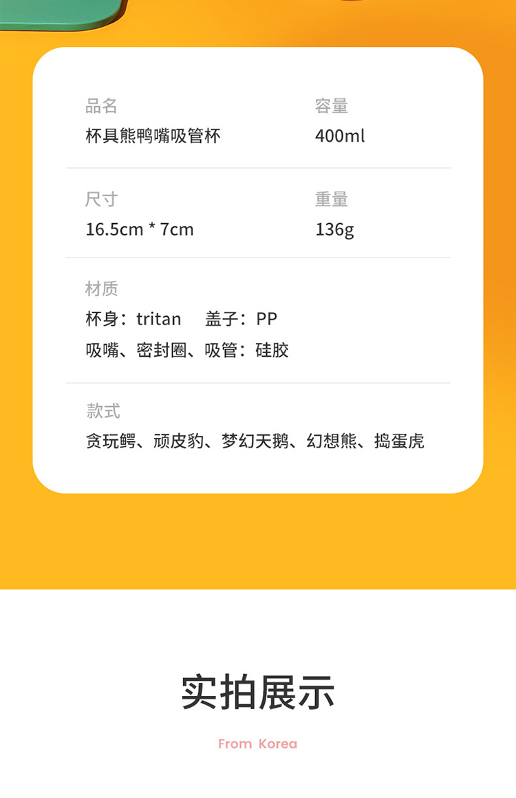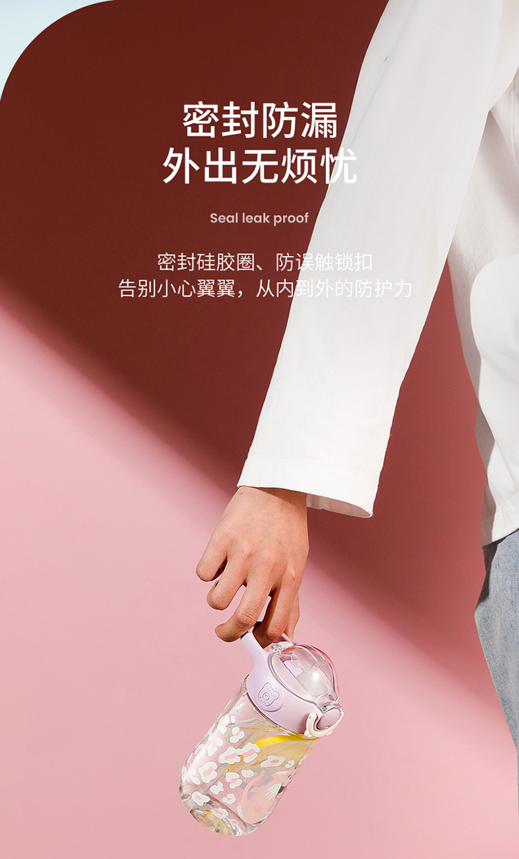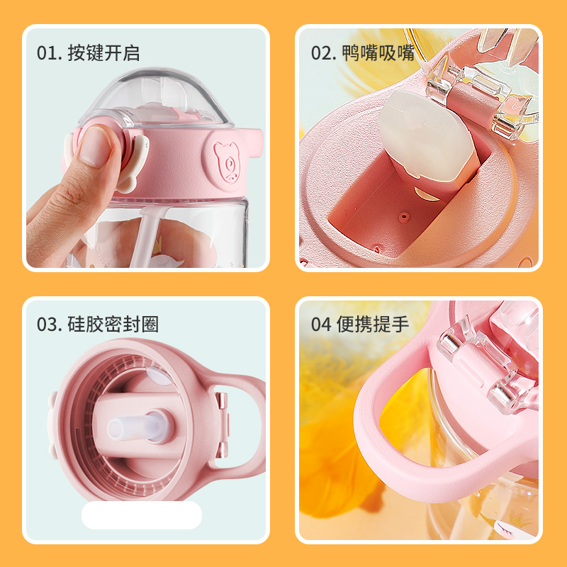 【鸭嘴吸管杯】杯具熊吸管杯鸭嘴杯 学生带锁扣防漏欧阳娜娜同款夏季水杯