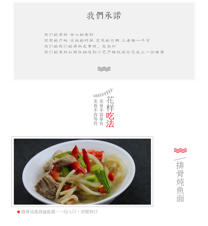 | 规格 | 精品鱼面简装:500g/袋*2 四季鲜鱼面:125g*10袋 精品鱼面礼盒装:1000g/提 |