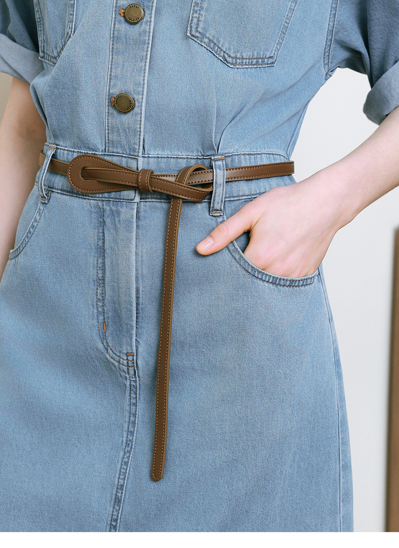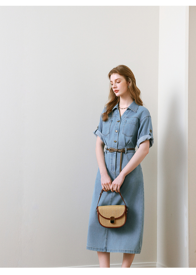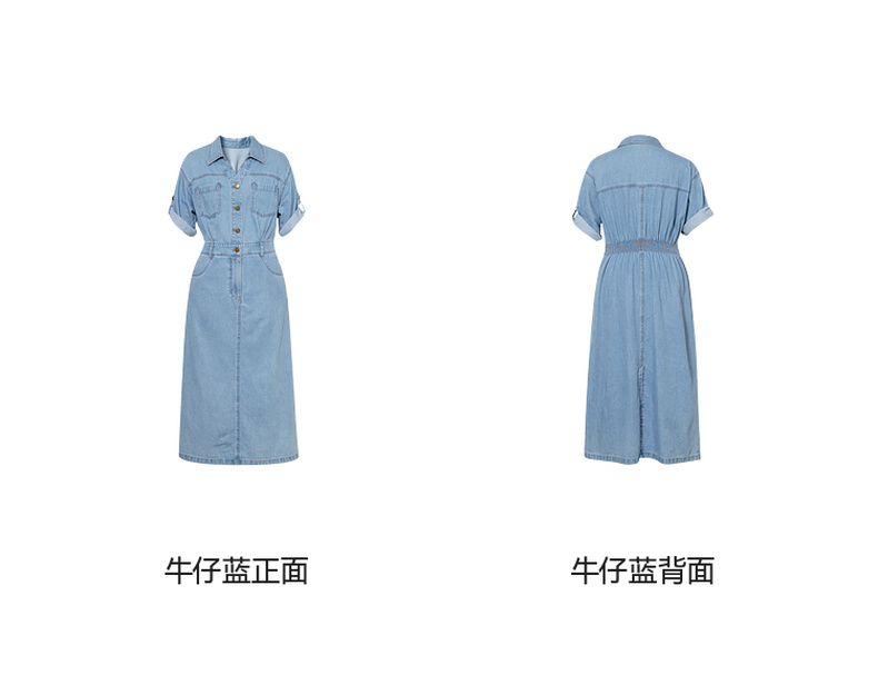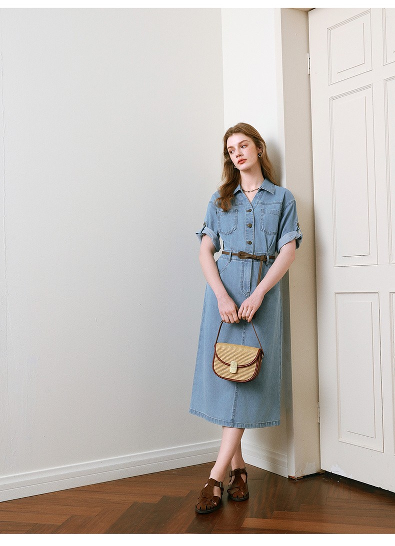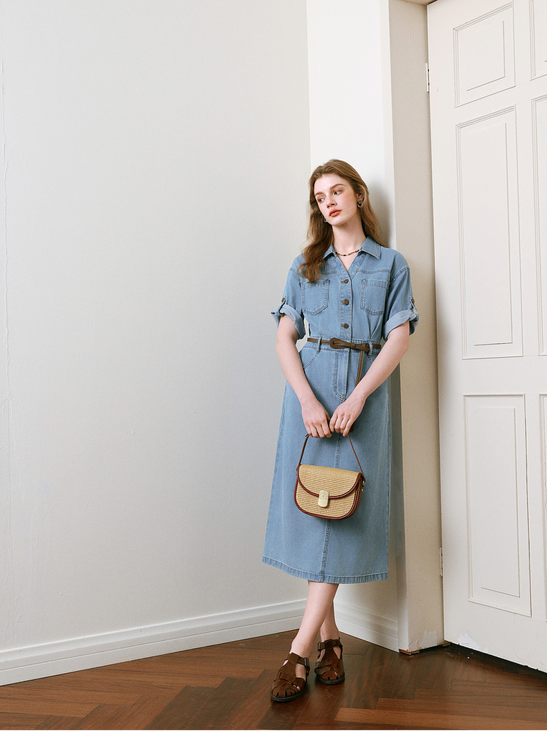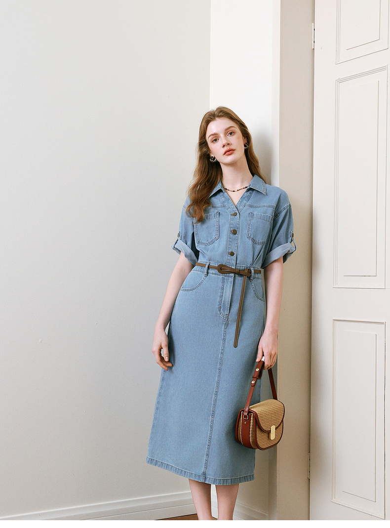 【商场同款】诗凡黎诗凡黎翻边袖口牛仔连衣裙25夏新款中长裙3G4390331