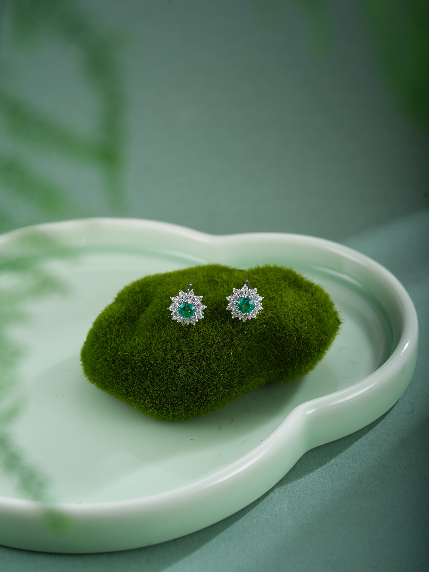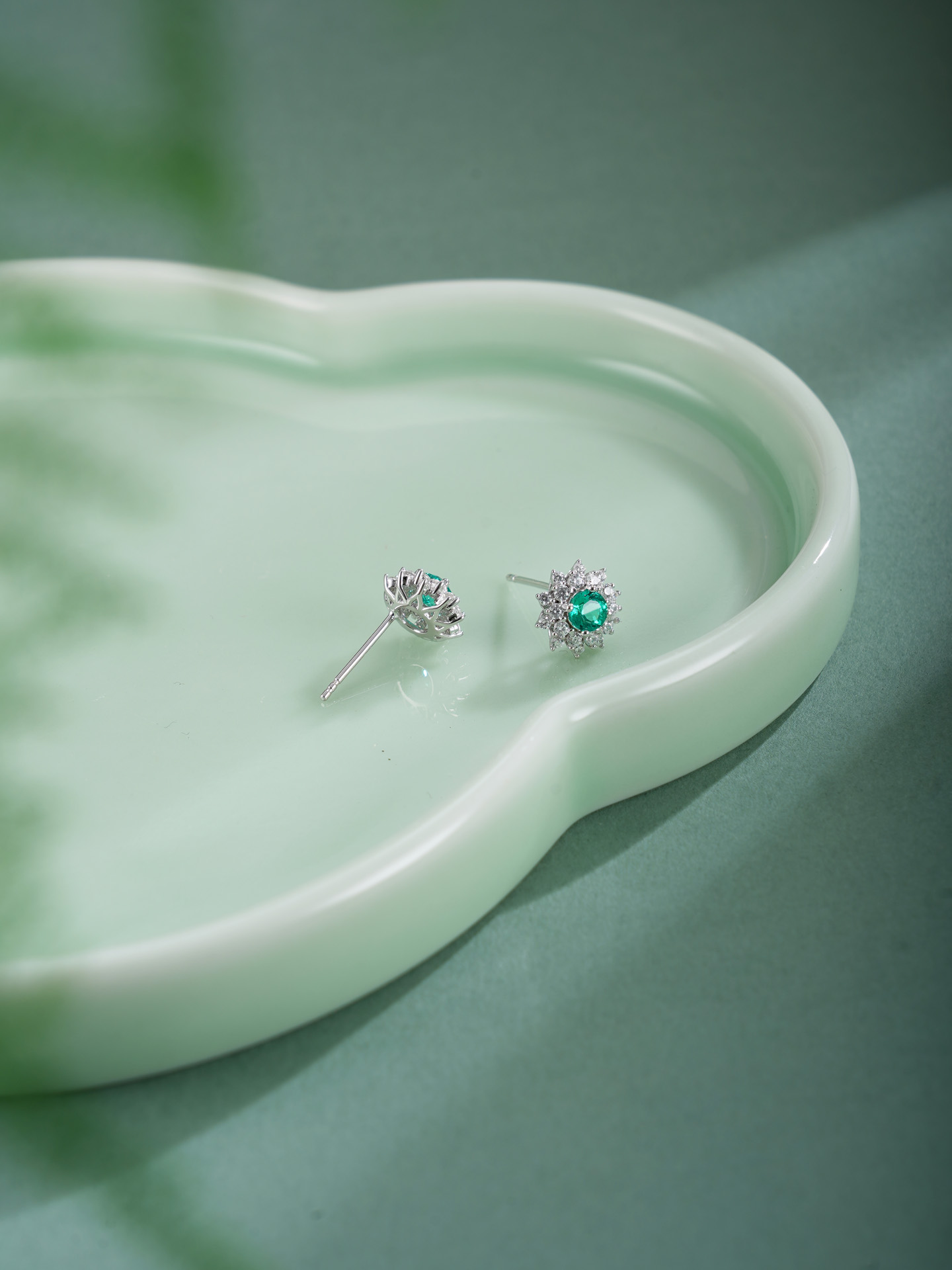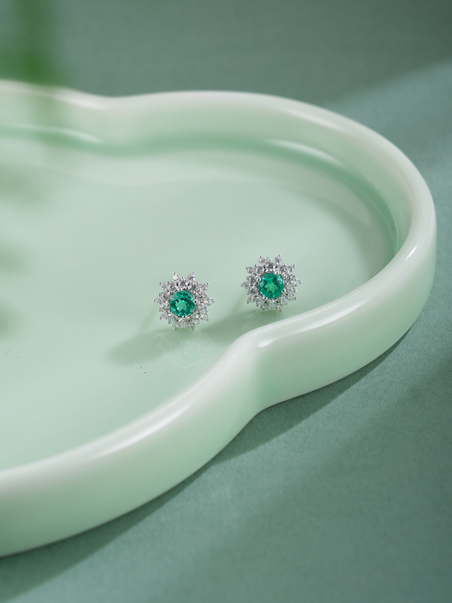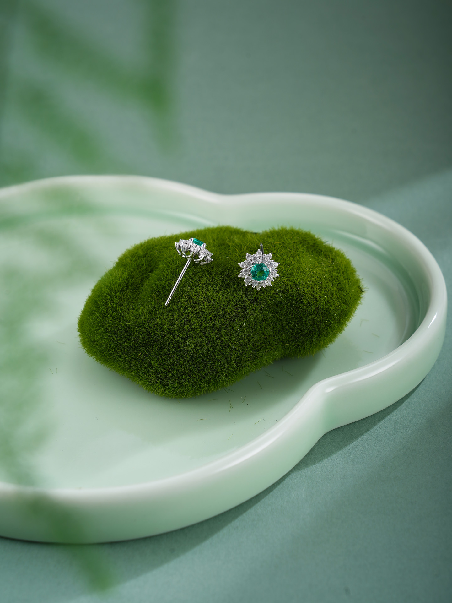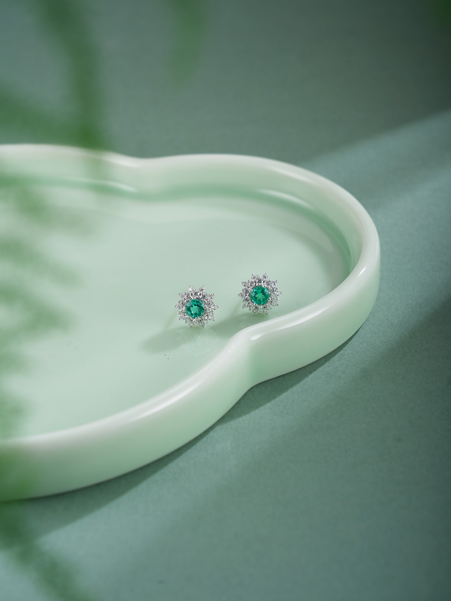 【寓意】:以纯银勾勒花瓣之形,托衬祖母绿宝石,如春日繁花初绽,清透绿意间流转自然生机。寓意以花传情,情谊长存。