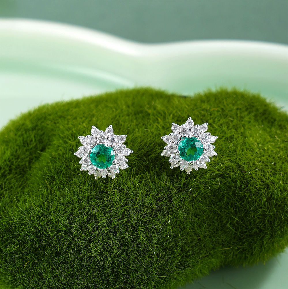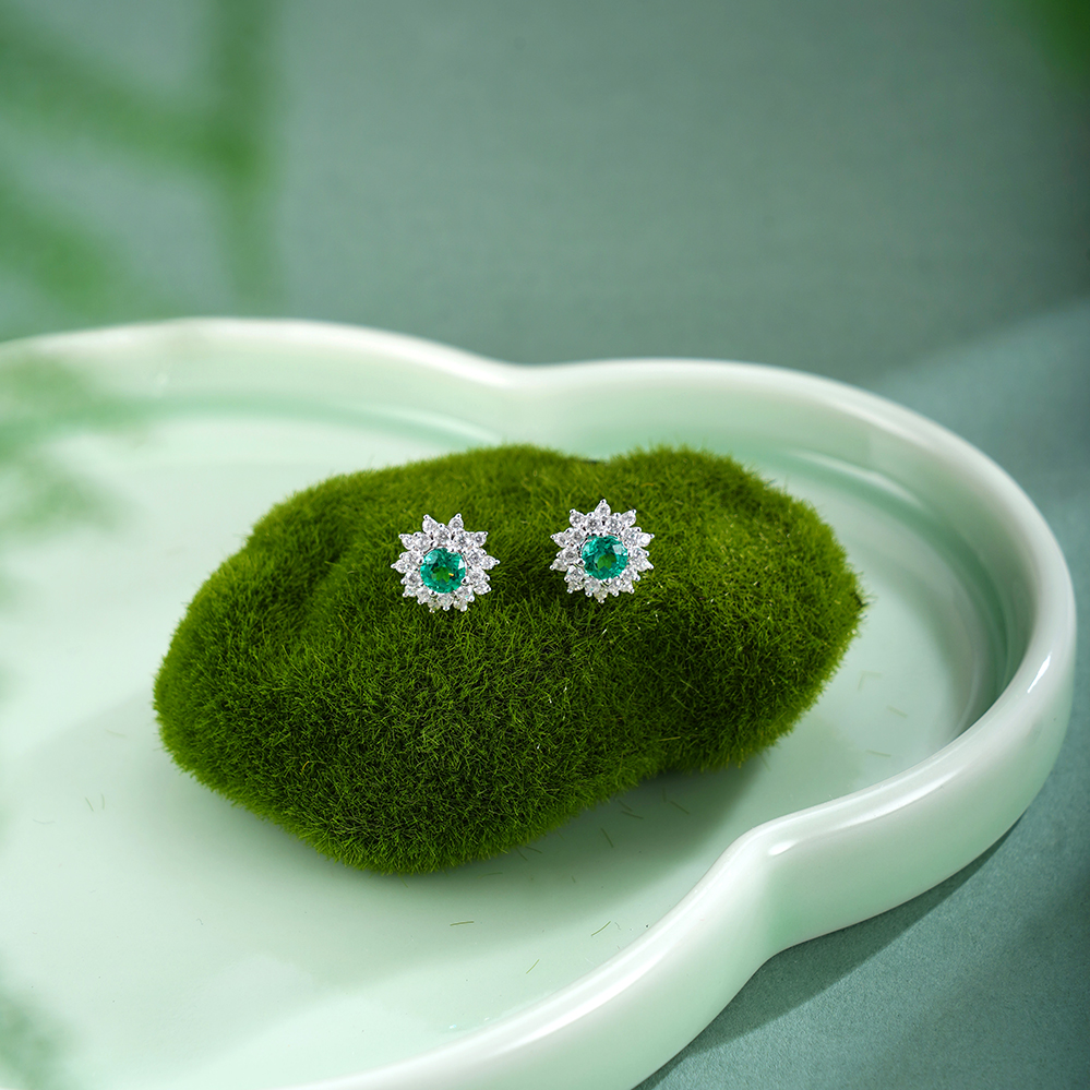 子佩集【花开传情】银S925耳钉【EM3123-XF】时尚培育宝石祖母绿太阳花2602
