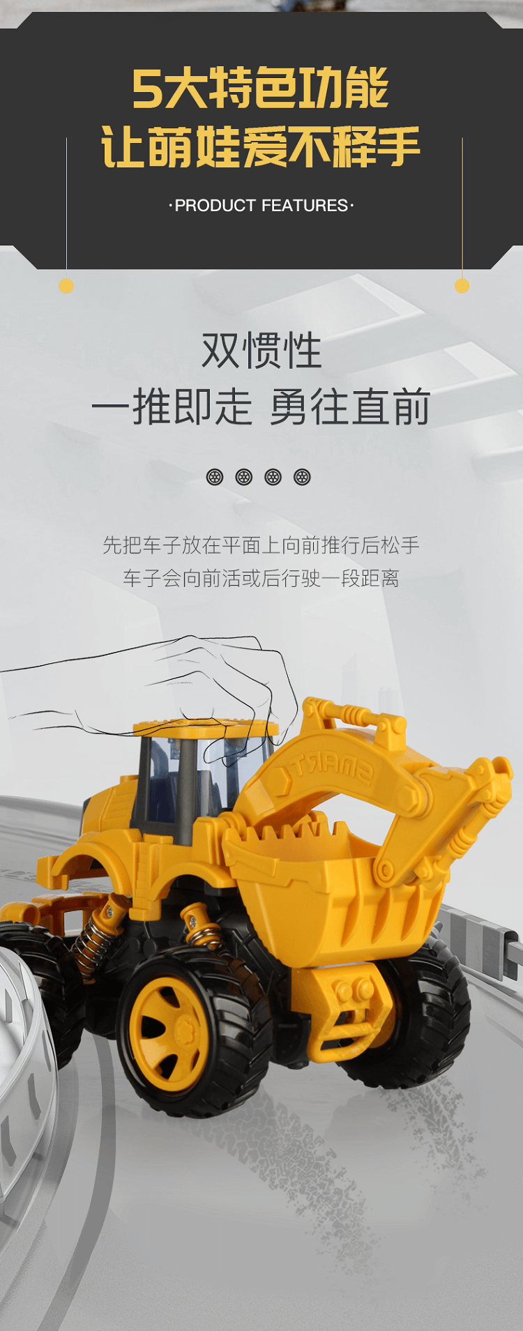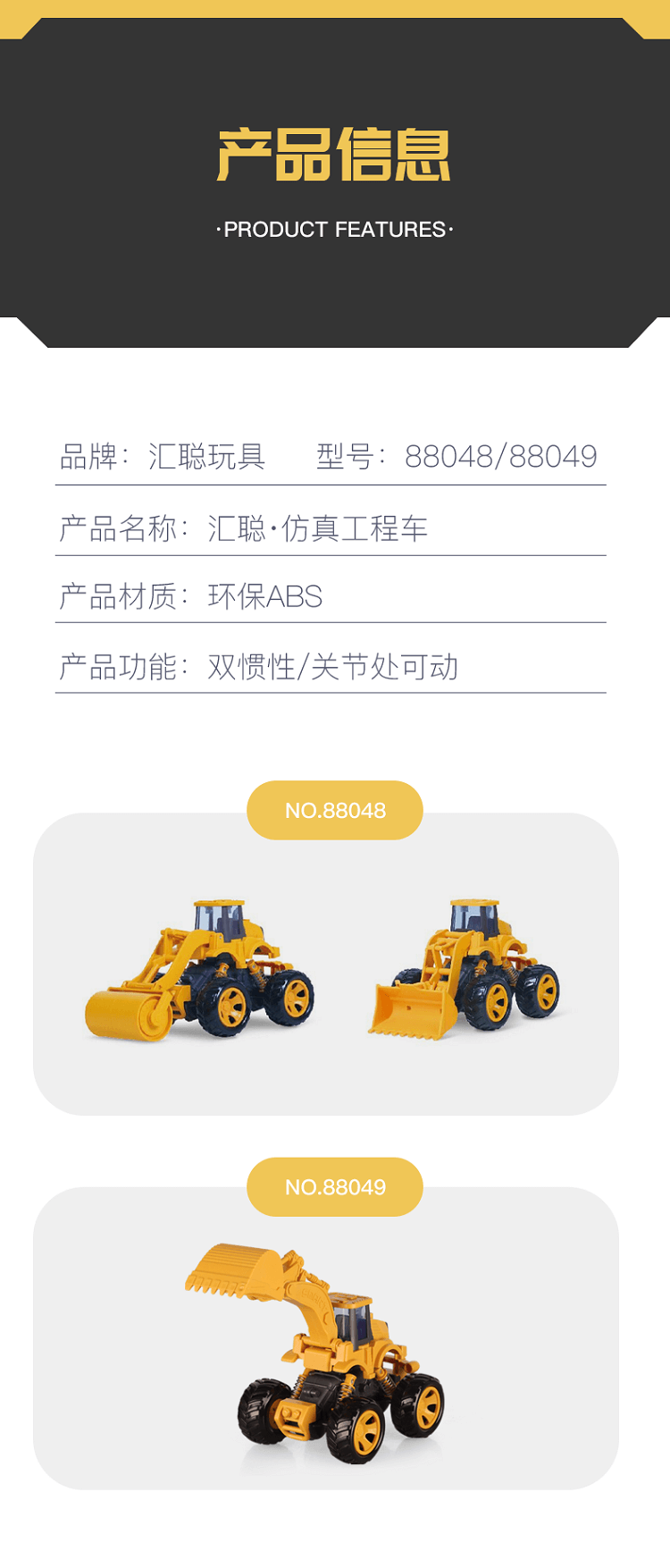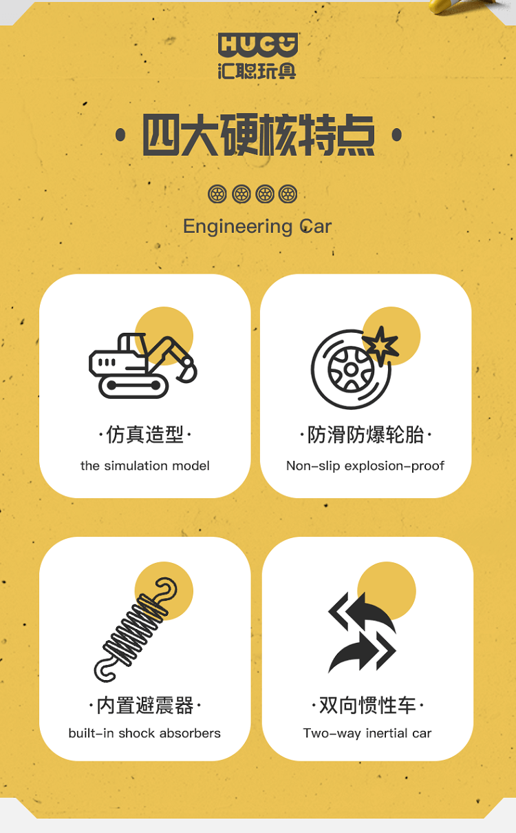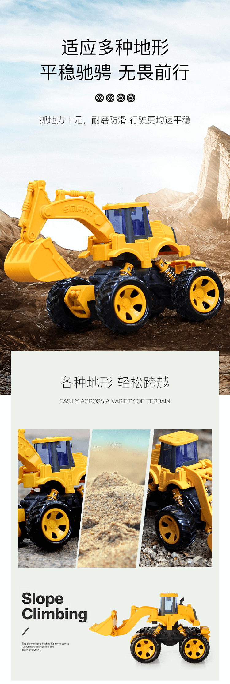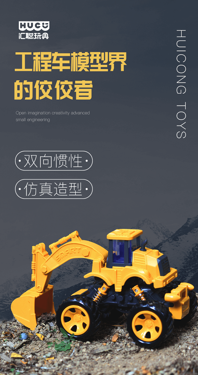 汇聪仿真工程车-大轮挖掘机88049(款式随机)