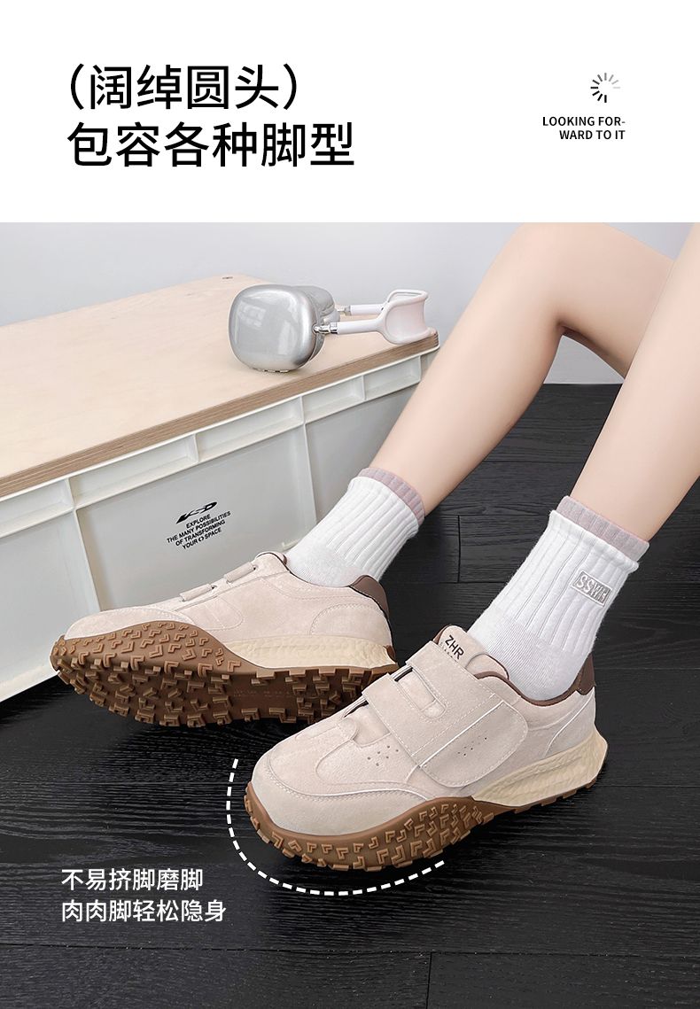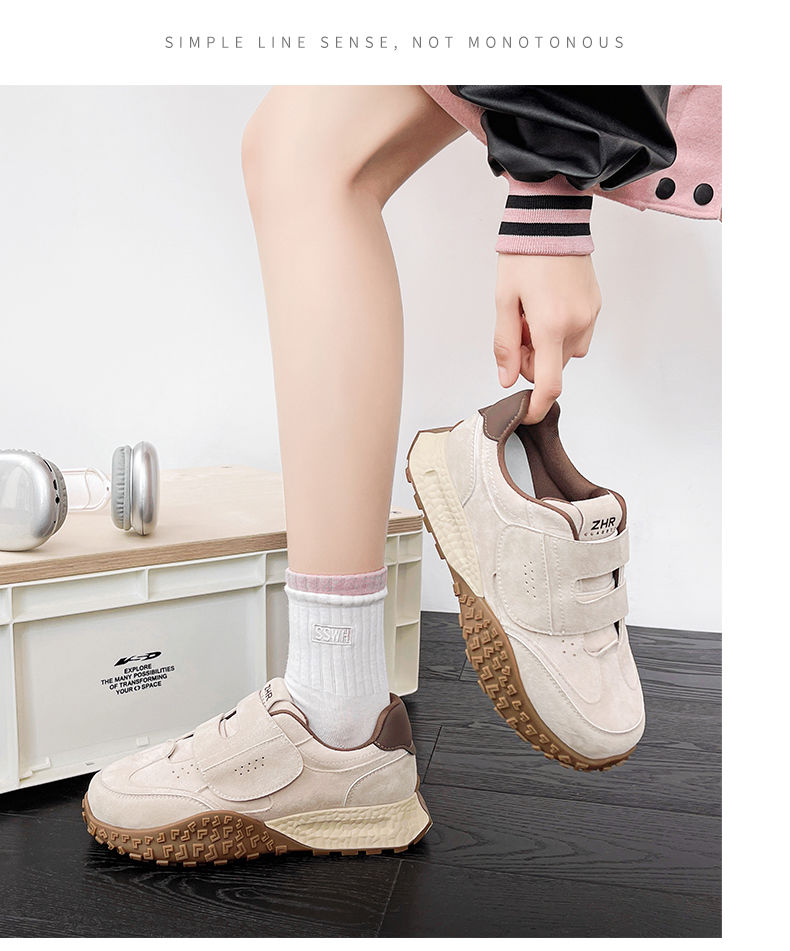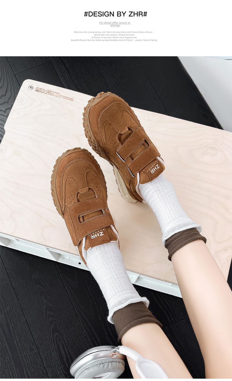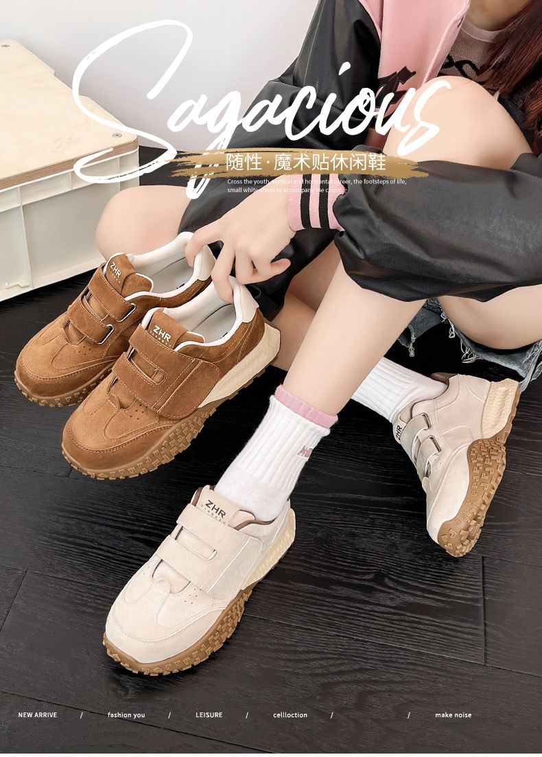 ZHR则则增高魔术贴休闲鞋厚底耐磨女鞋春季新款ins百搭运动休闲鞋