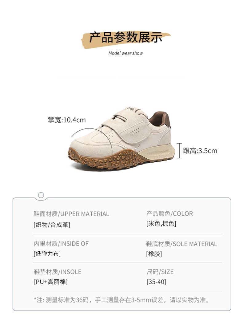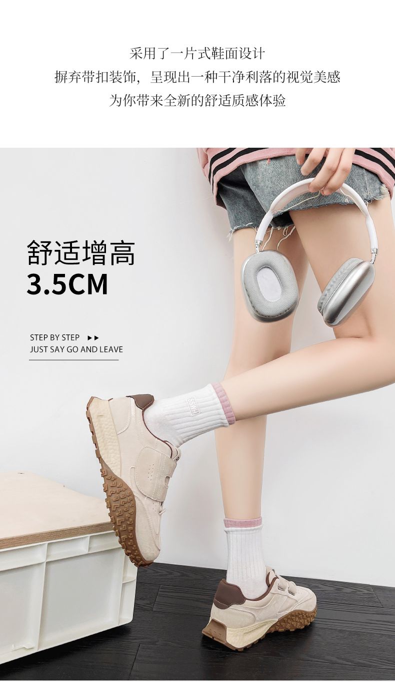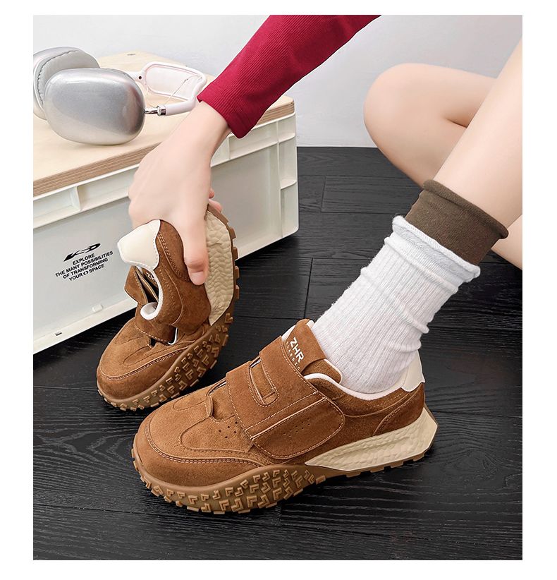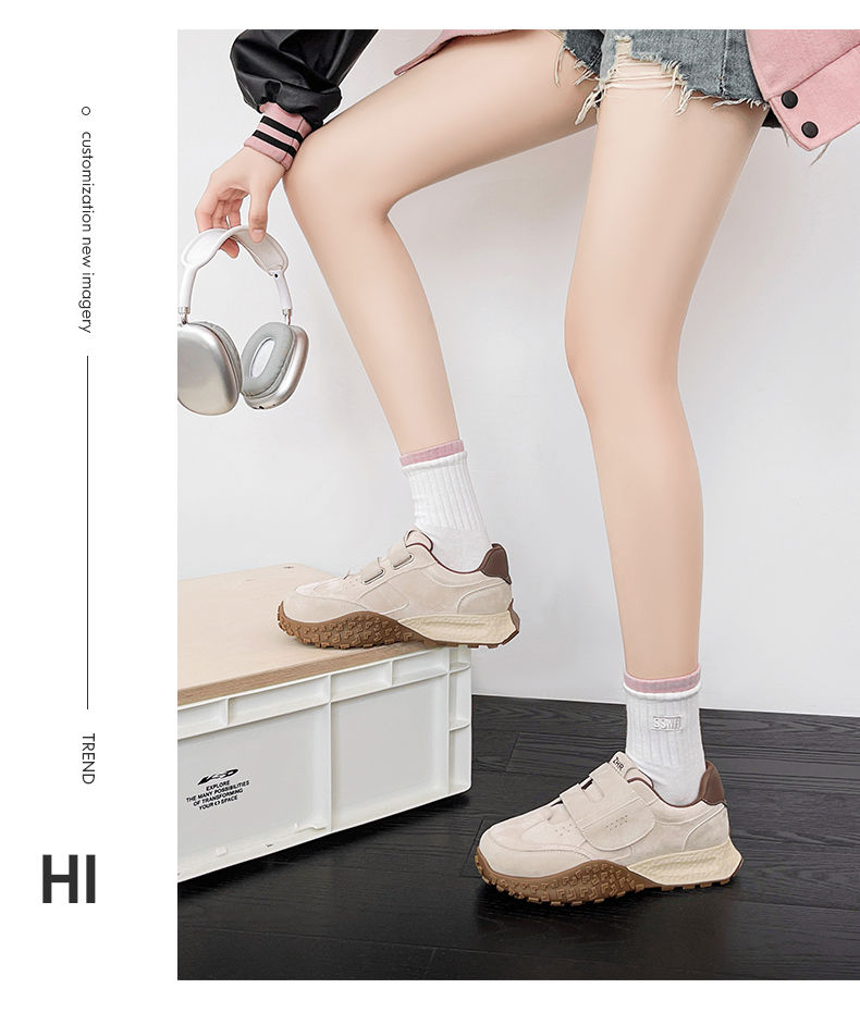 ZHR则则增高魔术贴休闲鞋厚底耐磨女鞋春季新款ins百搭运动休闲鞋