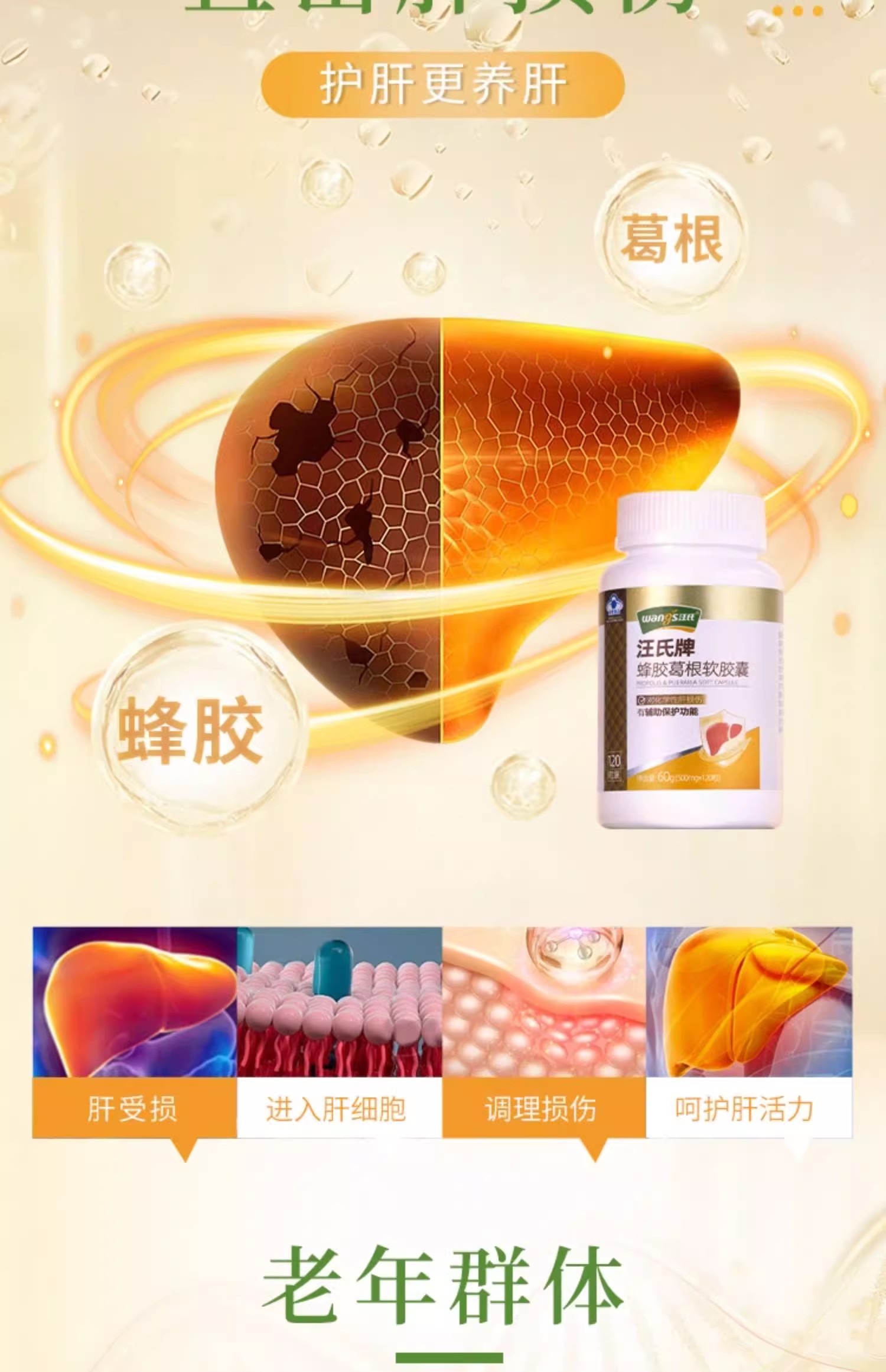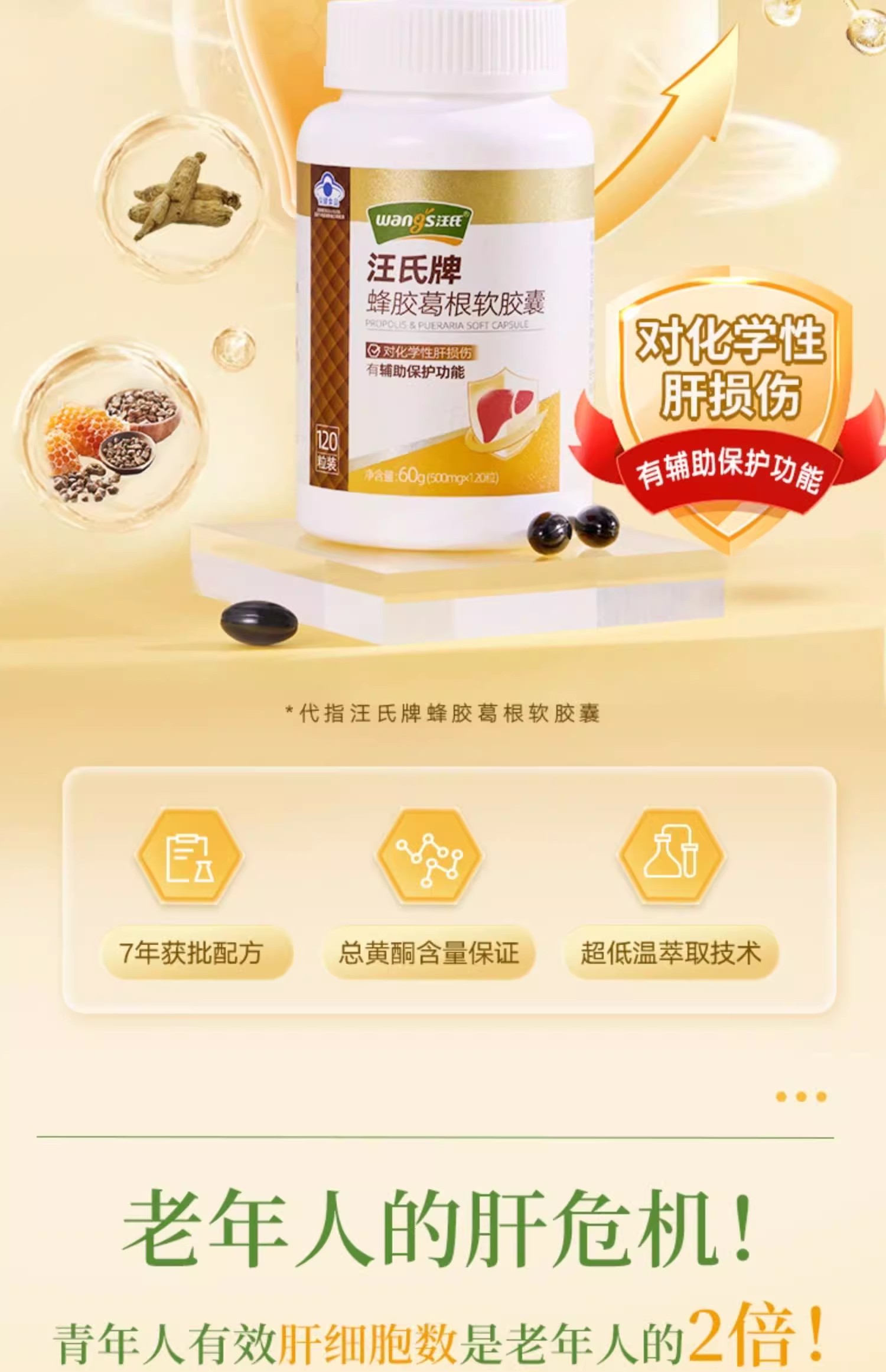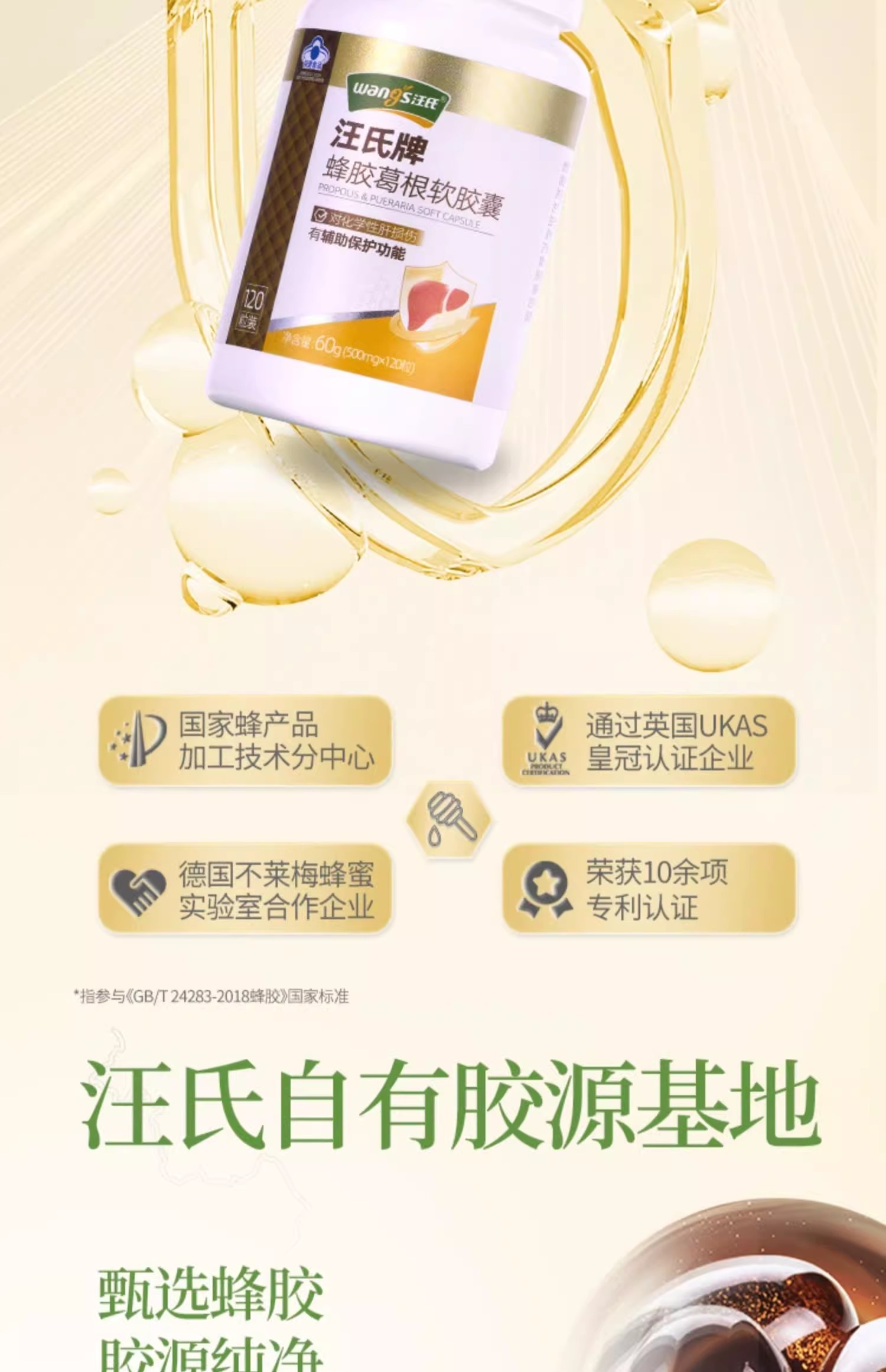 汪氏蜂胶葛根胶囊护肝片女性男士养肝熬夜保健