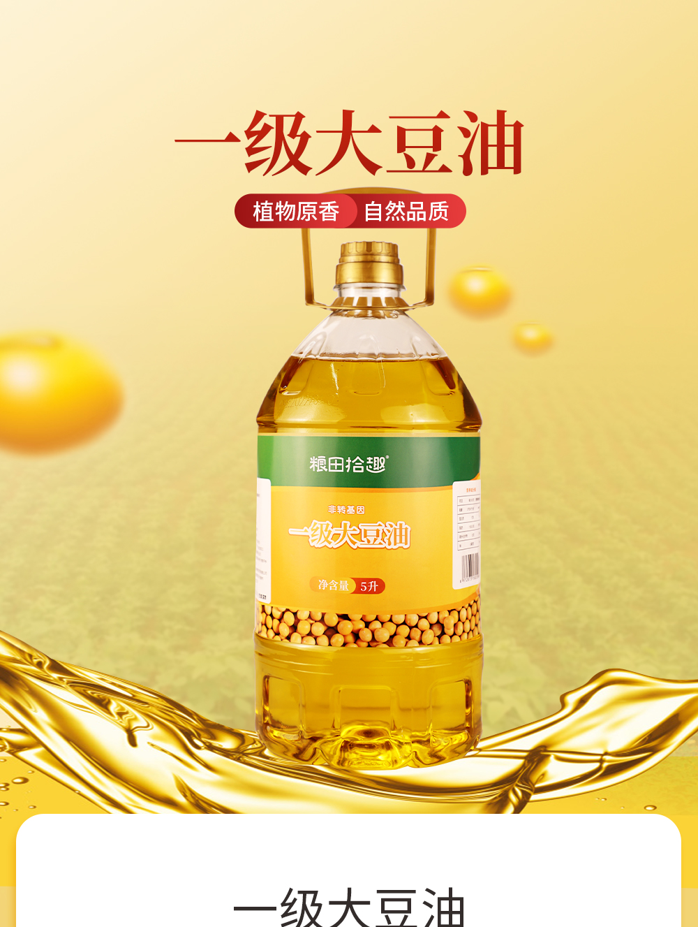 (乡村振兴商品)粮田拾趣一级大豆油(非转) 5L 商品缩略图0 (乡村振兴商品)粮田拾趣一级大豆油(非转) 5L 商品缩略图1