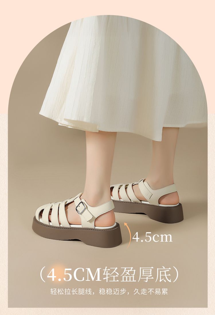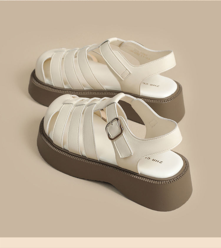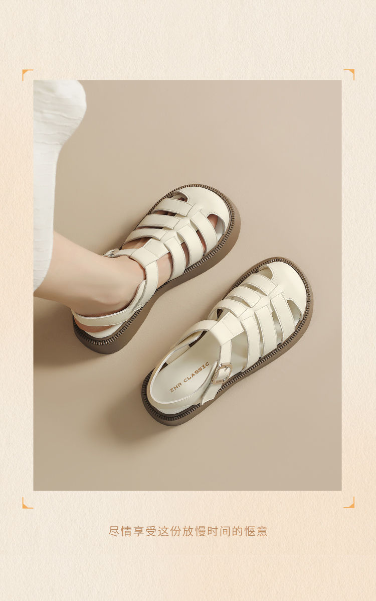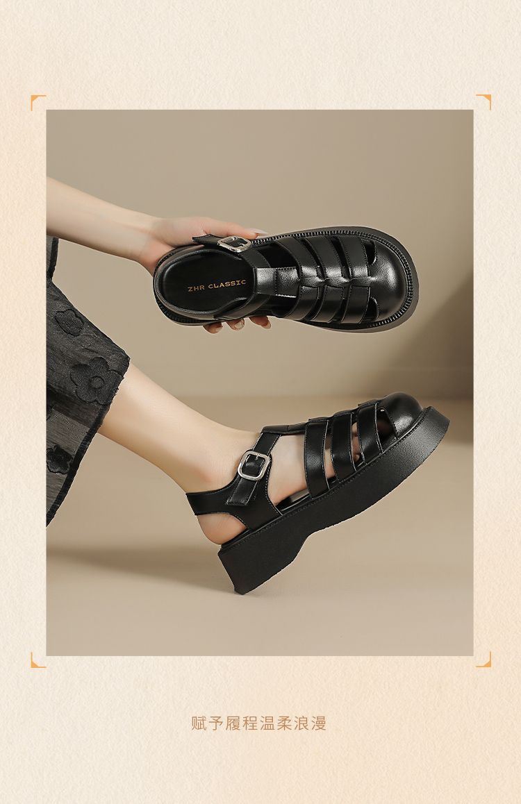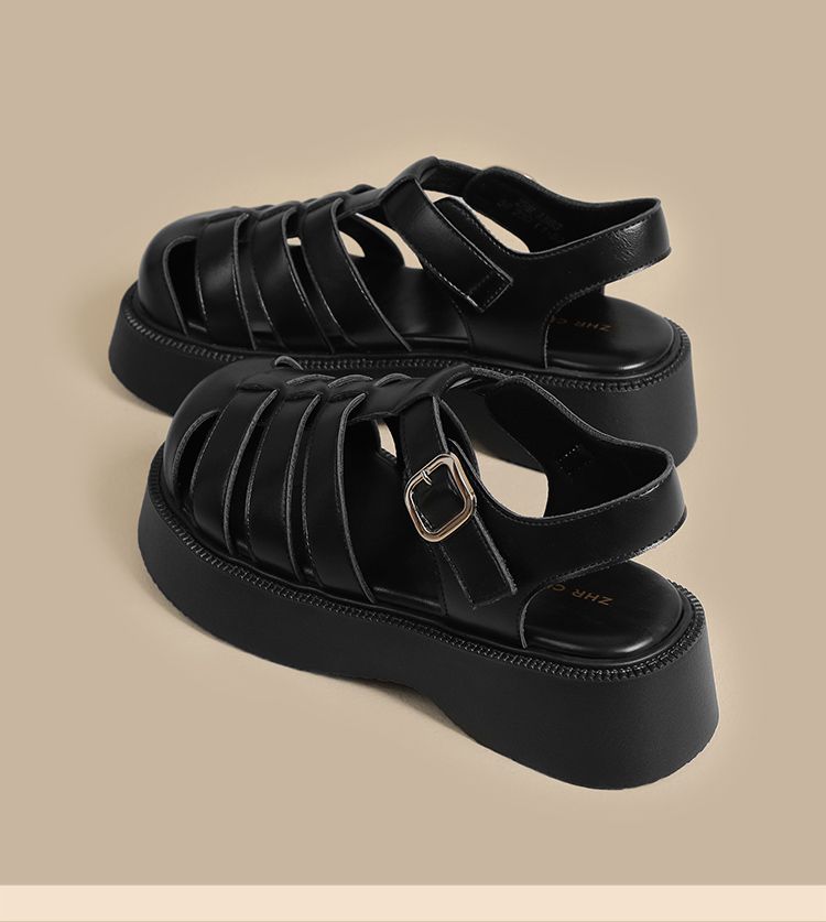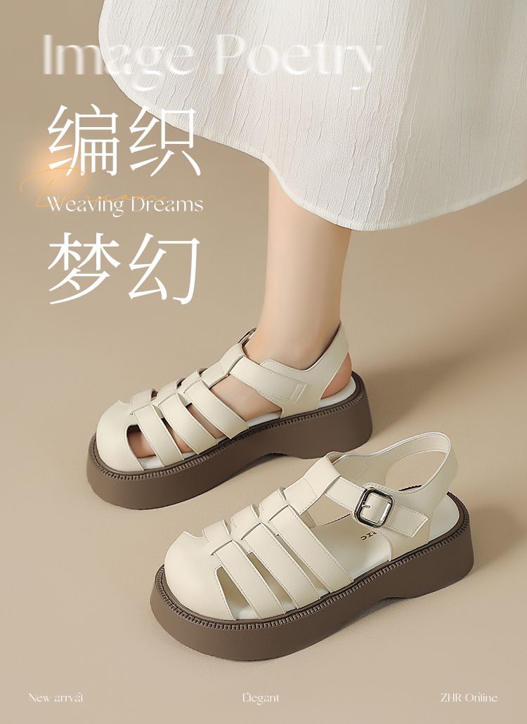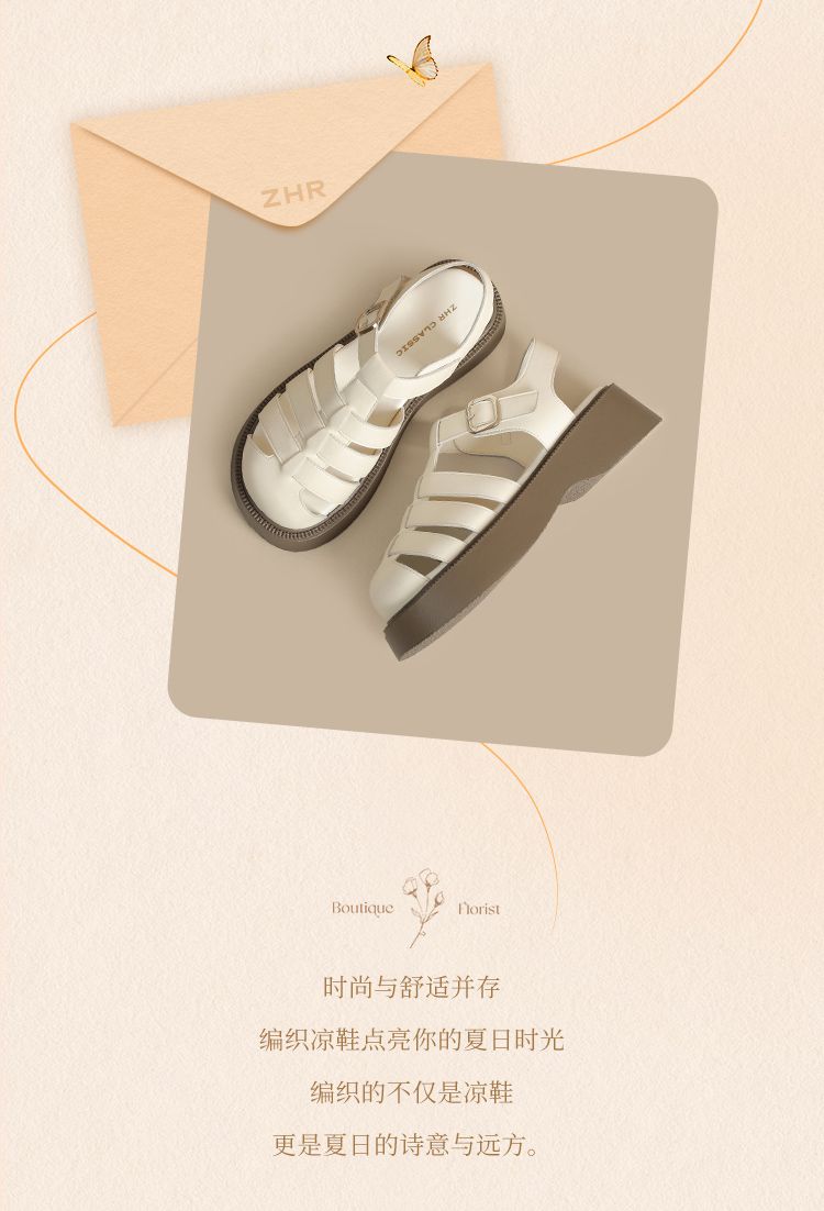 ZHR则则厚底罗马凉鞋2025新款编织猪笼鞋圆头魔术贴女鞋法式凉鞋
