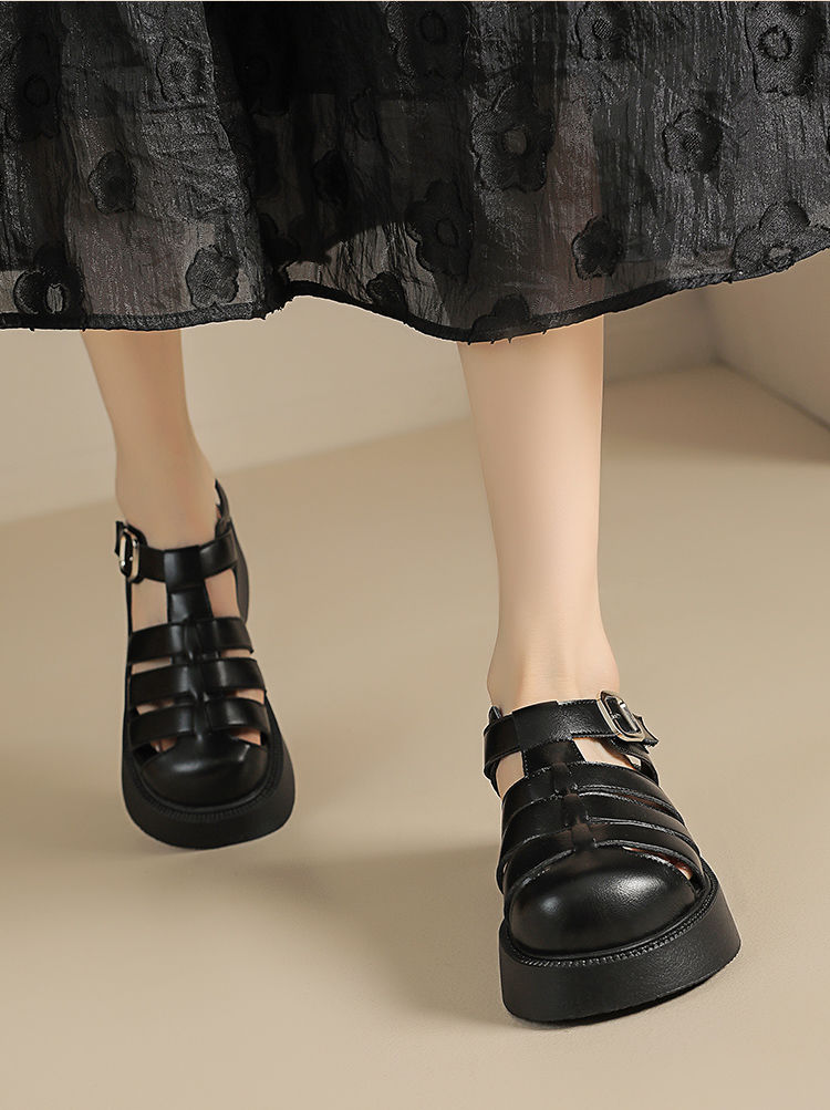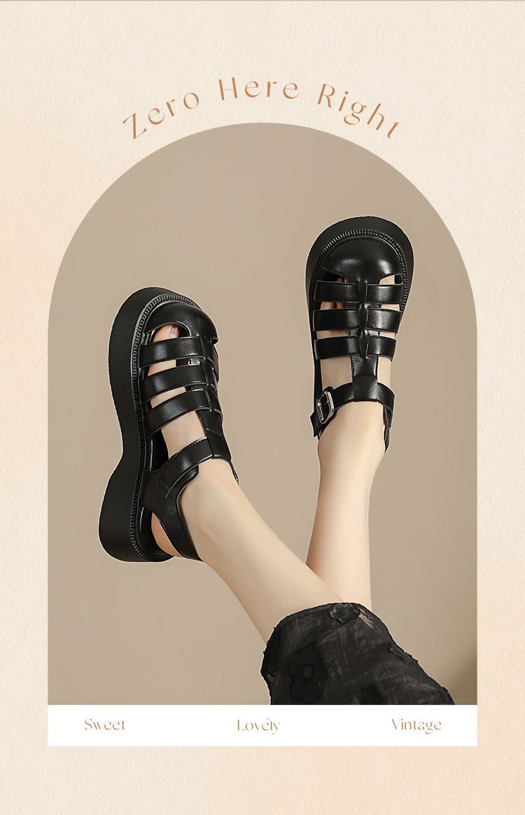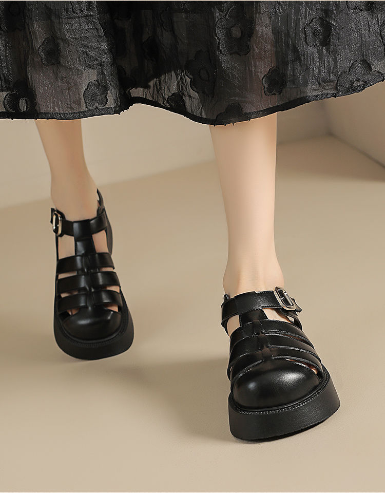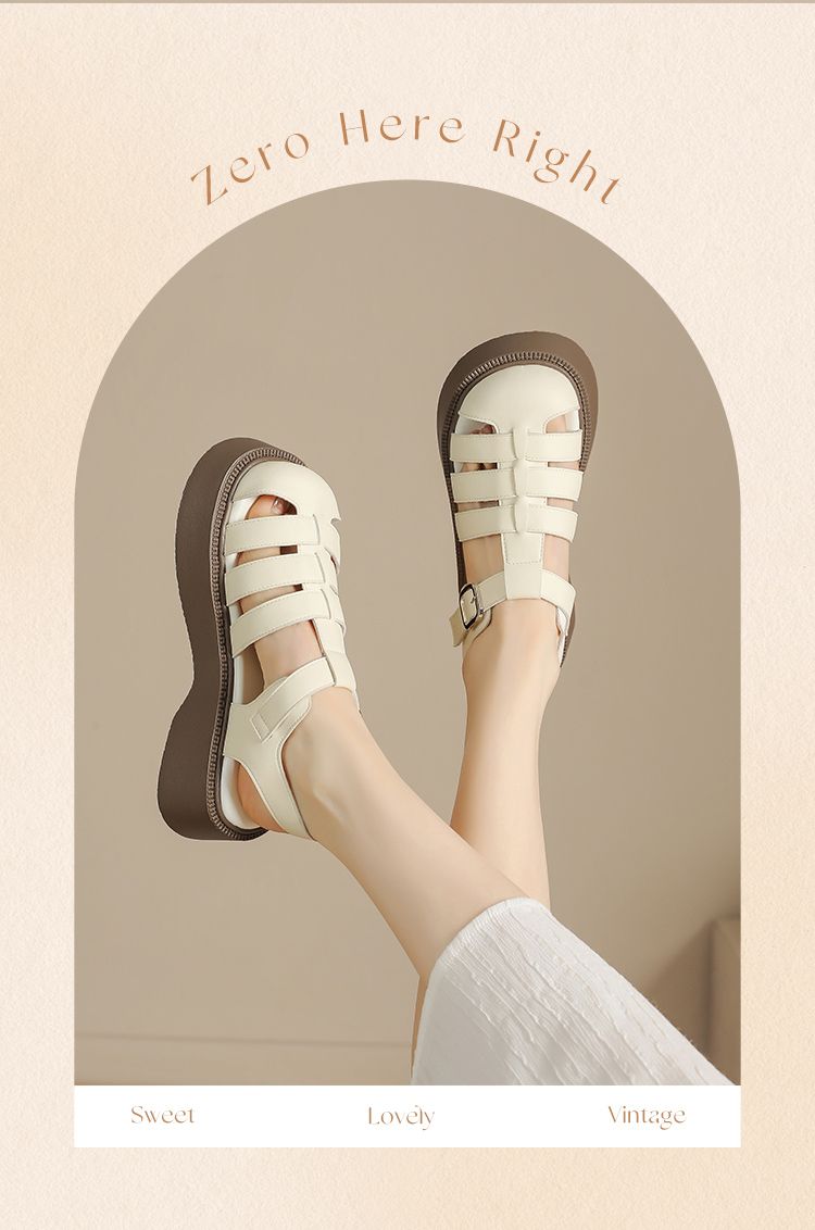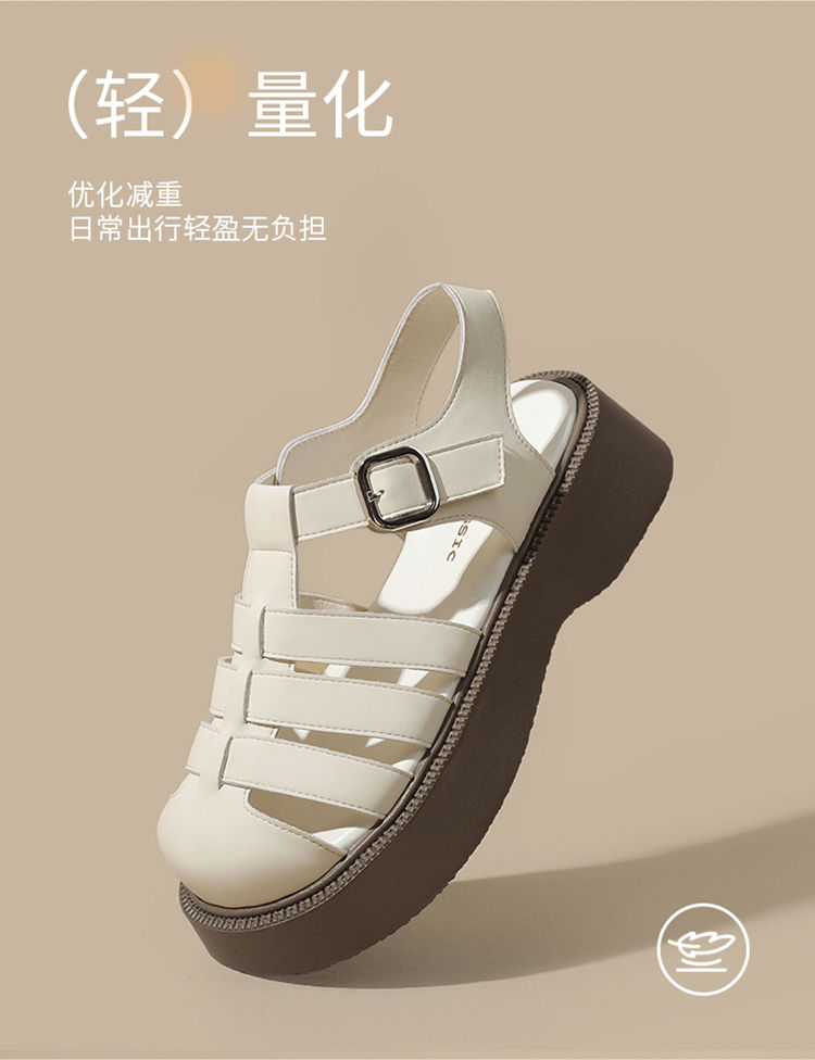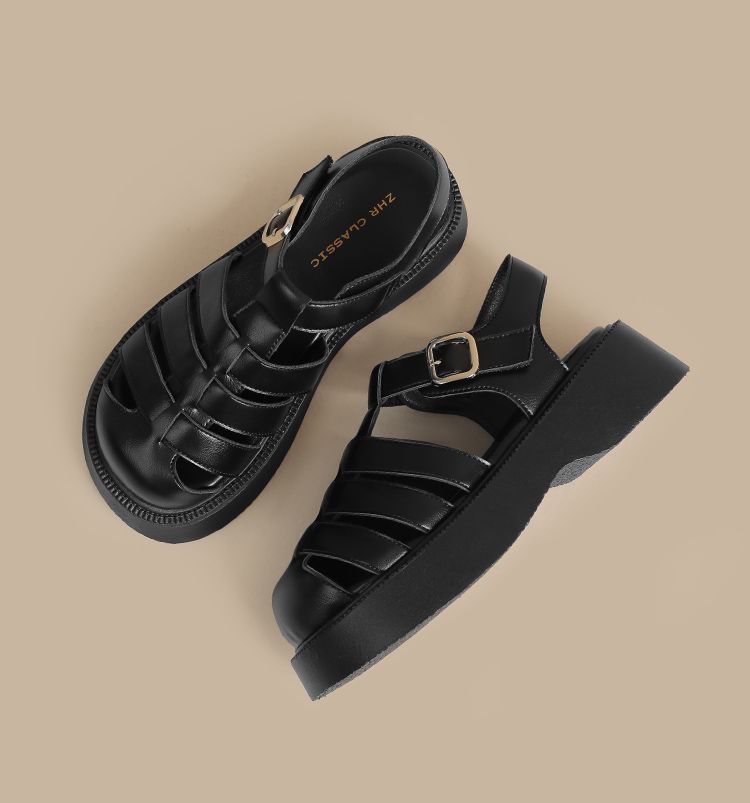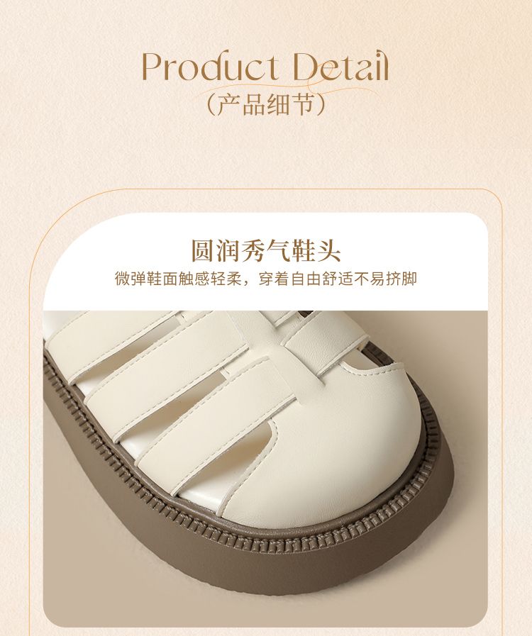 ZHR则则厚底罗马凉鞋2025新款编织猪笼鞋圆头魔术贴女鞋法式凉鞋