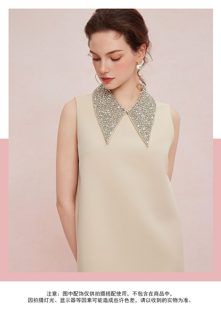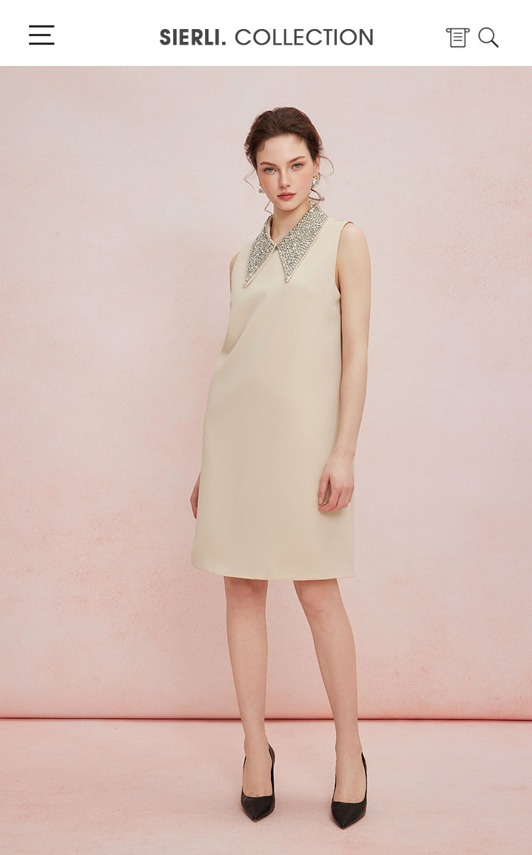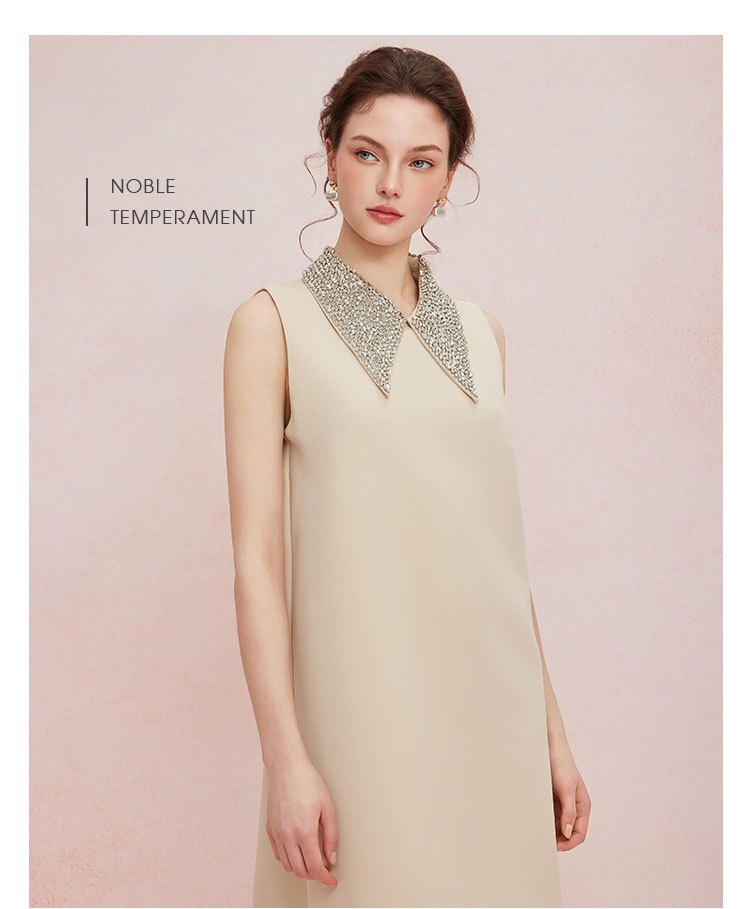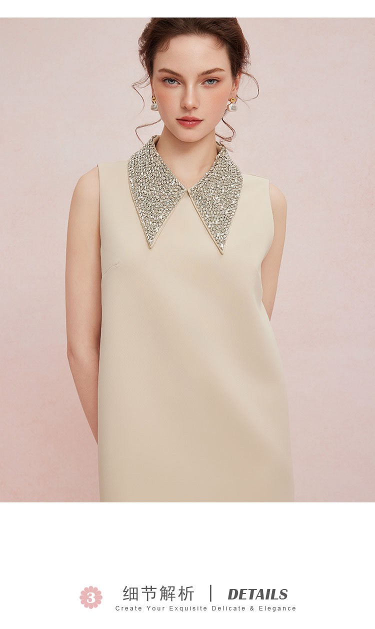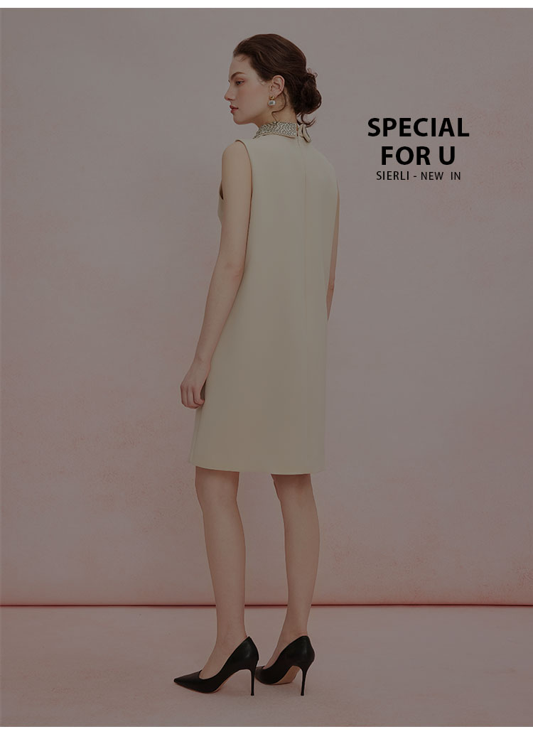 QF849斯尔丽2025新款宴会小礼服直身款显瘦显高精致钉珠领无袖连衣裙