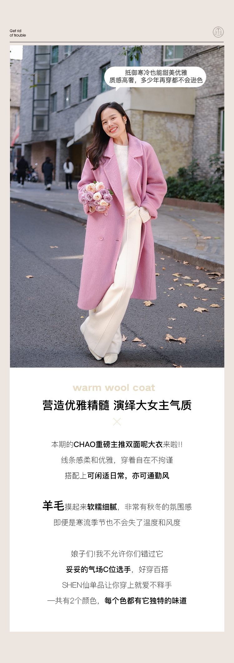 原价1299 秒杀520 !!【现货】一姐“松弛新貌”高支桑蚕丝羊毛双面呢中长款大衣