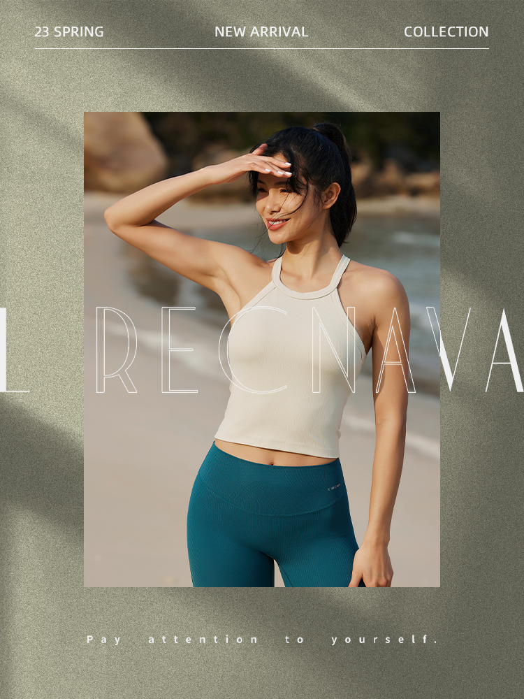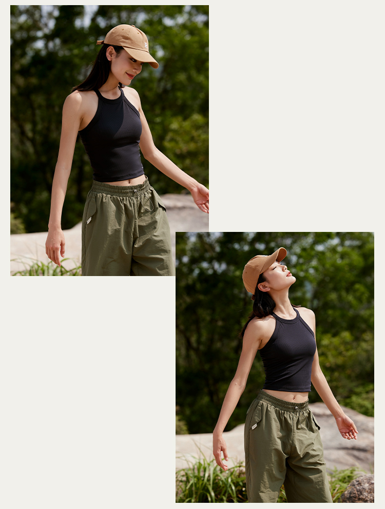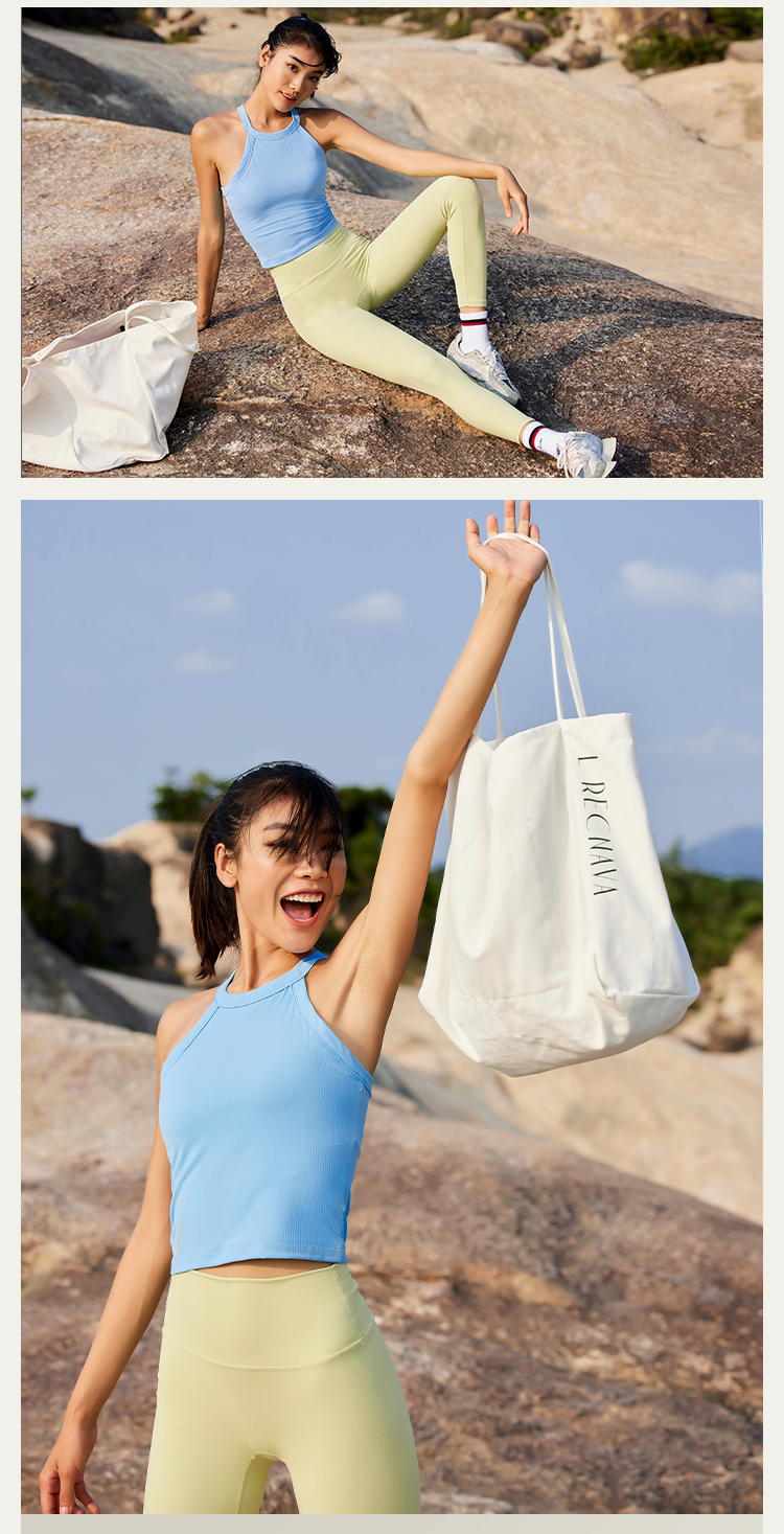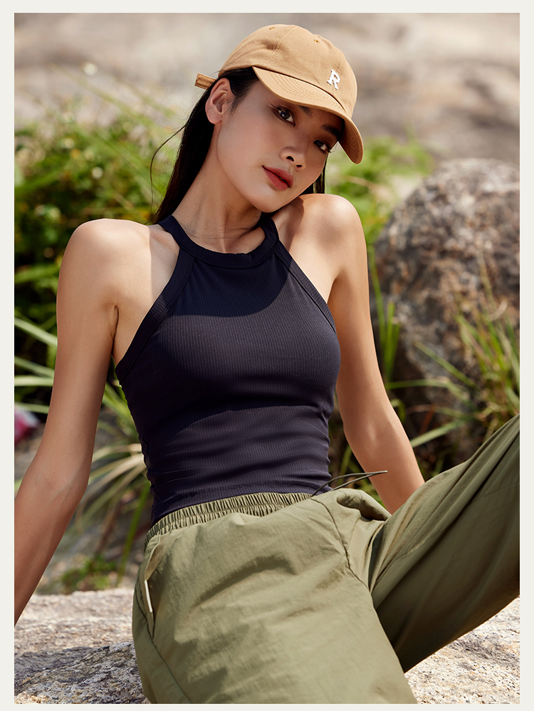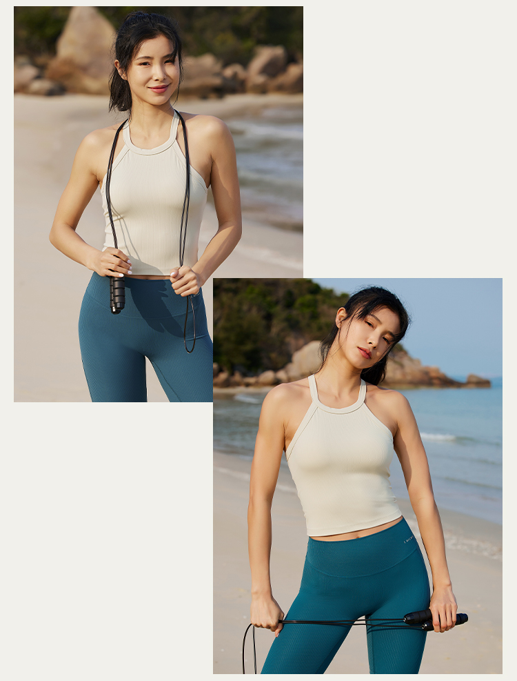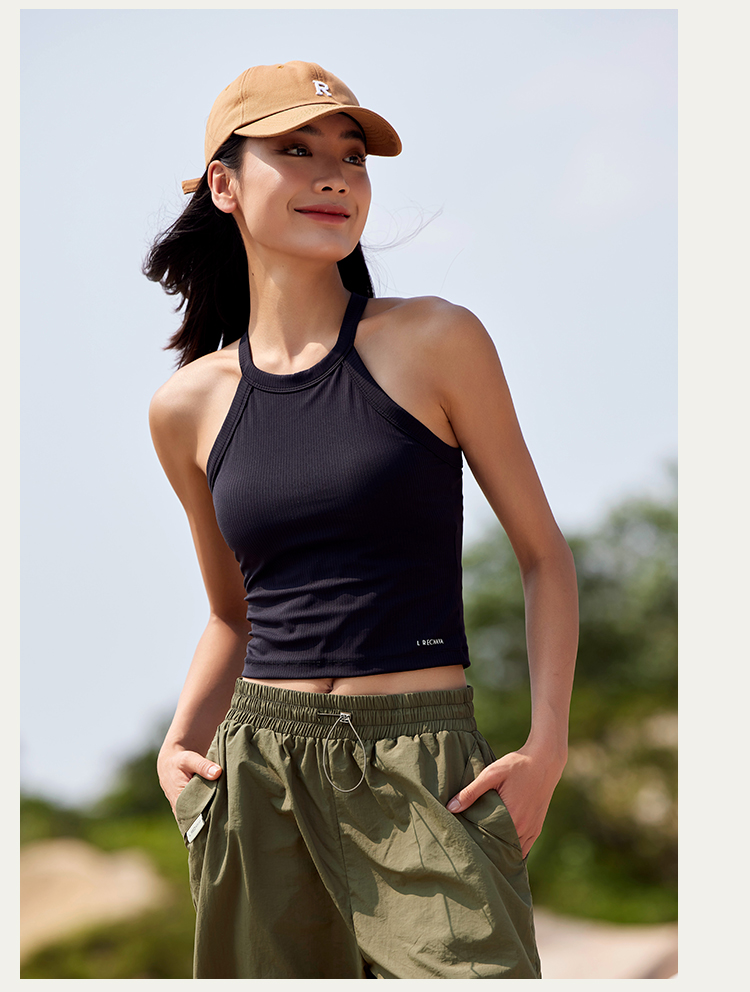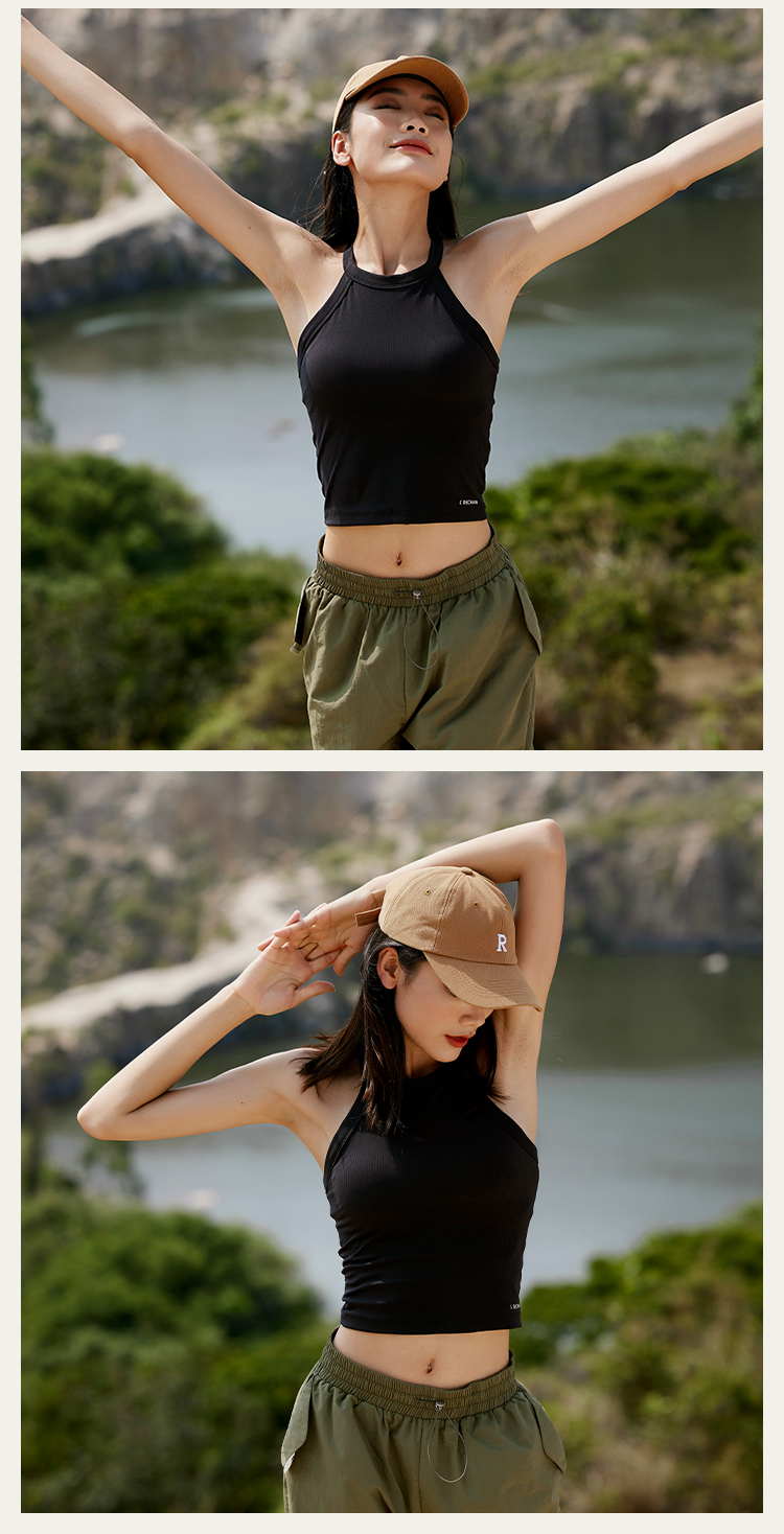 【肌理面料】一体式胸垫小圆领大露背运动背心-低强度