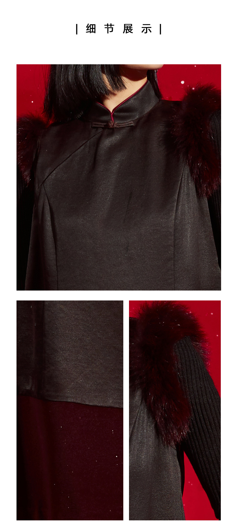 TANGY Collection/天意精品秋冬新品丝毛拼接国风立领旗袍连衣裙 商品图3