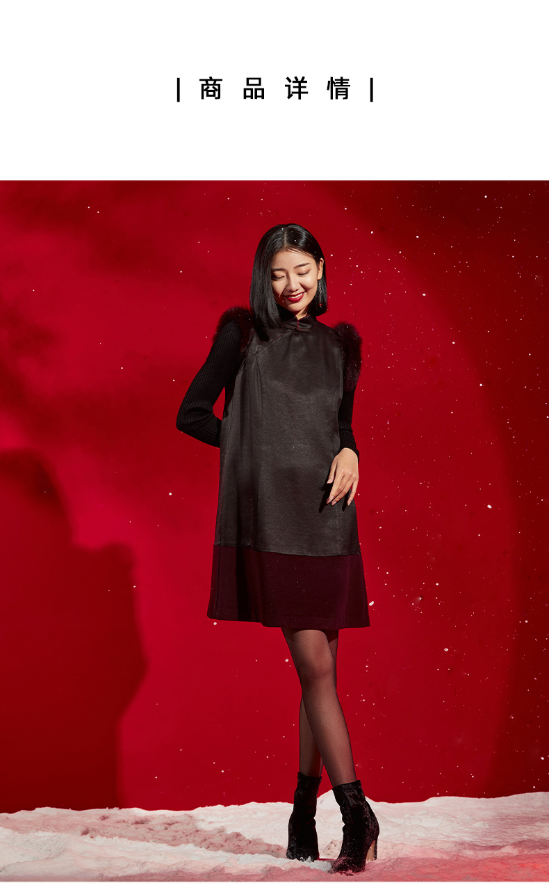 TANGY Collection/天意精品秋冬新品丝毛拼接国风立领旗袍连衣裙 商品图4
