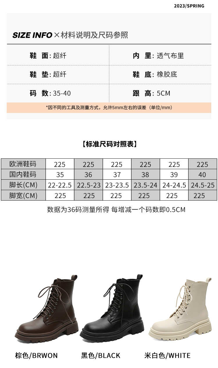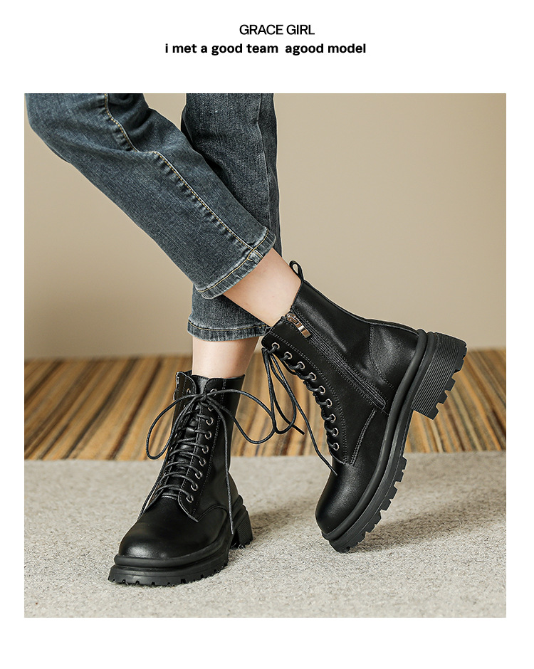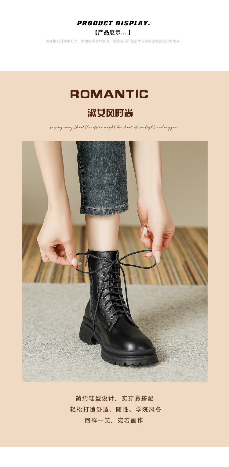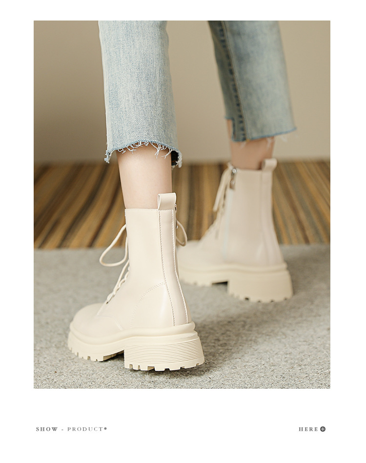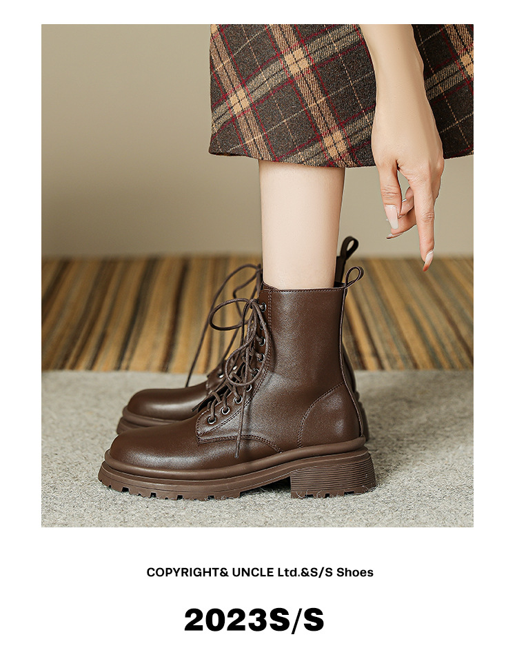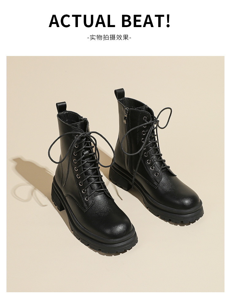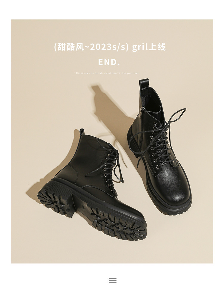 机车辣妹 系带短靴女2023秋冬款粗跟厚底英伦风马丁靴短筒靴子女