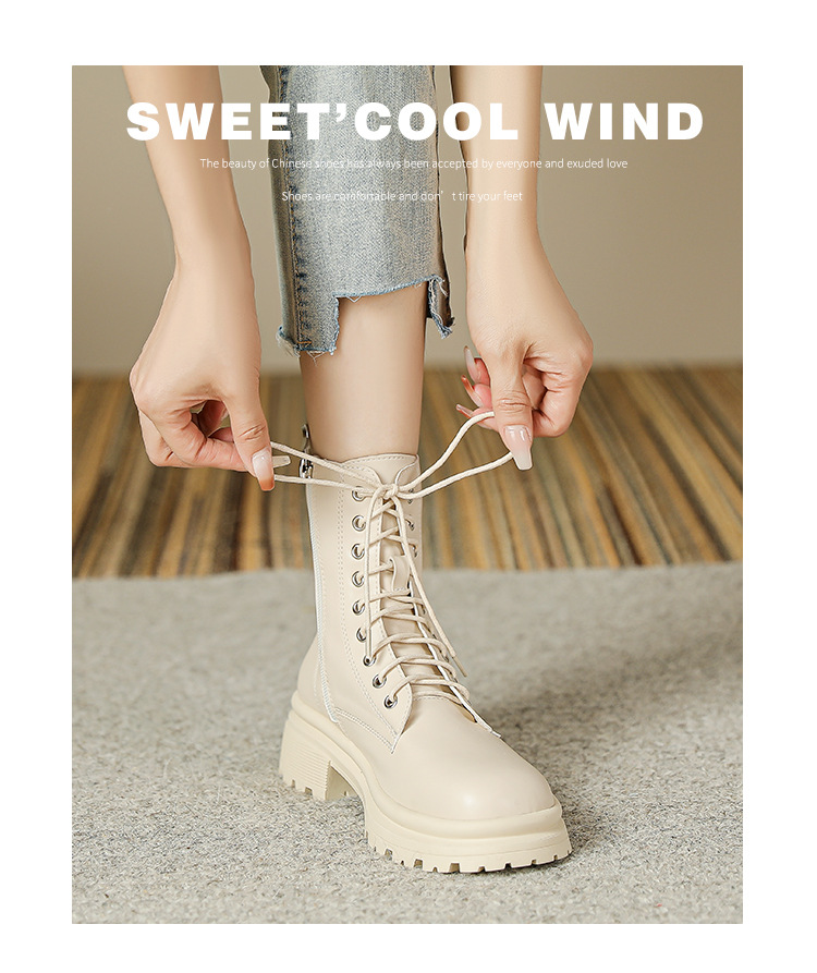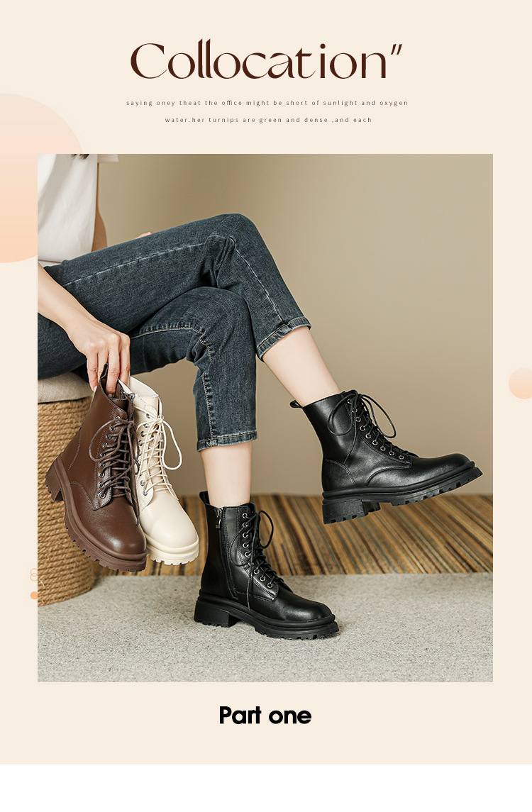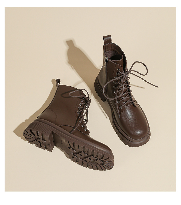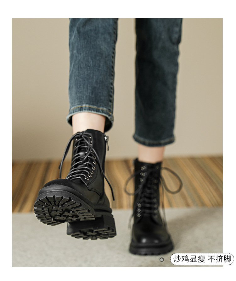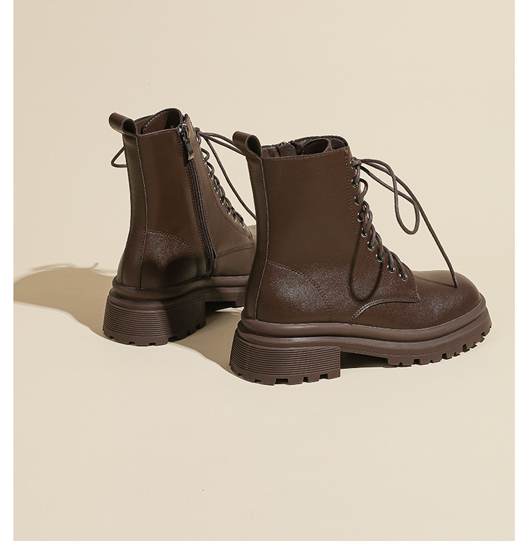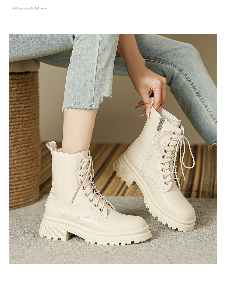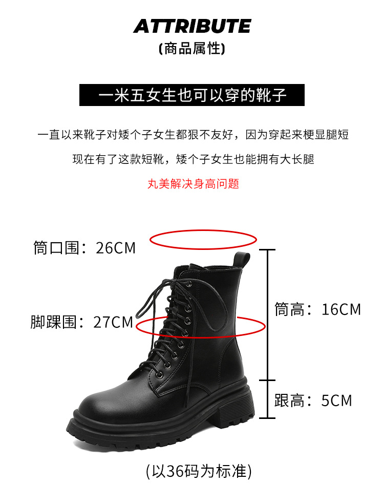 机车辣妹 系带短靴女2023秋冬款粗跟厚底英伦风马丁靴短筒靴子女