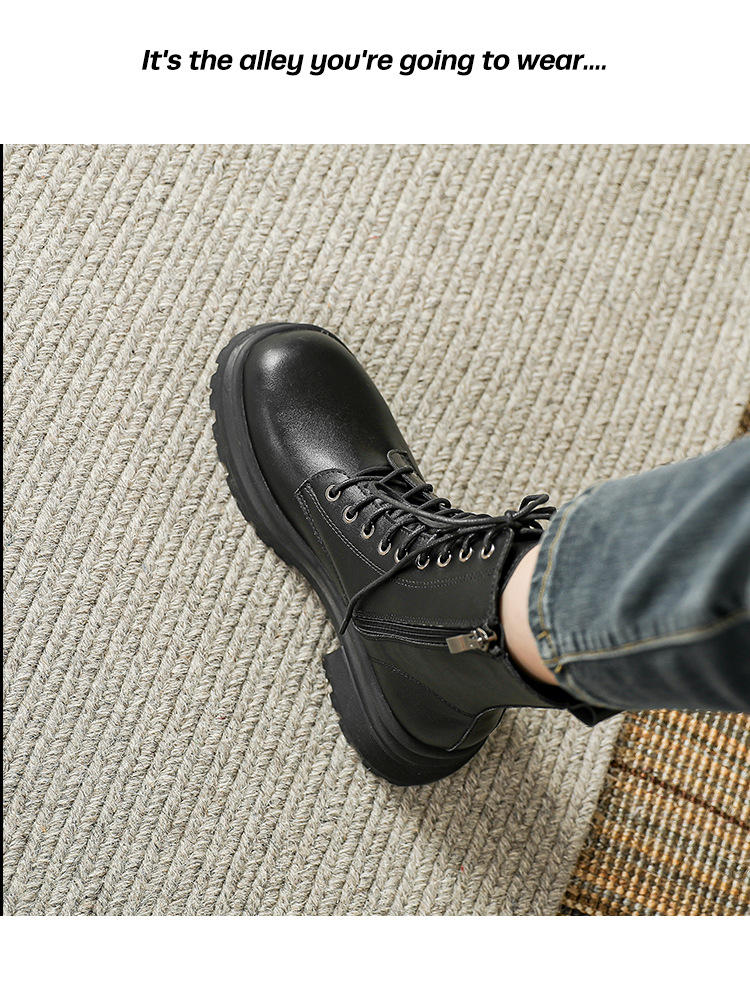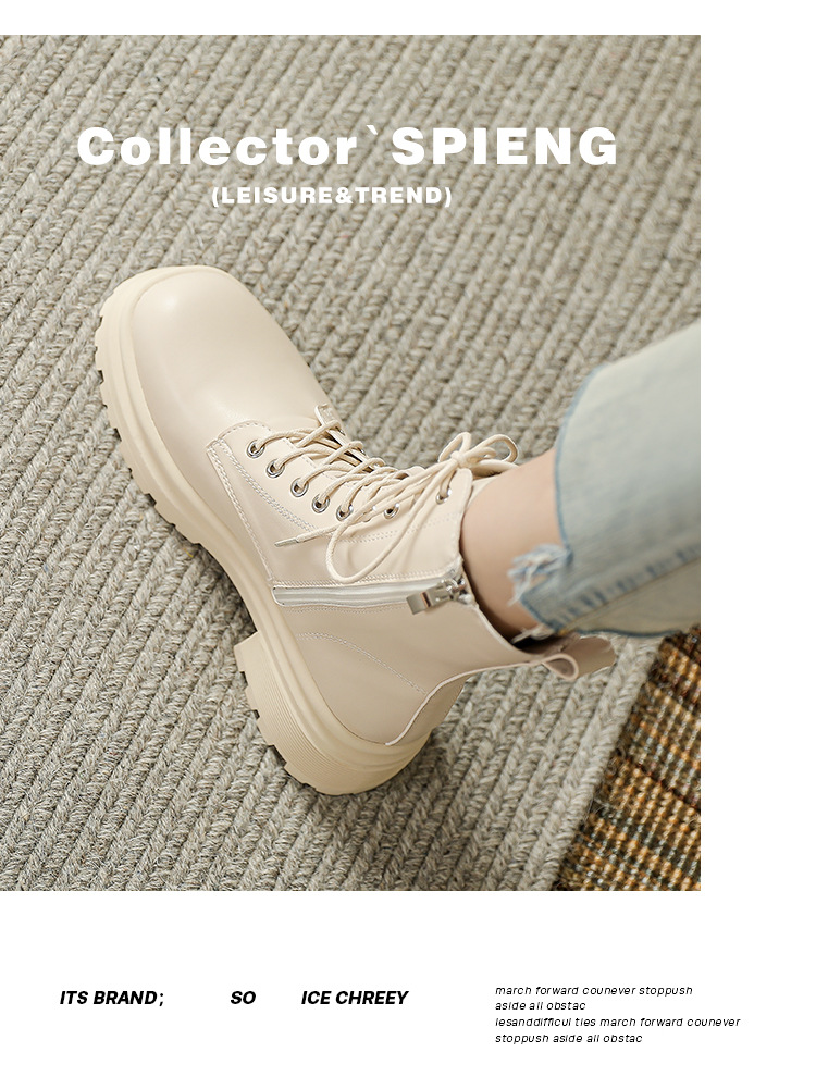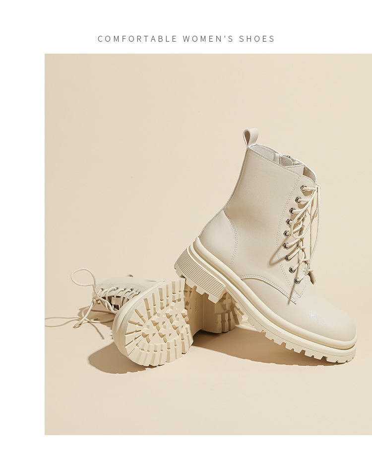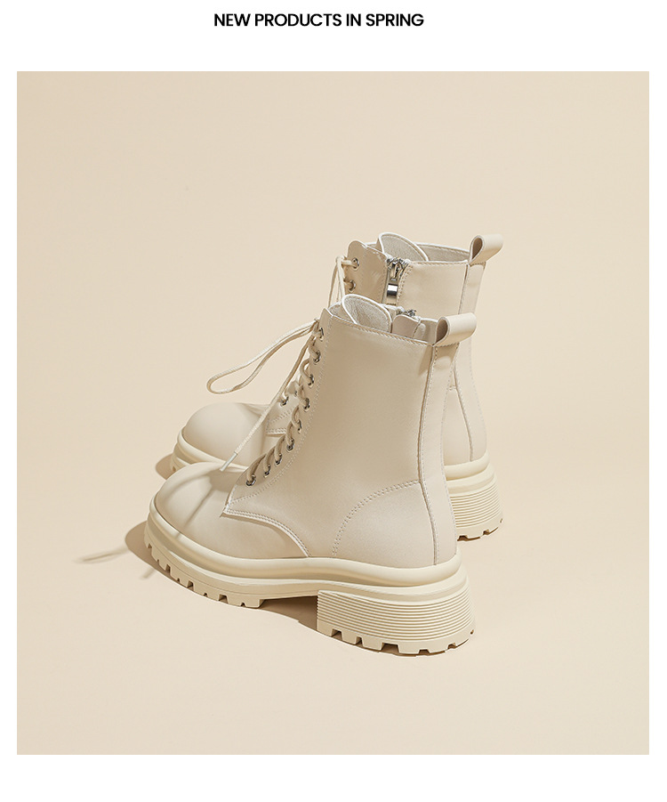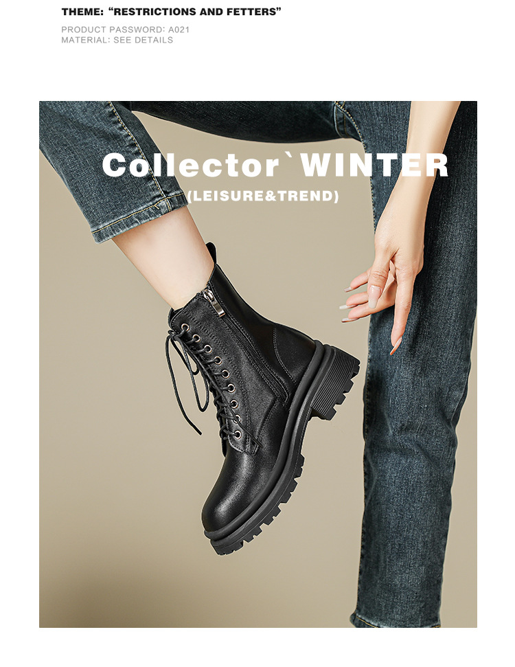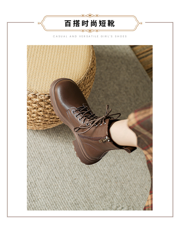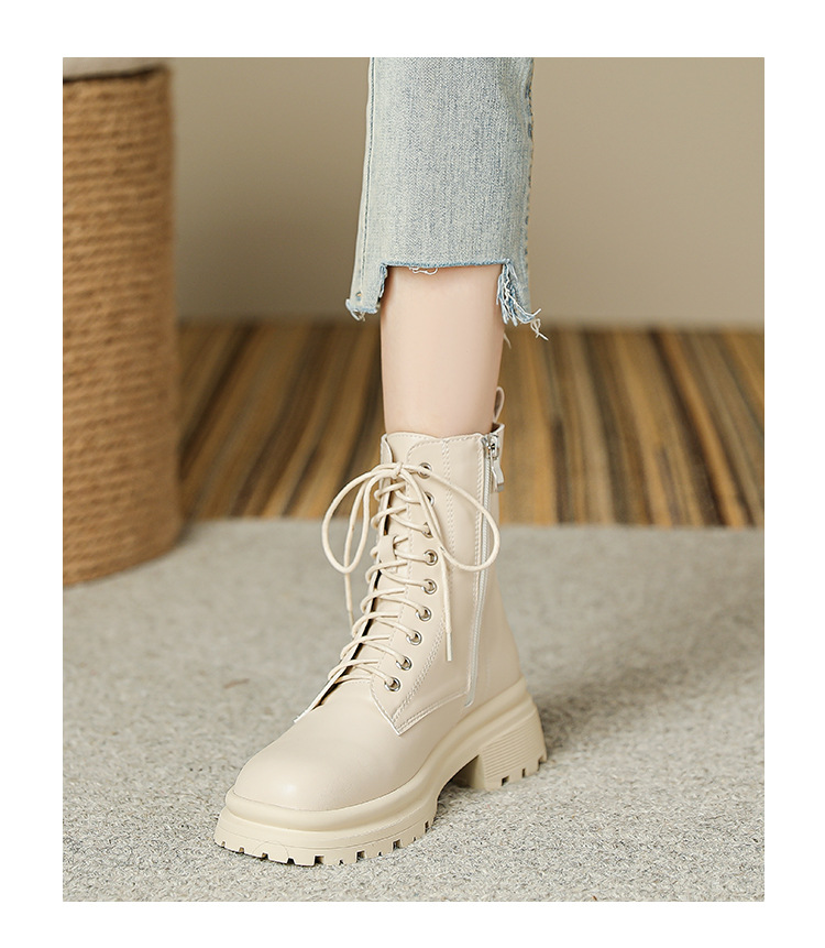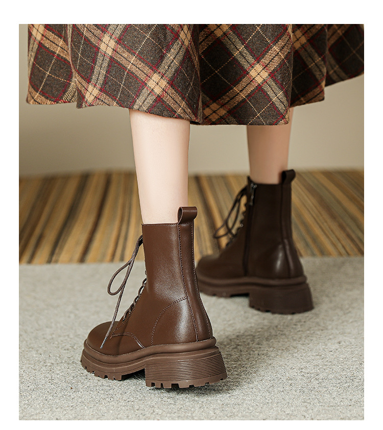 机车辣妹 系带短靴女2023秋冬款粗跟厚底英伦风马丁靴短筒靴子女