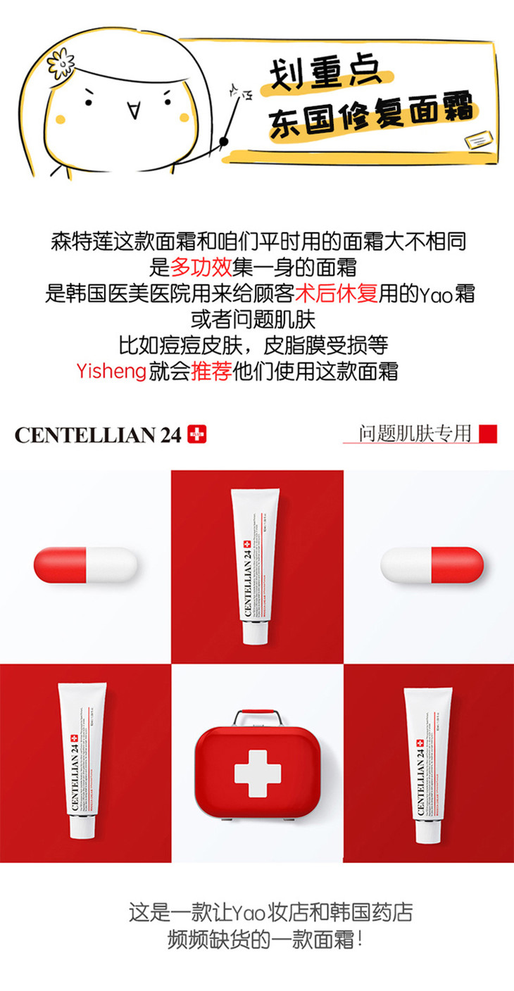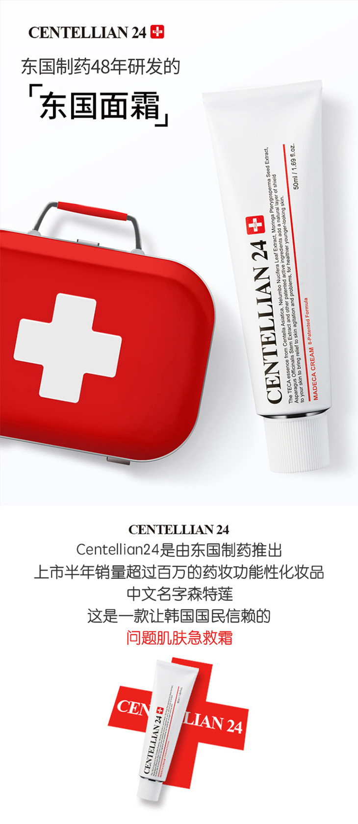 问题肌肤急救面霜 CENTELLIAN 24森特莲东国制药面霜 去BAN祛痘 舒缓保湿