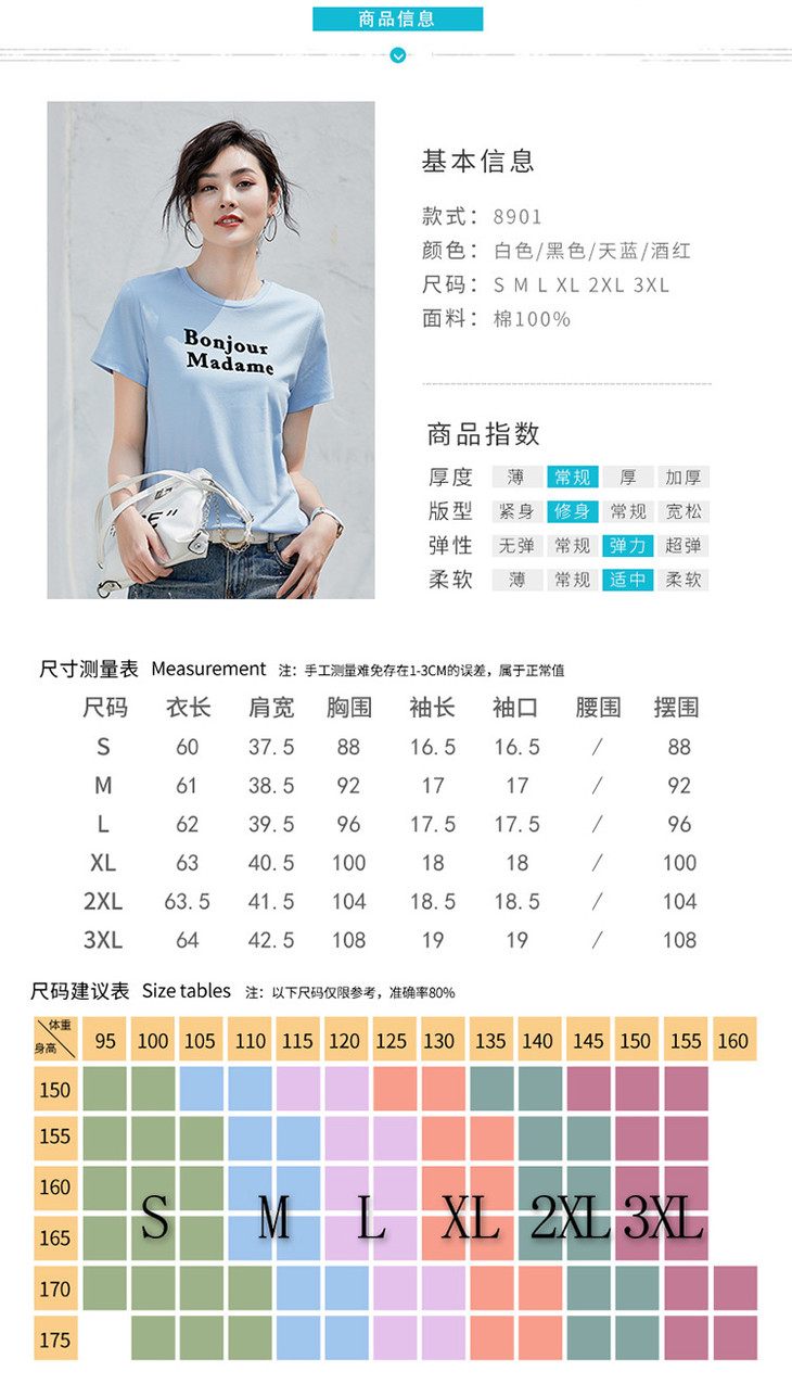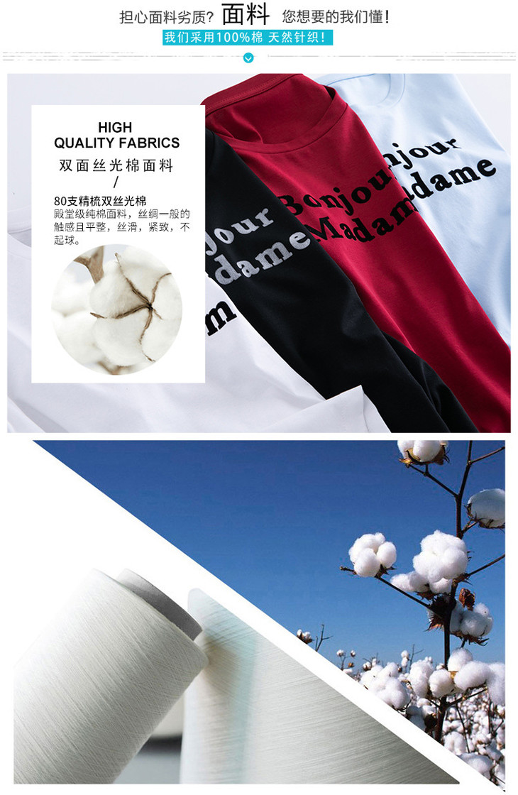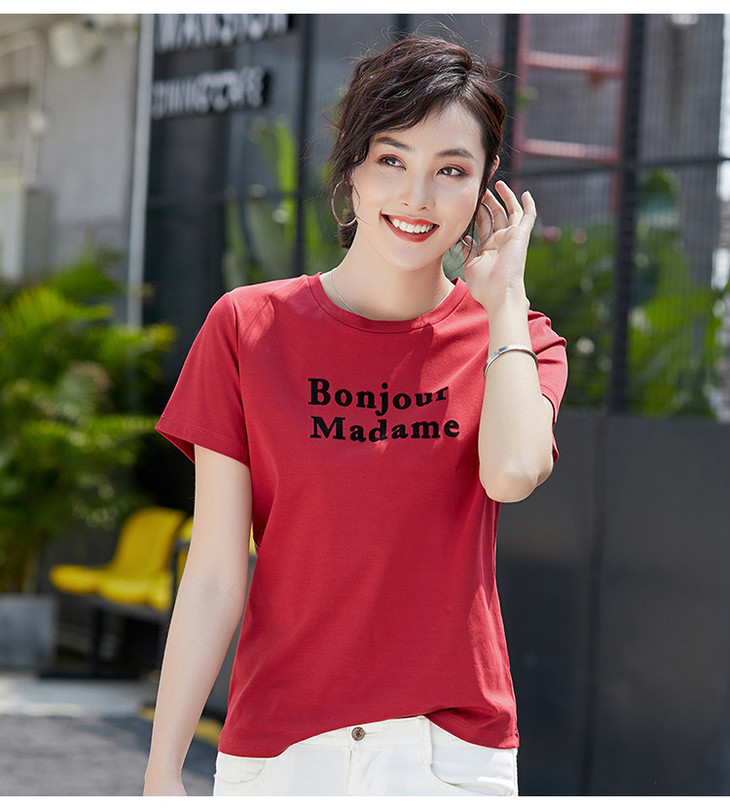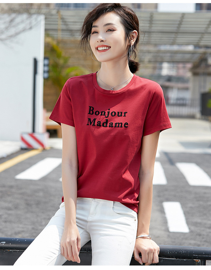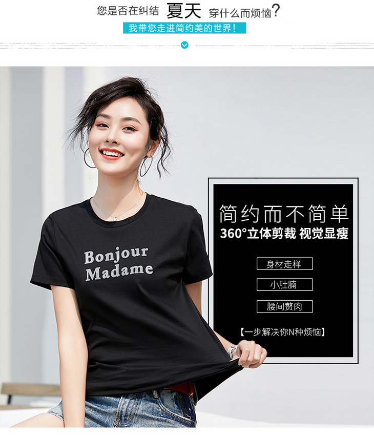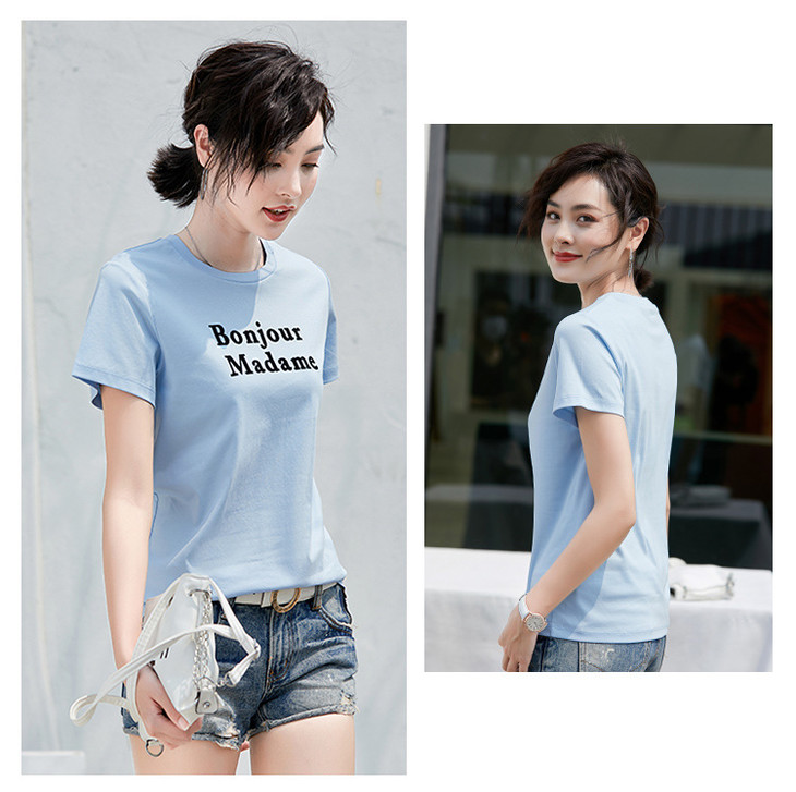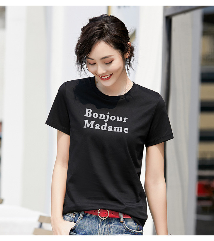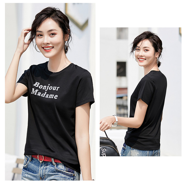 清爽百搭时尚修身,80支植绒丝光棉字母纯棉夏季短袖女T恤 ZS8901