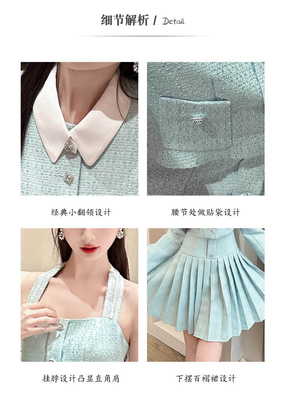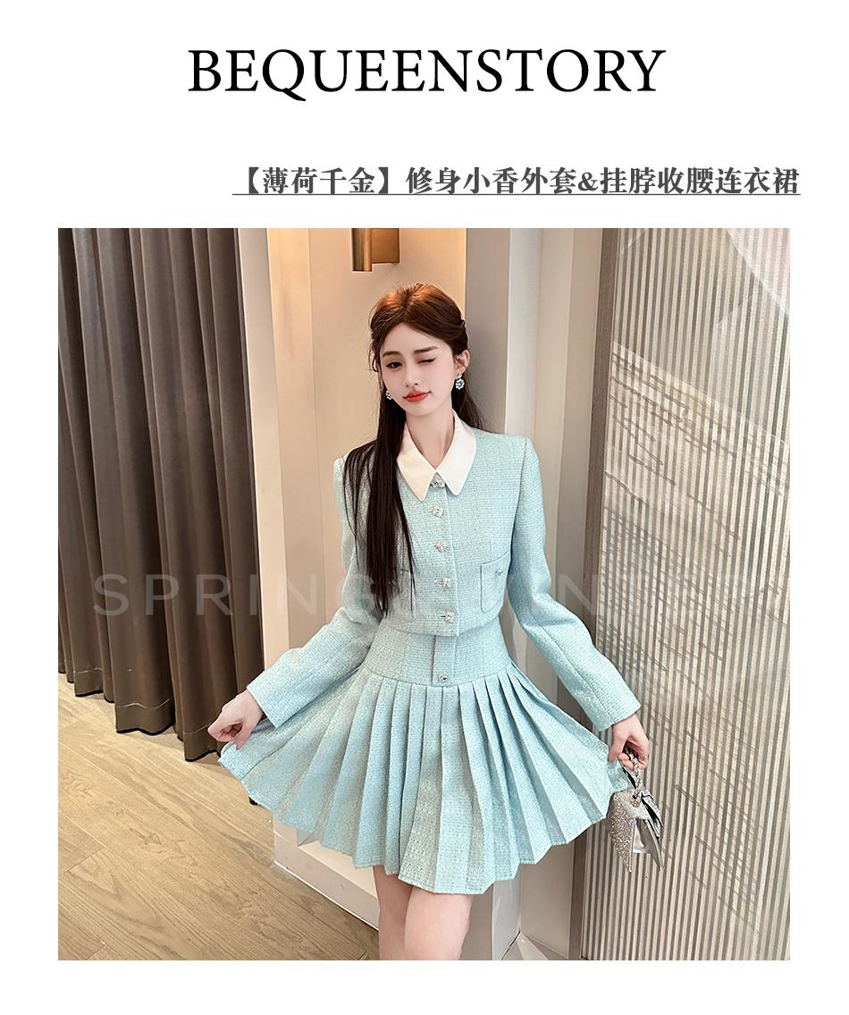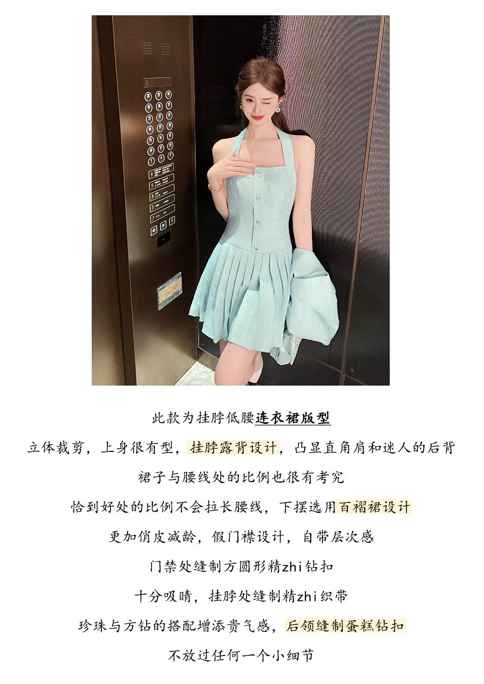 【大货捡漏,不退不换】 【薄荷千金】时尚百搭修身小香外套&挂脖收腰女连衣裙