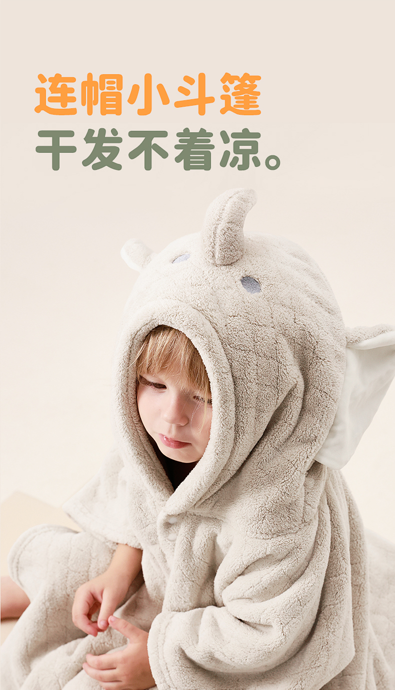 【BG】BabyGreat儿童浴巾宝宝穿戴式带帽造型吸水速干可穿式浴巾