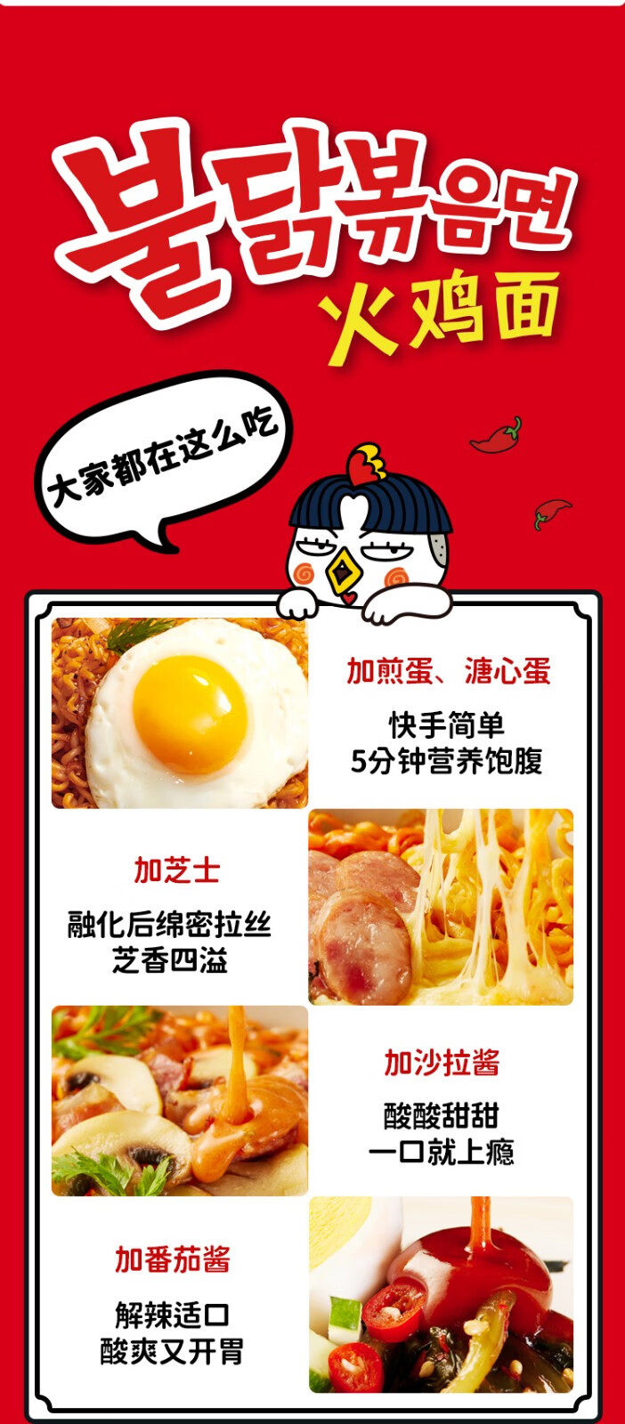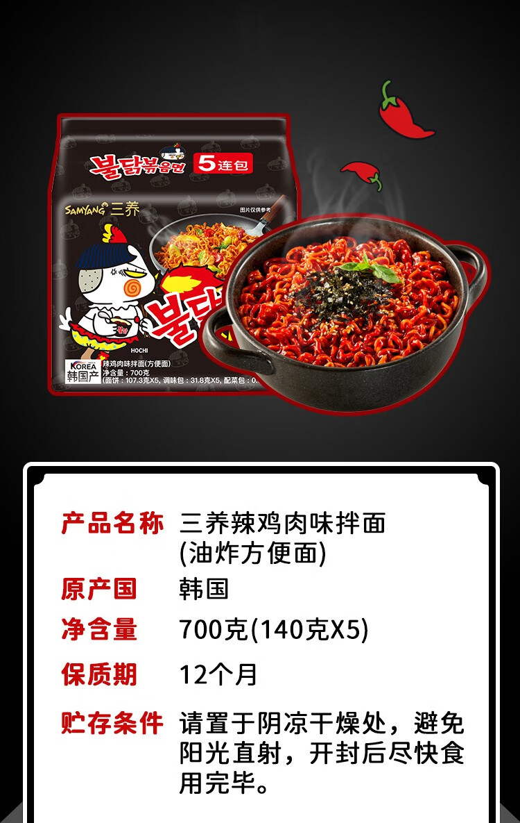 韩国三养辣鸡肉味拌面140g*5包/030078 油炸方便面口感Q弹爽滑有劲