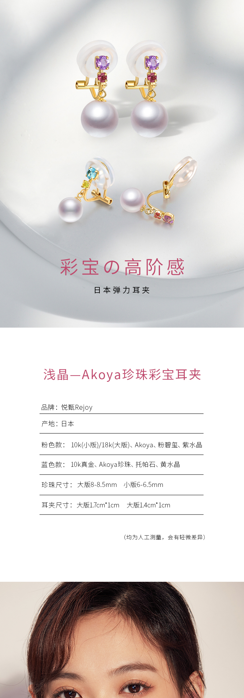 【挚友限定】悦甄 浅晶耳夹 小耳垂推荐悦甄无耳洞k金水晶珍珠耳夹耳环