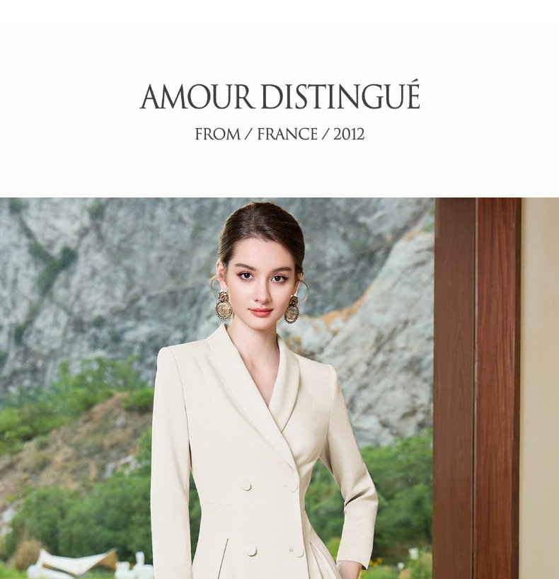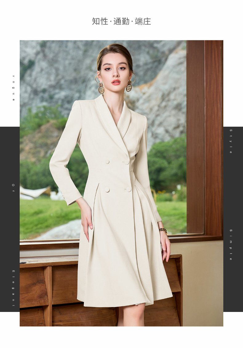 IWY/杏色连衣裙女秋长袖商务职业西装裙子主持人米色上镜比赛服装Q1033-M