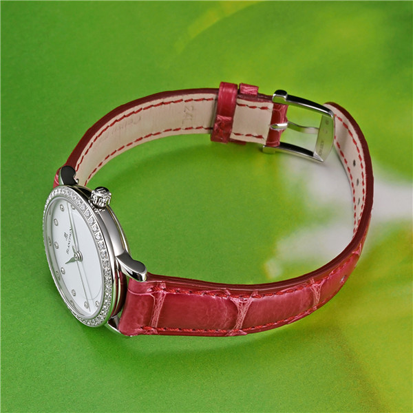 镜面材质 | 蓝宝石水晶玻璃 | 表盘 | 精钢镶钻表壳 白色表盘 镶钻时标 |