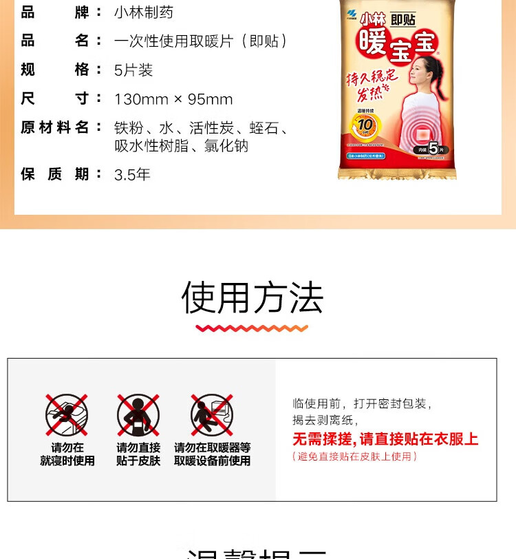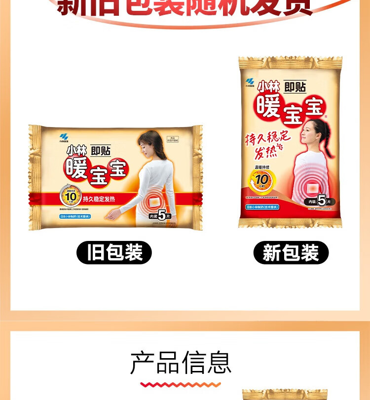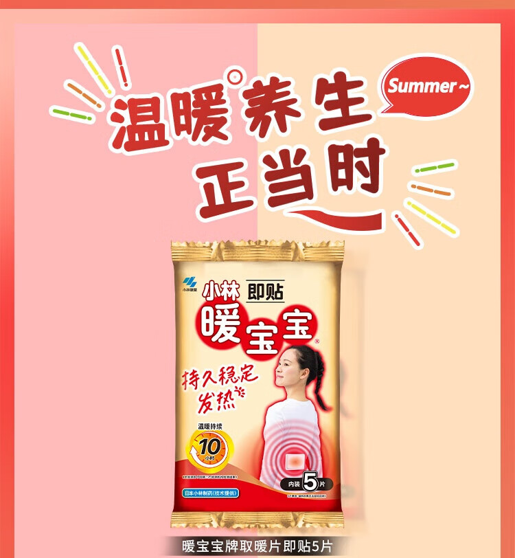 (五片)小林即贴暖宝宝暖贴保暖贴暖身贴防寒自发热贴暖宝宝贴5片