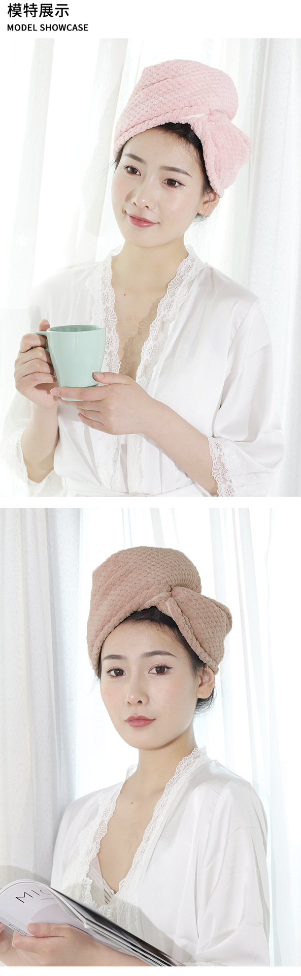 【菠萝格干发帽!时尚生活】干发帽女双层浴帽,速干吸水加厚居家包头发干发巾,轻巧减负 急速吸湿 精致滚边 ,饱满毛圈 活性印染 小熊纽扣 长发及腰即可轻松驾驭 hh