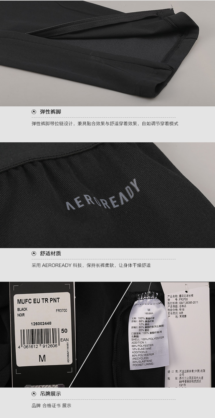 ADIDAS/阿迪达斯 曼联20/21赛季欧冠足球收腿裤FR3700
