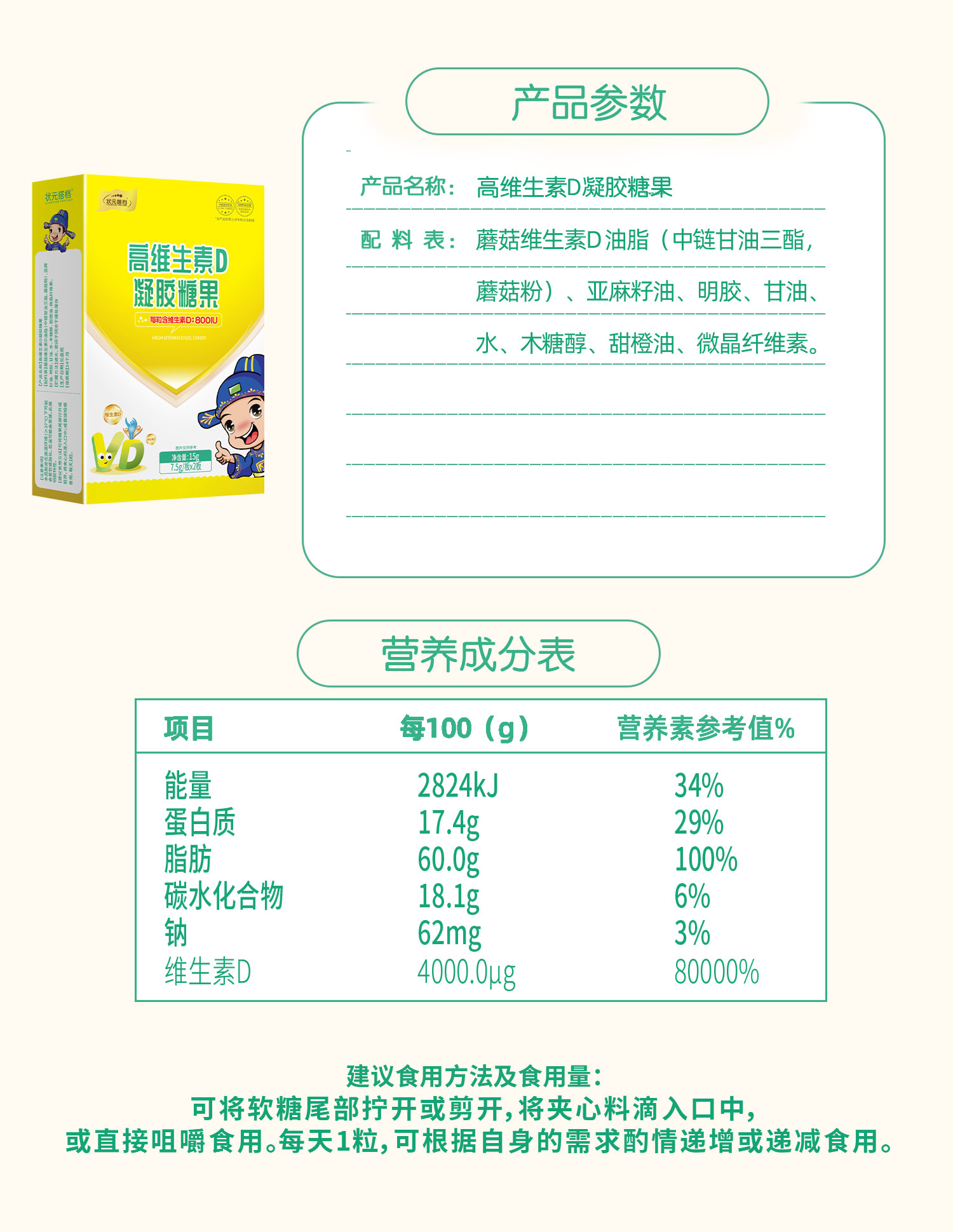 0岁-12岁每天1粒——1盒能吃1个月