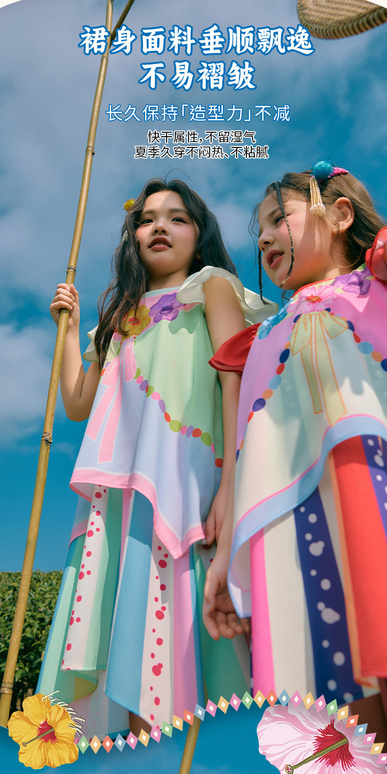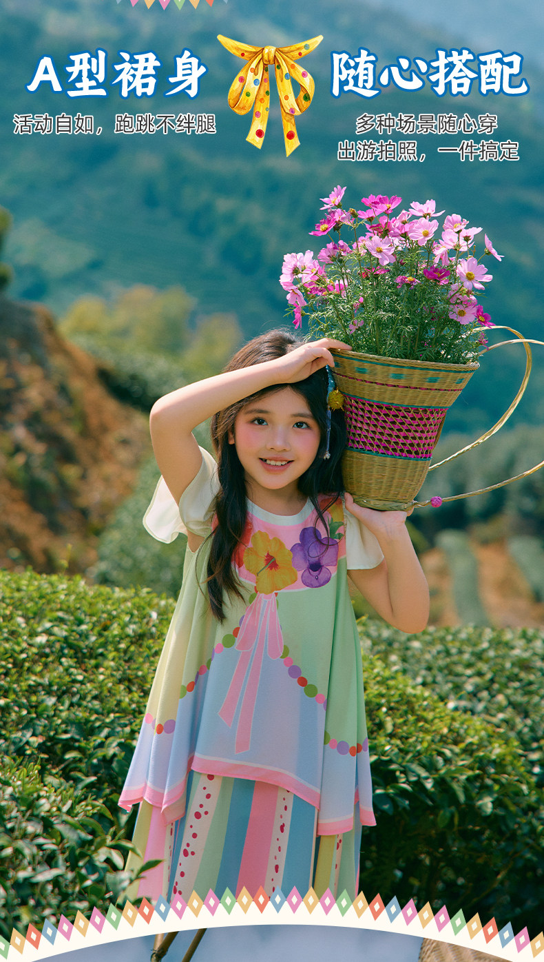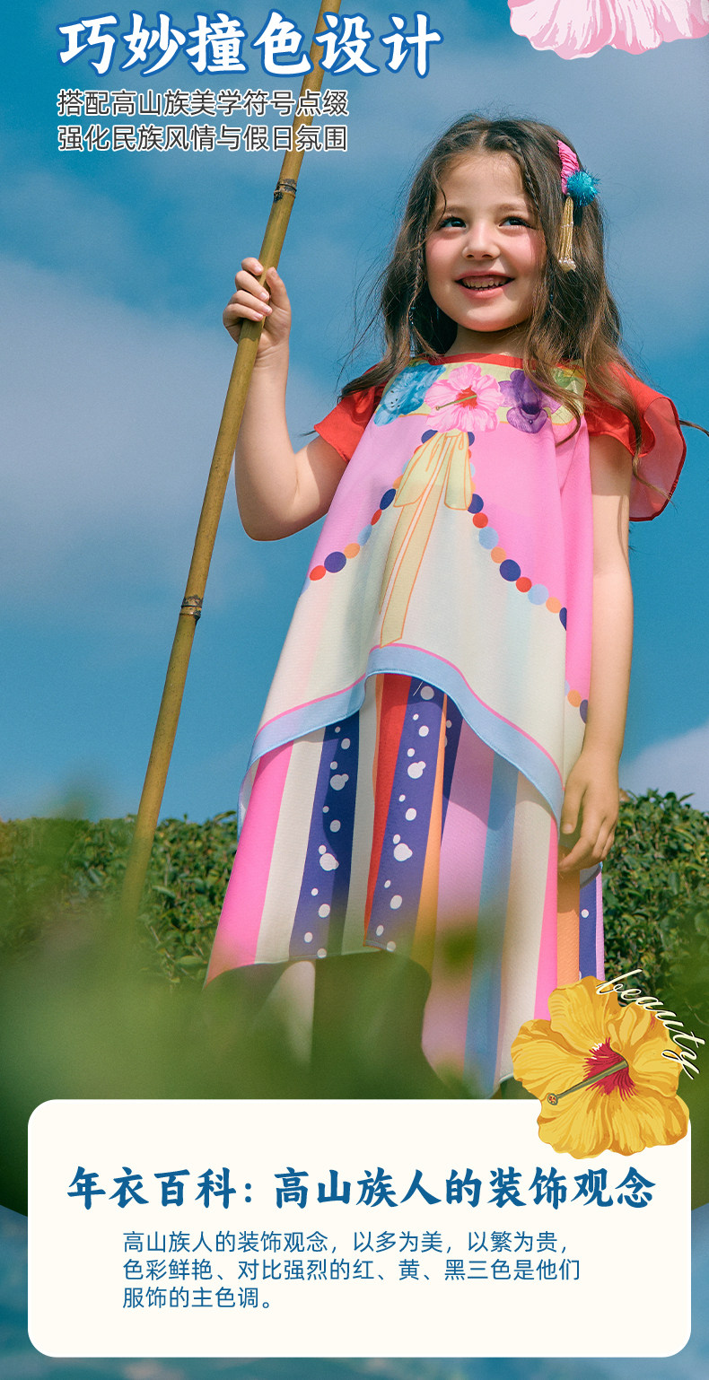 年衣童装儿童无袖连衣裙女童新款夏装民族风女孩甜美小飞袖中长裙