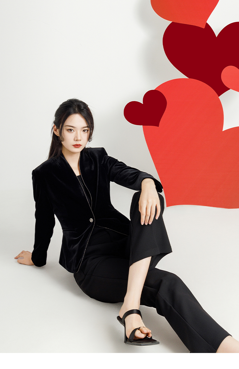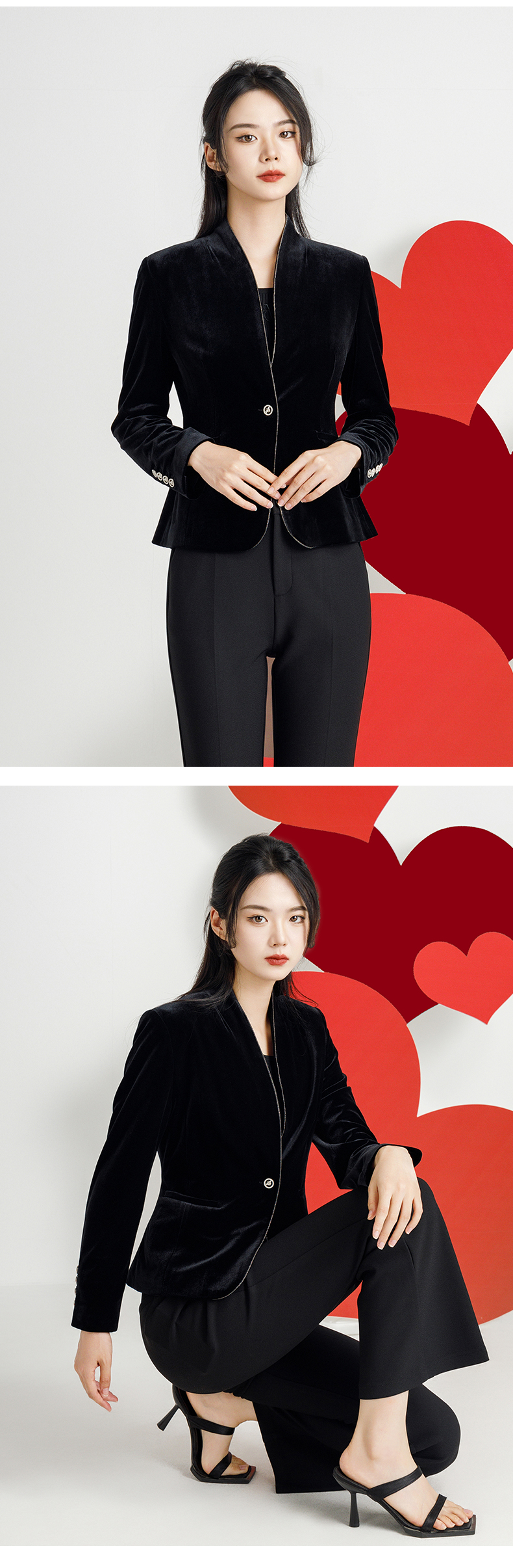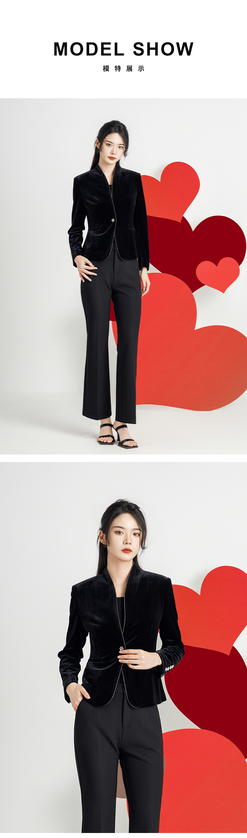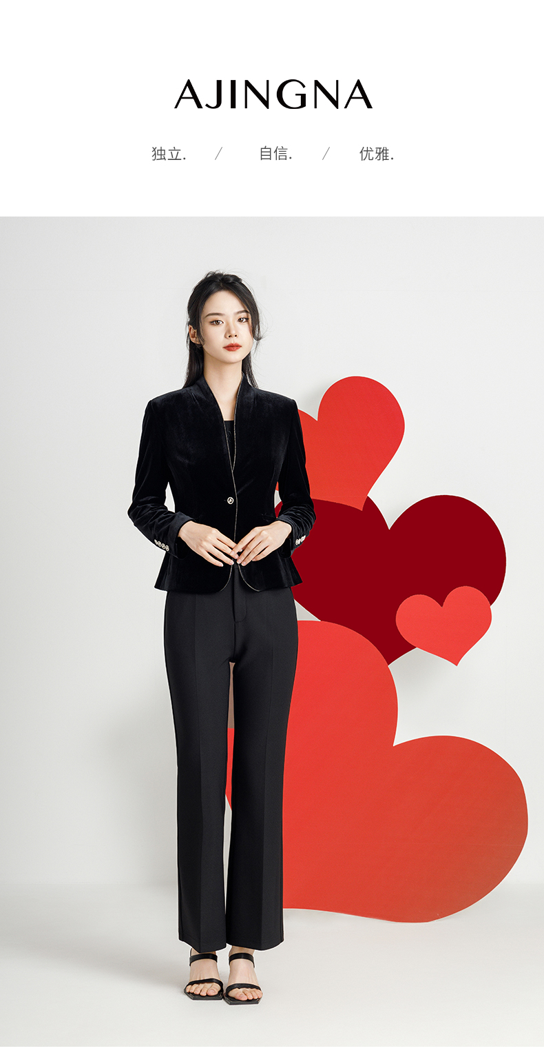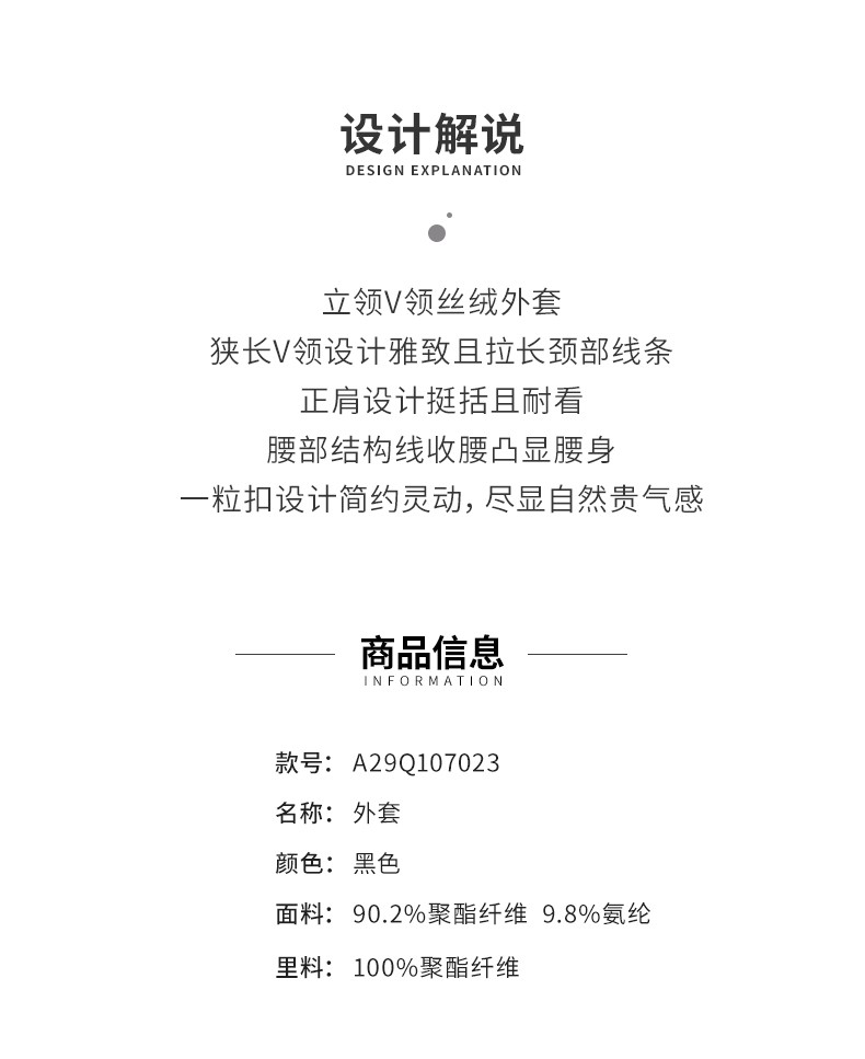 【商场同款】阿菁娜2024秋季新款立领V领丝绒外套A29Q107023