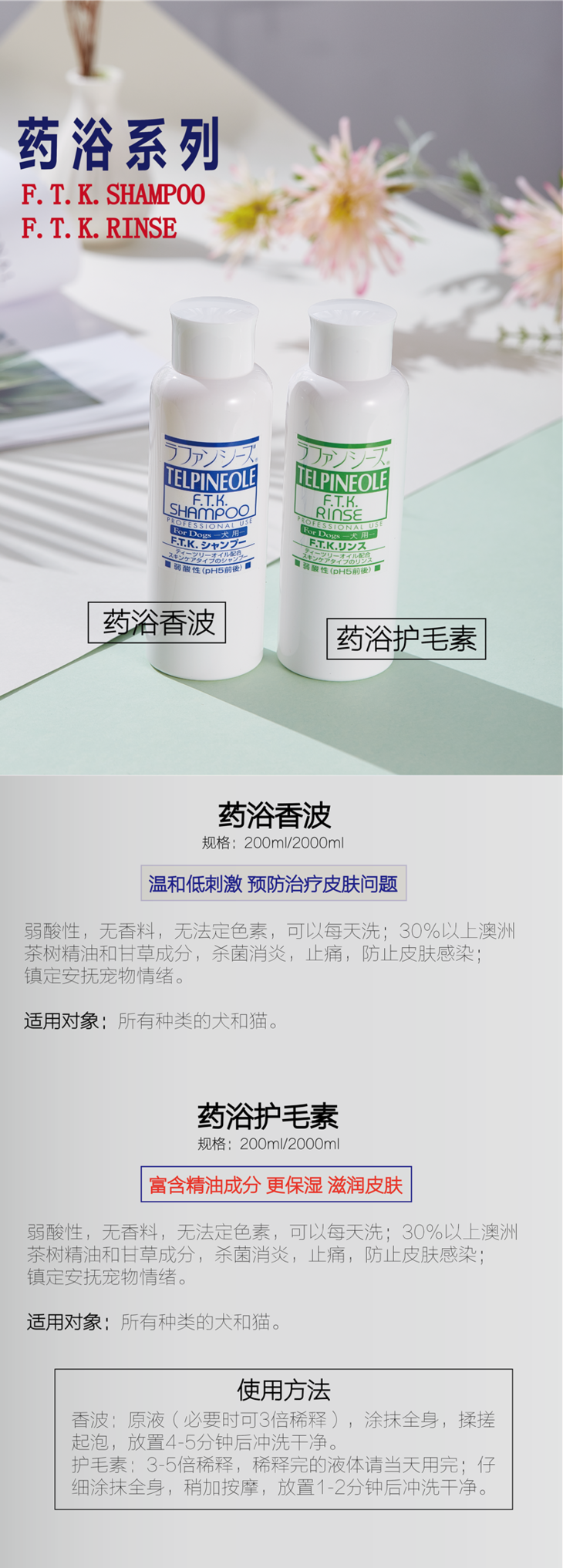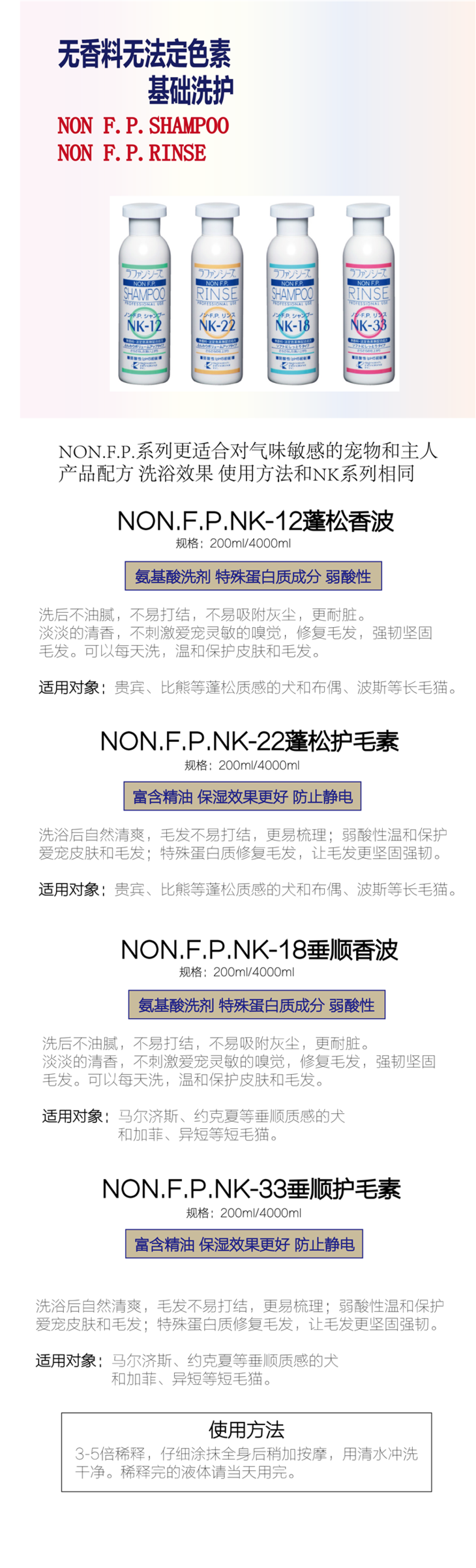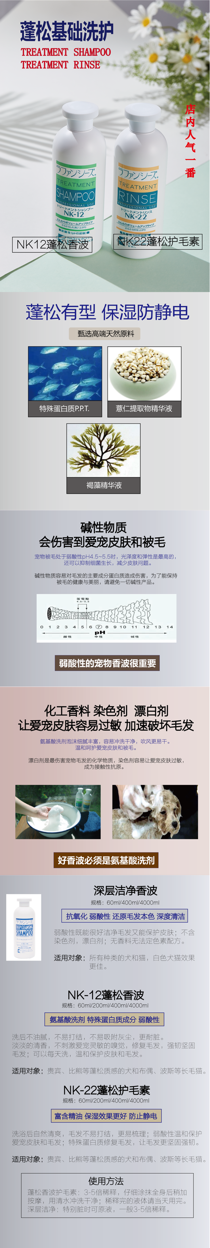 日本乐芳希施赛级浴液护毛素 皮毛调理低敏无刺激 200ml/400ml