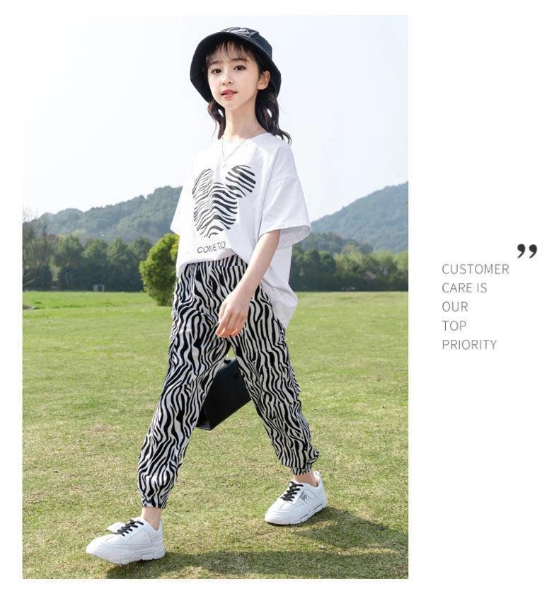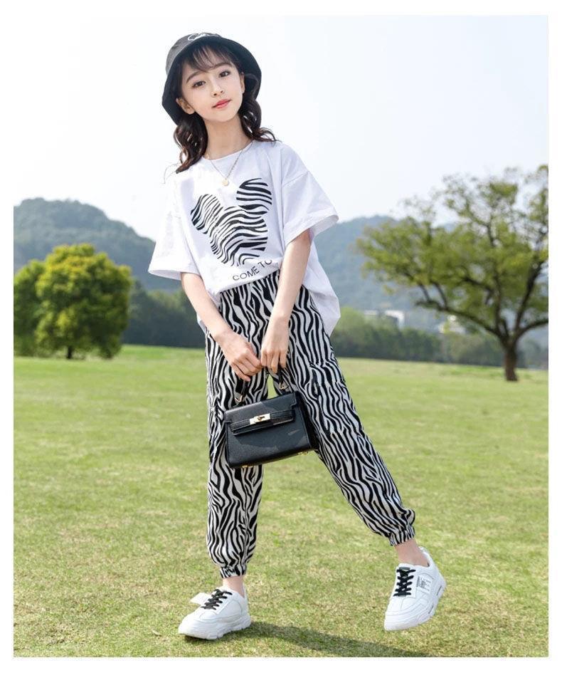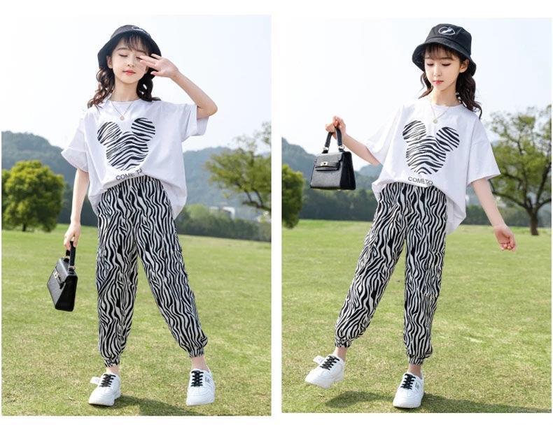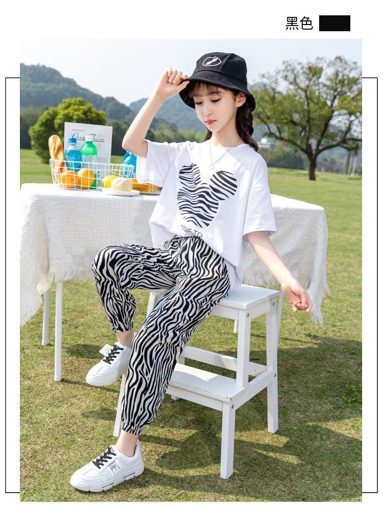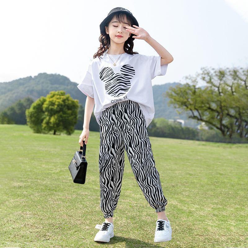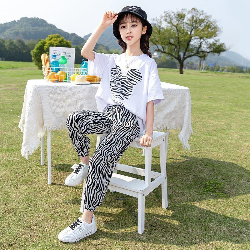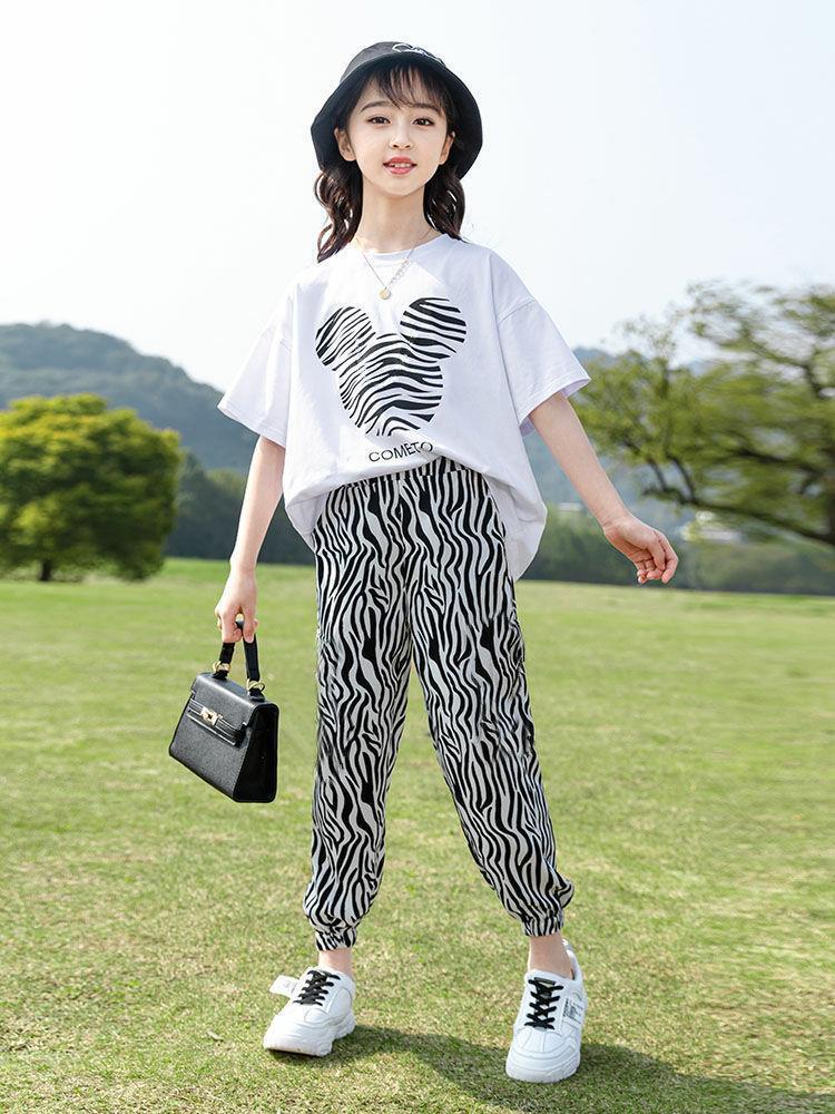童装女童套装2023夏季韩版中大童休闲短袖上衣T恤裤子运动两件套