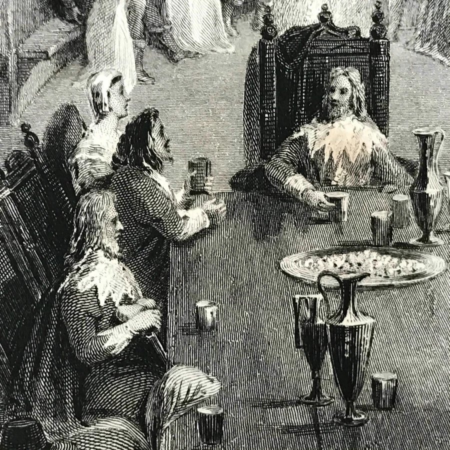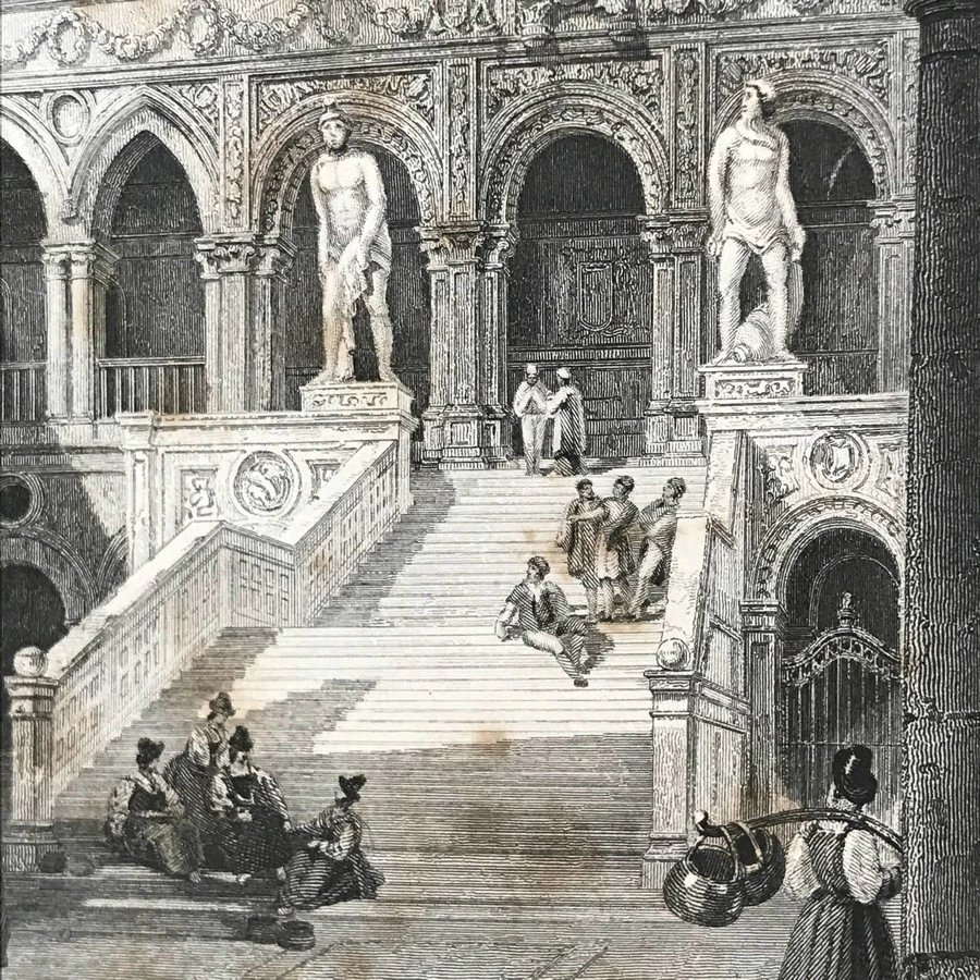 这批版画于1844-1846年间由英国著名学者G·N· Wright编纂,然后交由工艺极为精湛的版画公司Fisher, Son & Company制作出版,囊括了当时英国以及欧洲艺术领域出现的经典杰作。版画标题下方有些会有标识时间18XX的字样,有些没有,画面下方角落除了标题、时间、左右下角或者下方会标注画家和版画家或者制作公司,他们基本上都是当时书籍插图领域或者版画领域十分活跃的人物,这里就不单独做标识了。