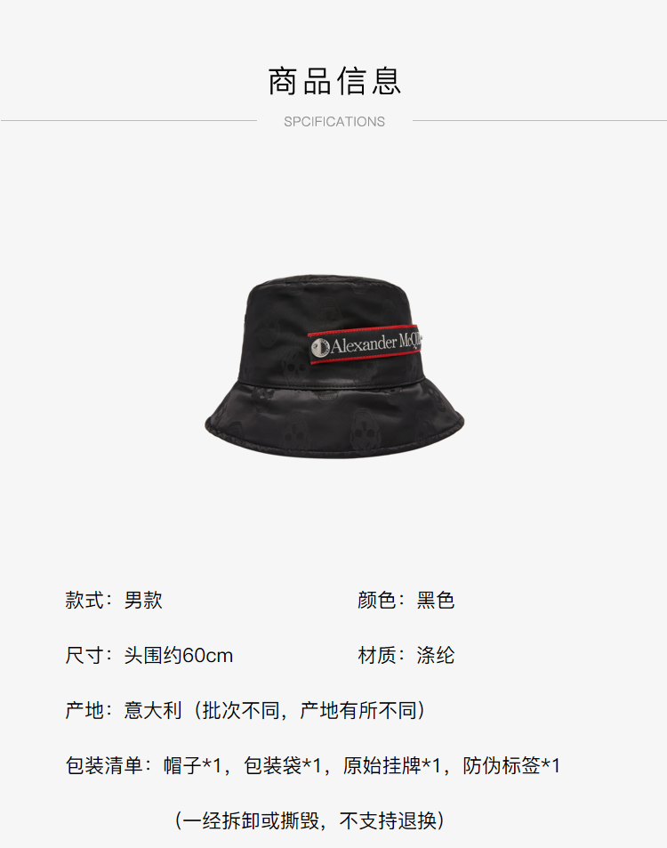 ALEXANDER MCQUEEN 亚历山大·麦昆 男士骷髅头标识渔夫帽 6833664419Q
