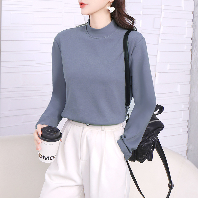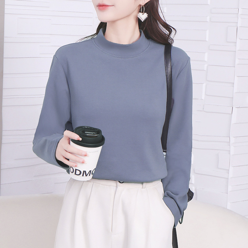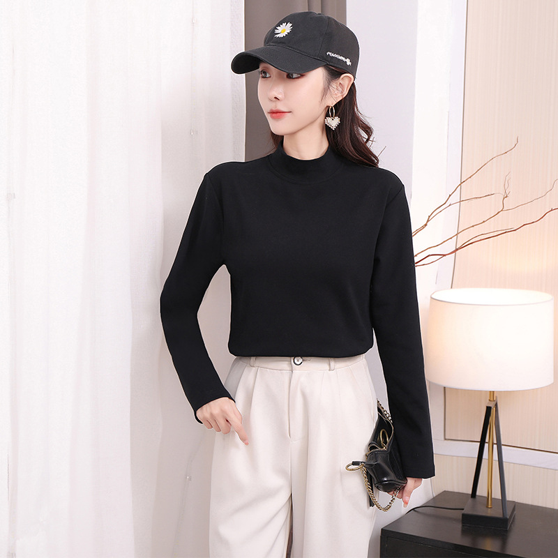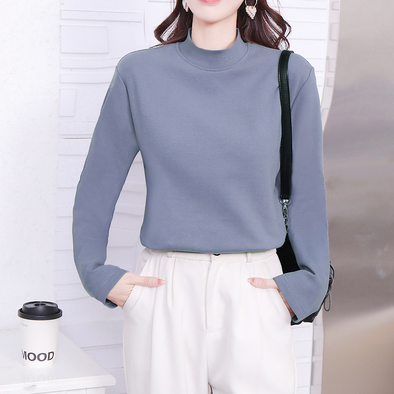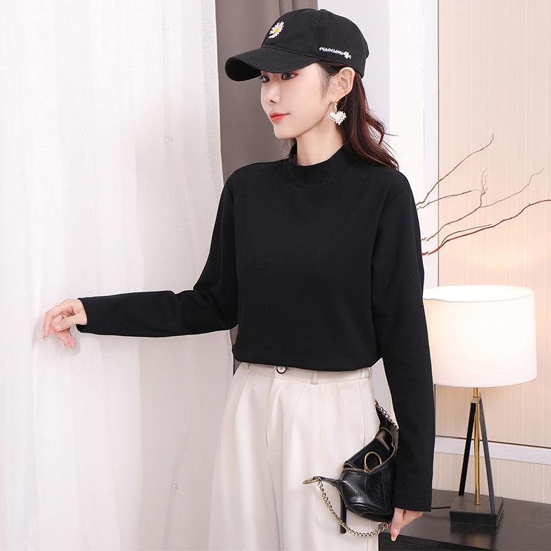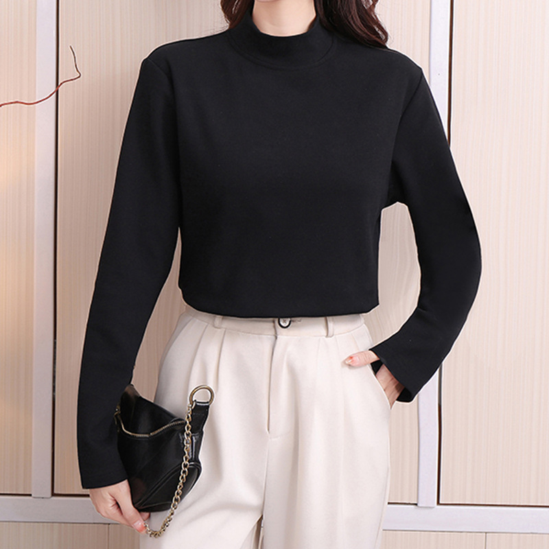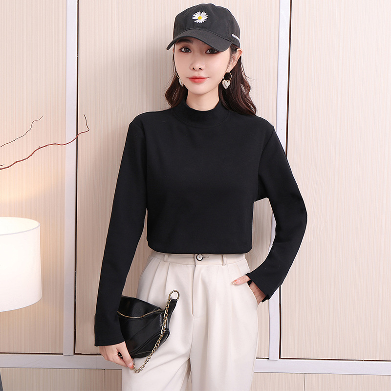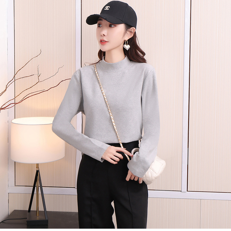 【热卖爆款,不容错过!】韩国东大门半高领打底衫女加绒加厚秋冬高品质修身长袖T恤女上衣lmzb