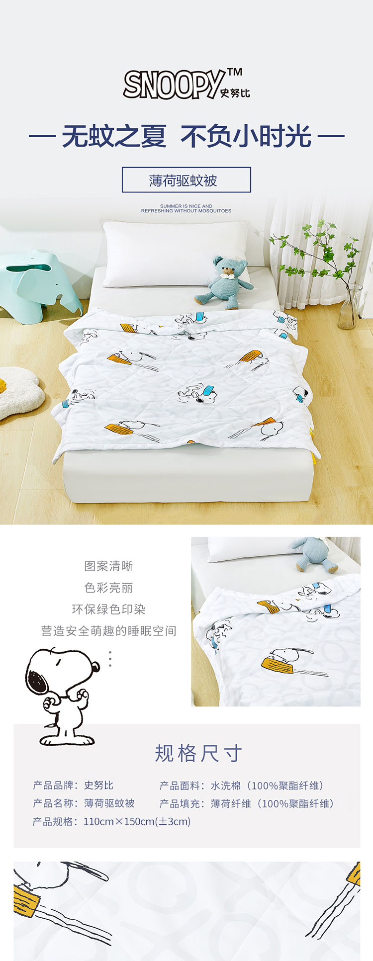 史努比·薄荷驱蚊被SNX02-1115B 舒适水洗棉 亲肤不闷热