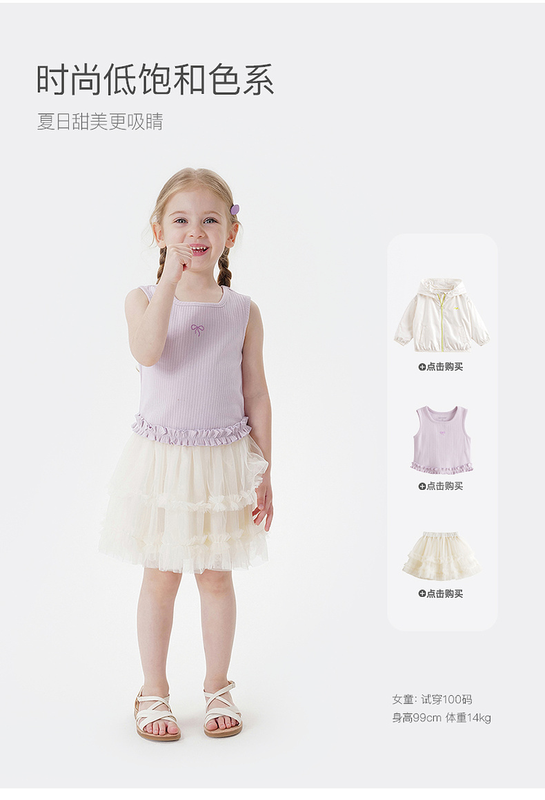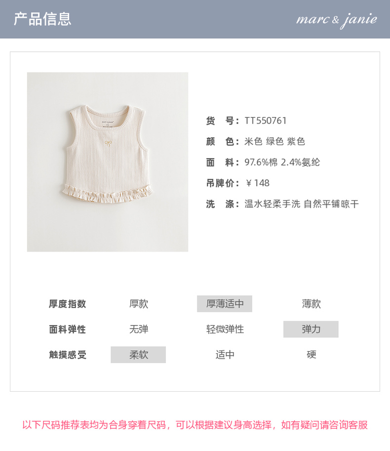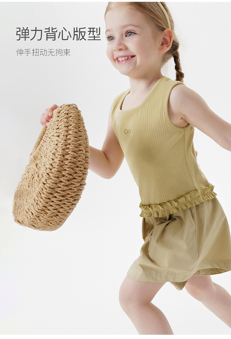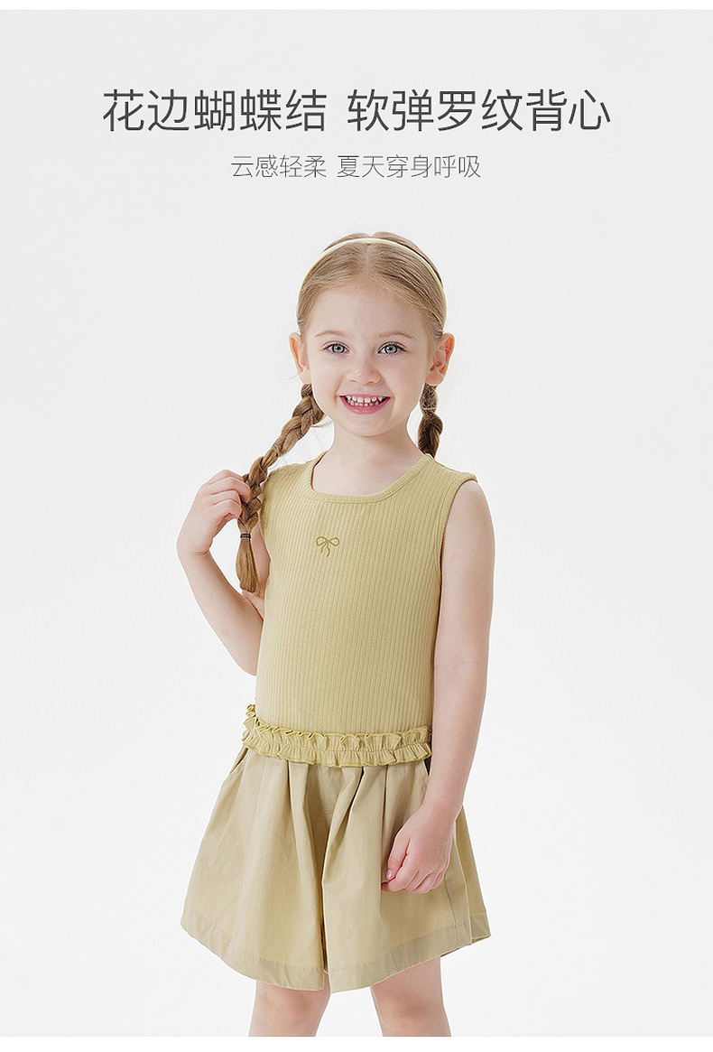 马克珍妮女童花边蝴蝶结软弹小背心宝宝上衣2025年夏装新款550761