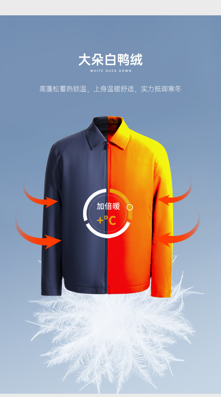 【翻领羽绒夹克】防水防污羽绒外套防钻绒行政夹克上衣