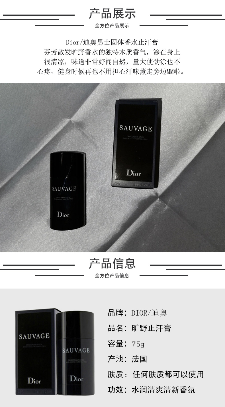 【中欧班列精选】法国Dior/迪奥Sauvage旷野男士运动固体香水止汗香膏75g BF
