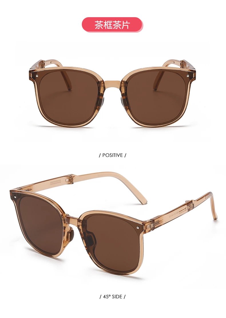 铰链衔接的镜腿,能轻松自如地向内(外)调节一定角度,让镜架更好地贴合面部,优质的 PC 镜框耐高温、耐腐蚀,表面还有光泽感,经久不褪色,简直凹造型的利器啊~ 不管是男生还是女生,戴上它,你就是出行路上最靓的仔!