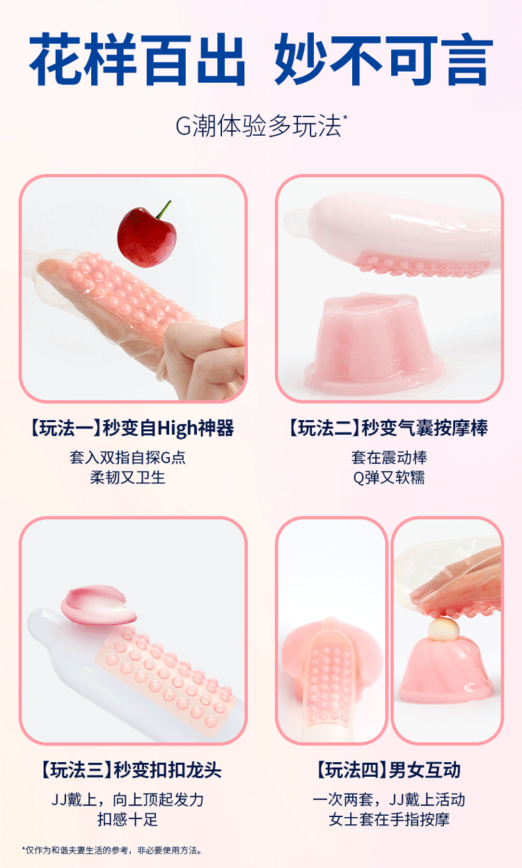 【花样情趣组合】尚牌8合1情趣混搭24只+强震狼牙水晶套1个+G点气囊颗粒R3波动2只+喵舌尖叫颗粒10只+草莓味口趣套10只+加粗颗粒手指套2只!