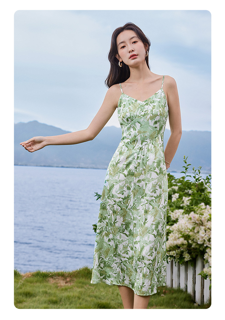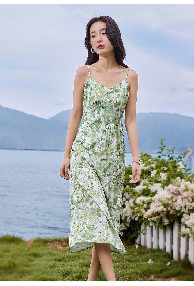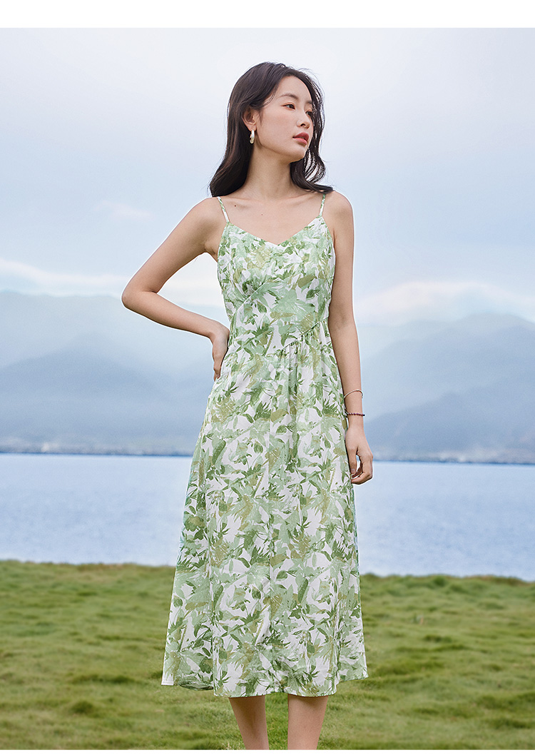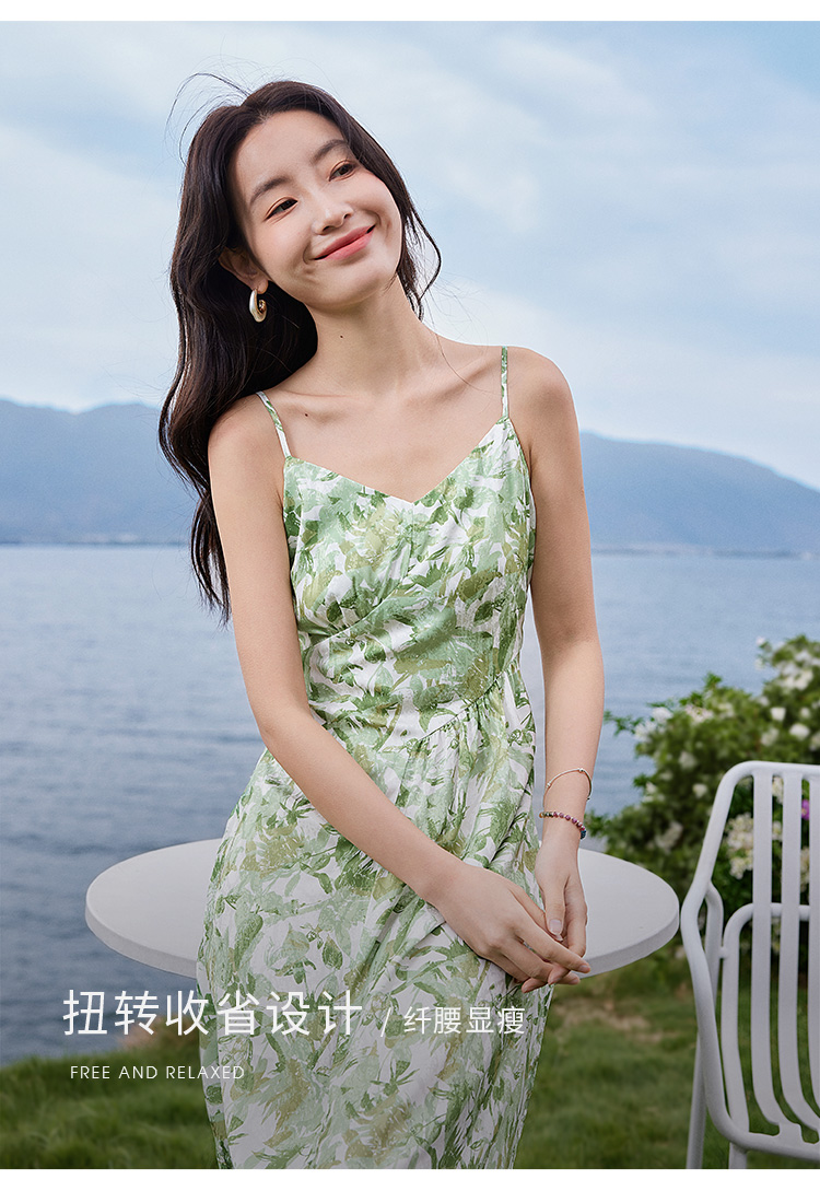 【专属特价】熙世界薄荷曼波度假风吊带连衣裙2025年新款垂坠感印花夏天裙子