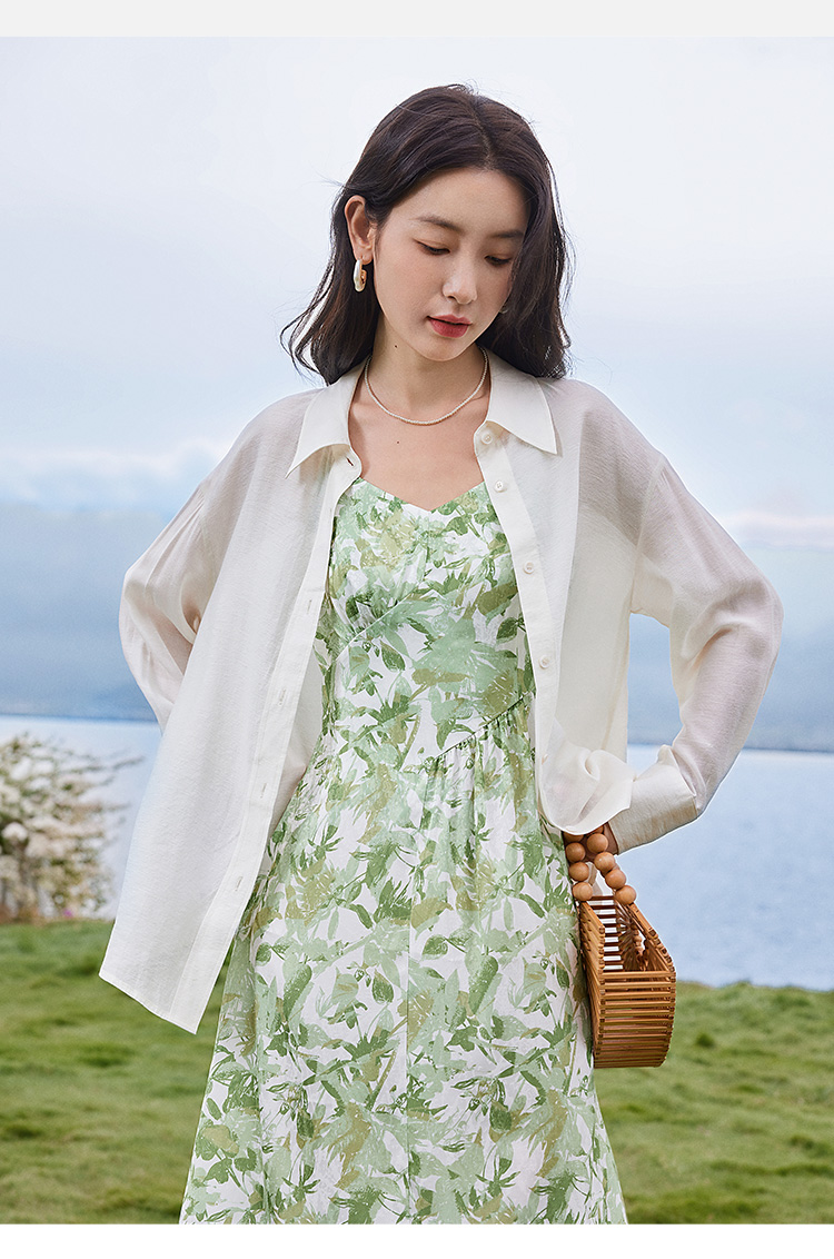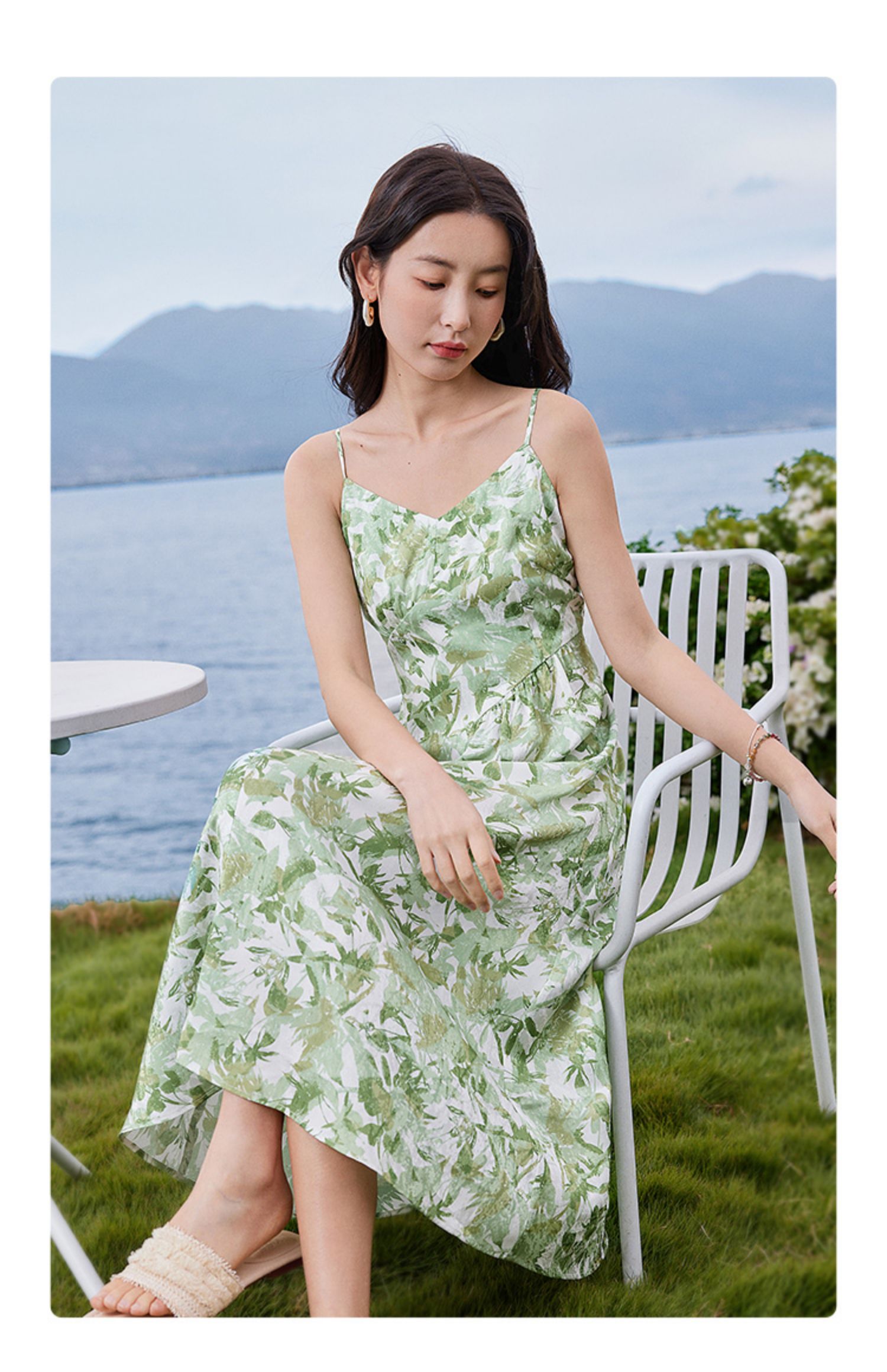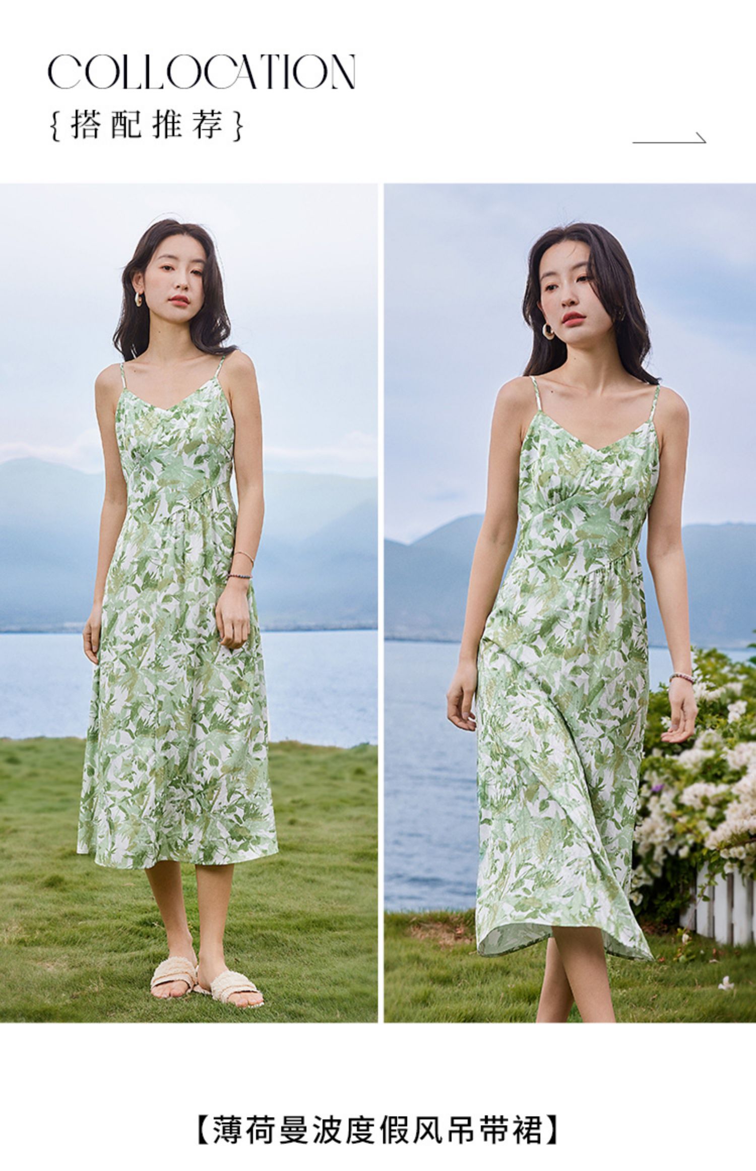 【专属特价】熙世界薄荷曼波度假风吊带连衣裙2025年新款垂坠感印花夏天裙子