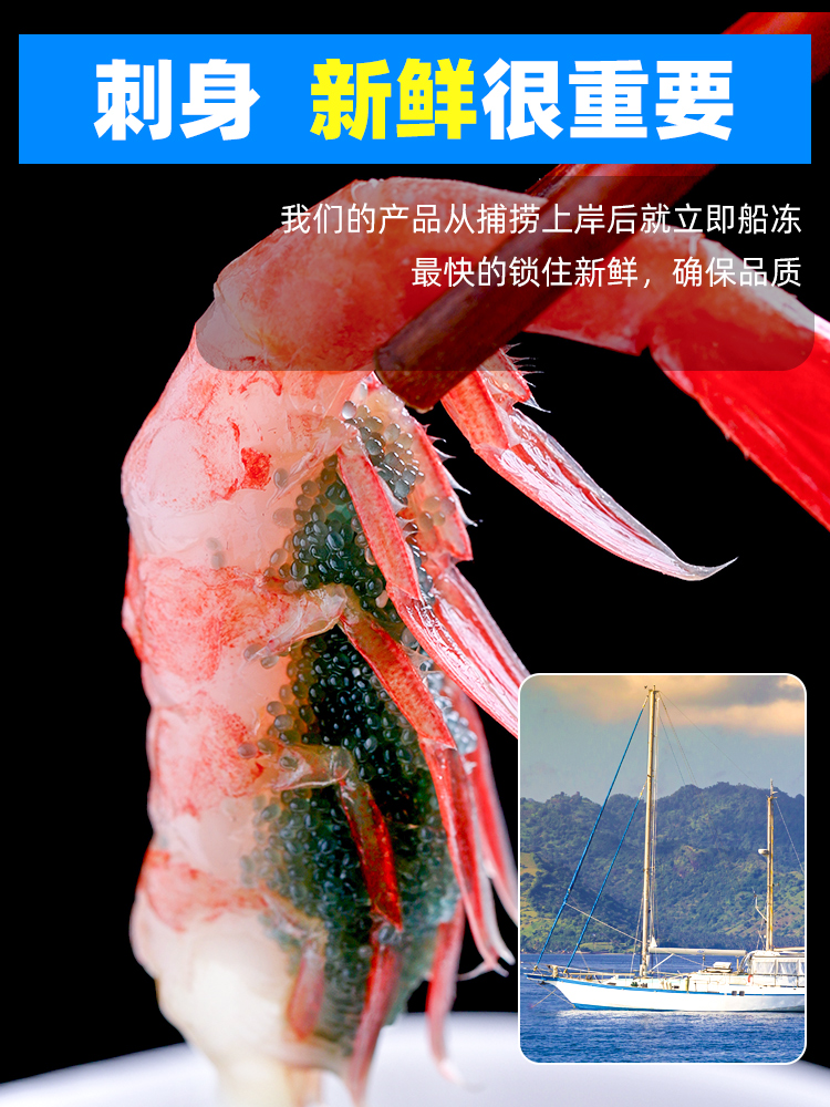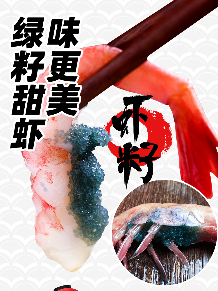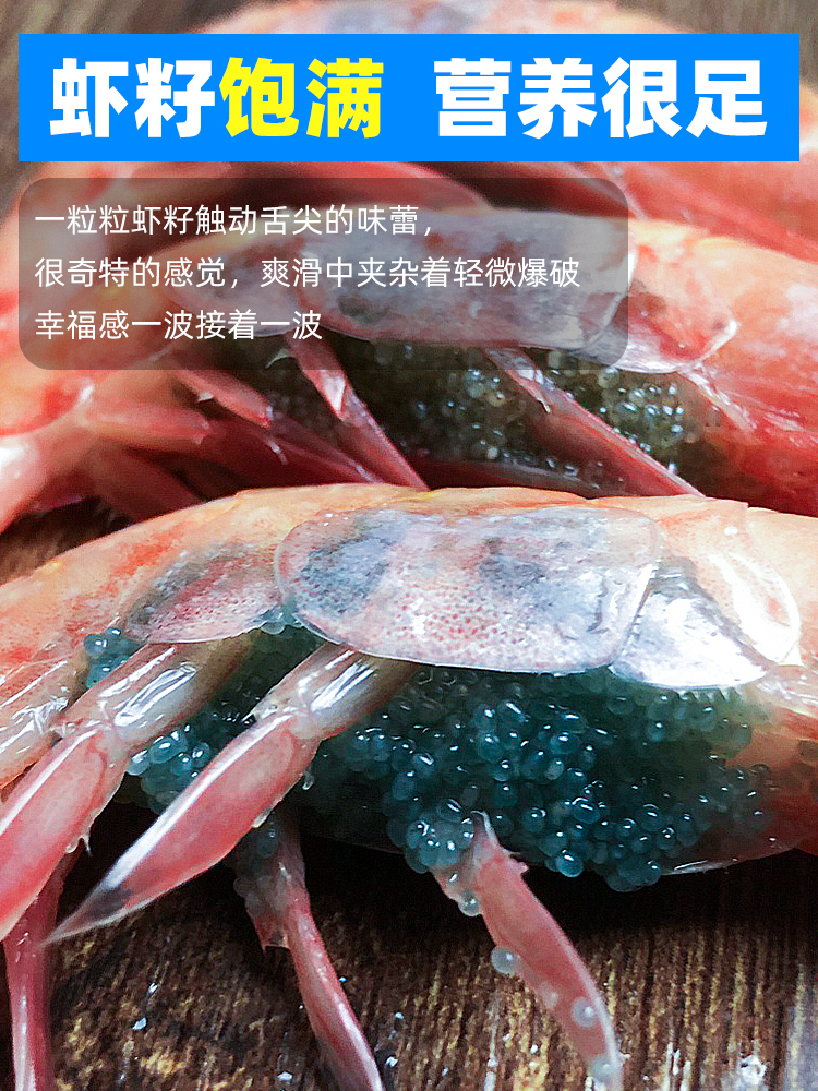 北极甜虾刺身生吃即食海鲜腹籽食材北极虾